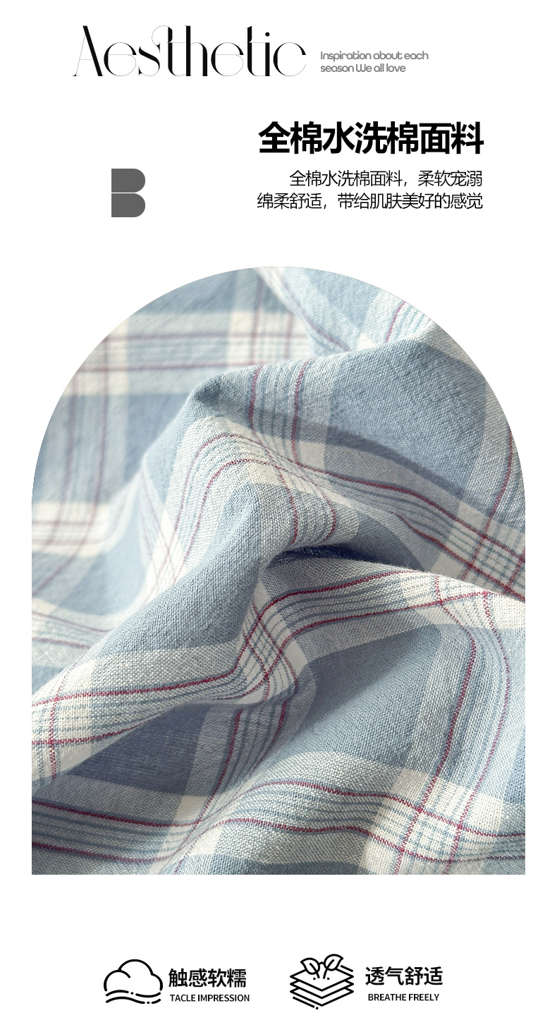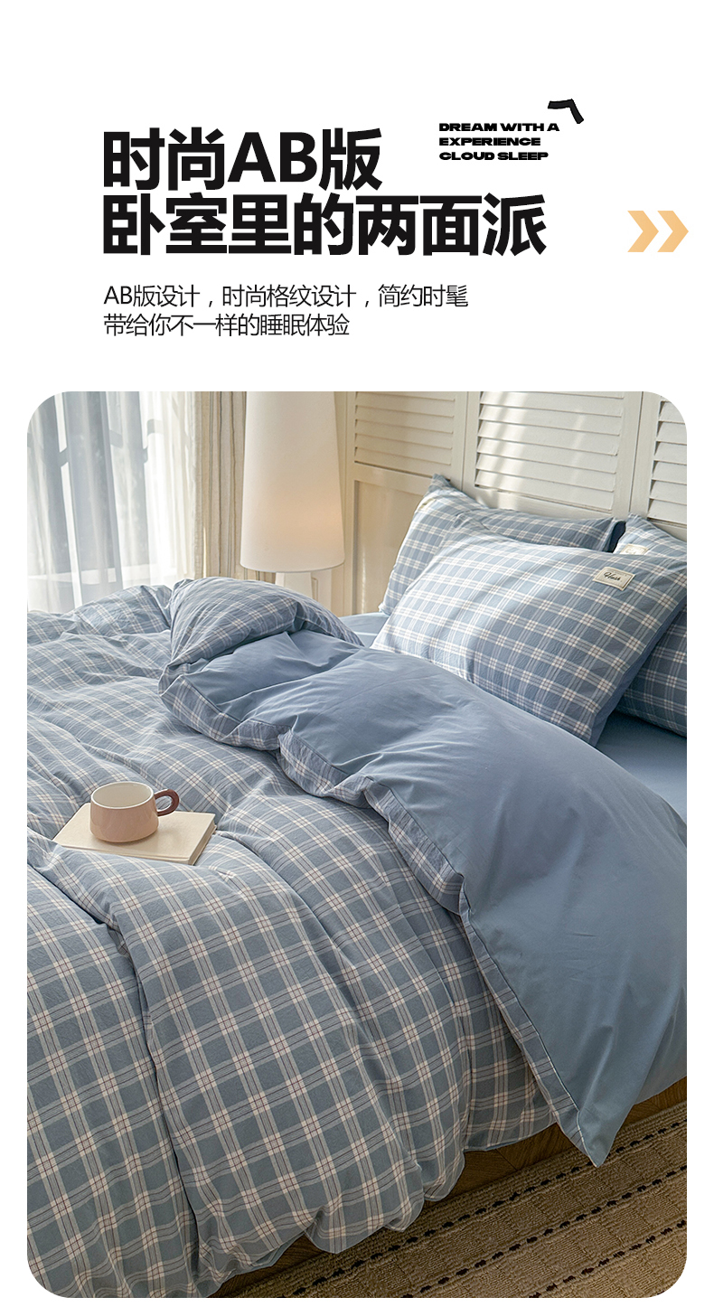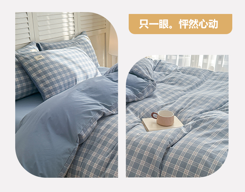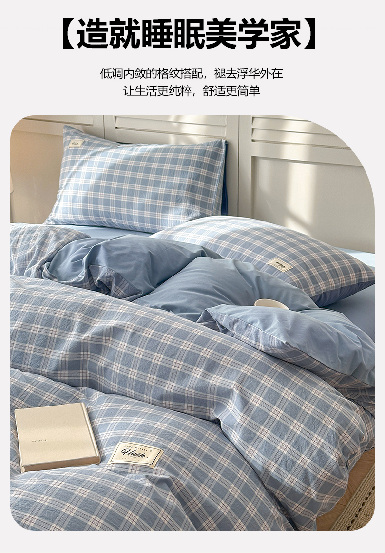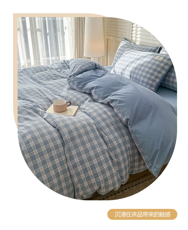 当前位置: 91家纺网 > 商品网购 > 床品套件 > 四件套 > 全棉普通四件套 > 木子家纺 2026春夏新款色织全棉纯棉四件套 麦田-蓝