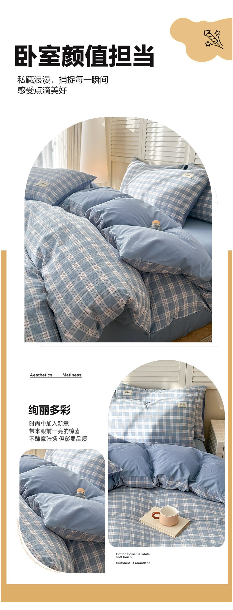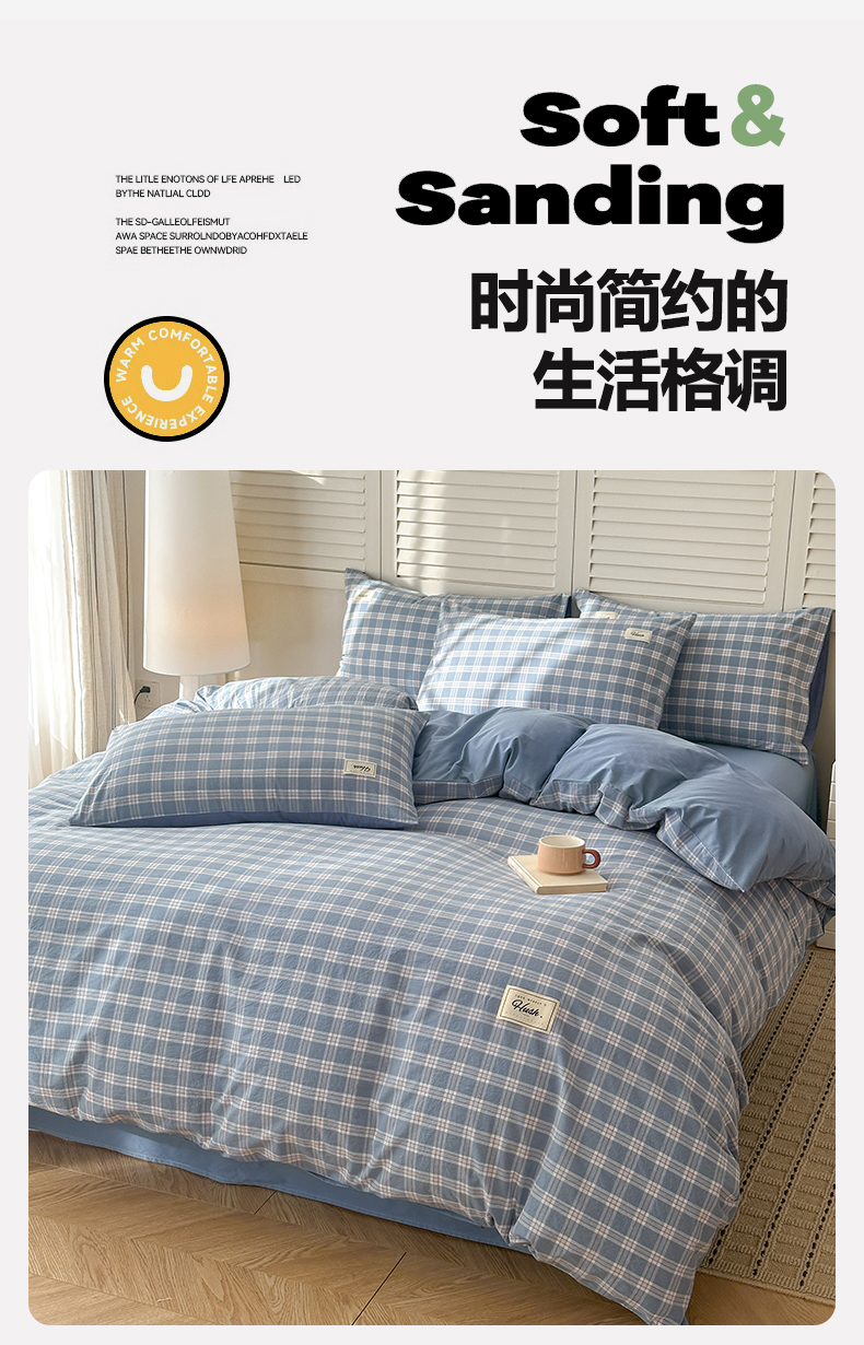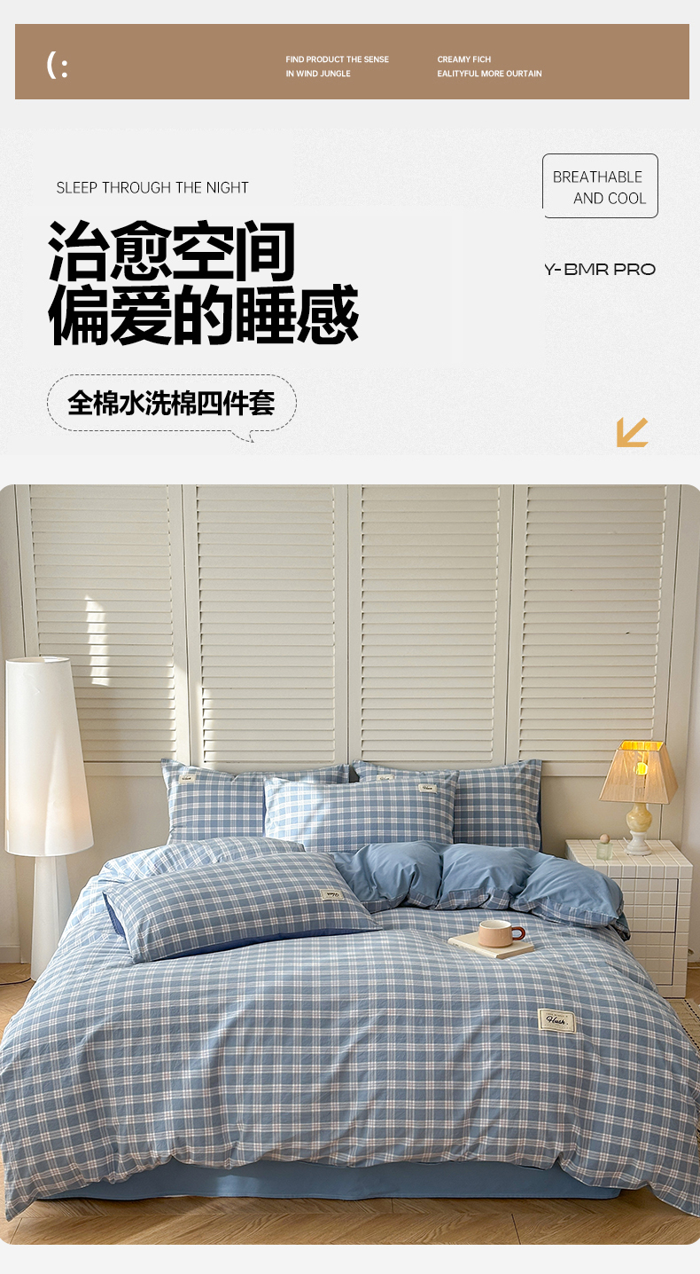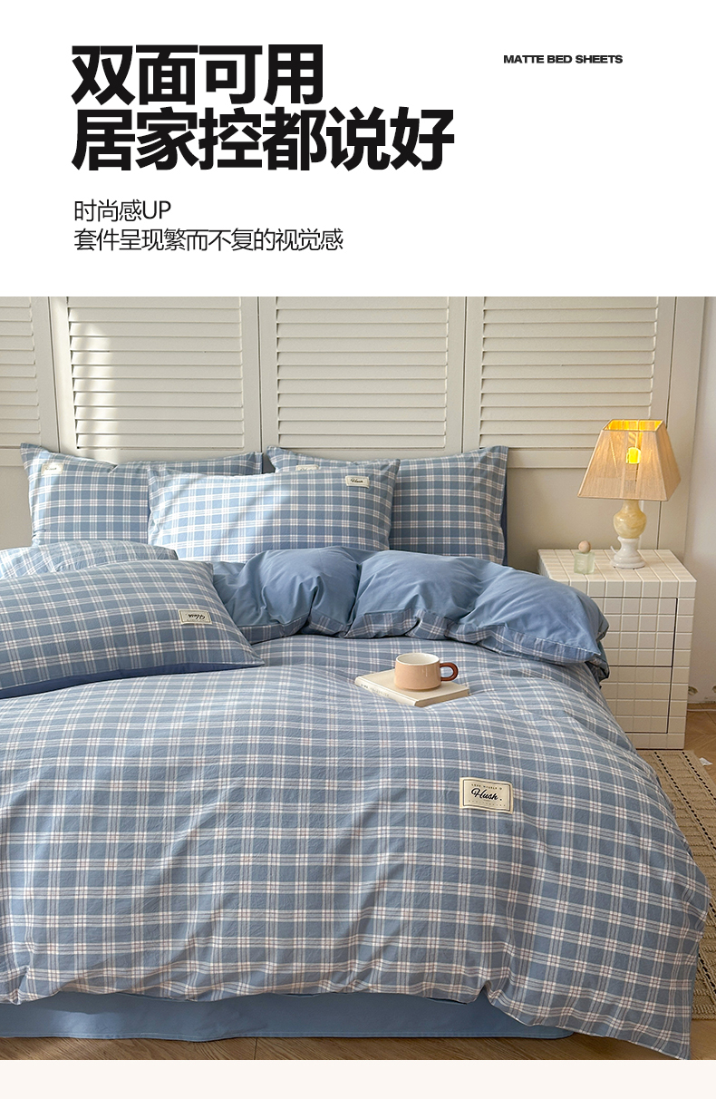 当前位置: 91家纺网 > 商品网购 > 床品套件 > 四件套 > 全棉普通四件套 > 木子家纺 2026春夏新款色织全棉纯棉四件套 麦田-蓝