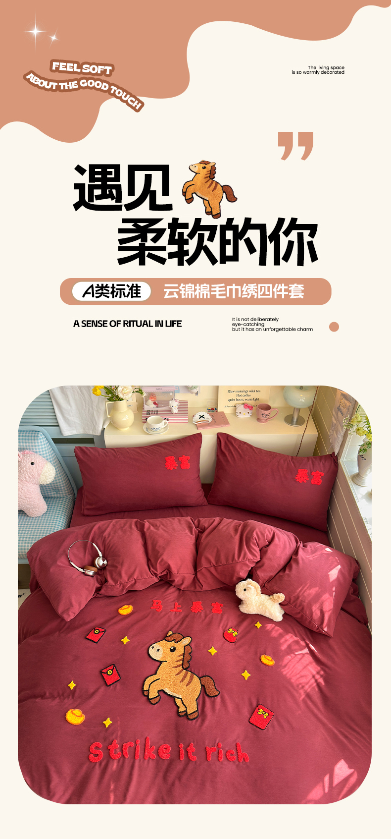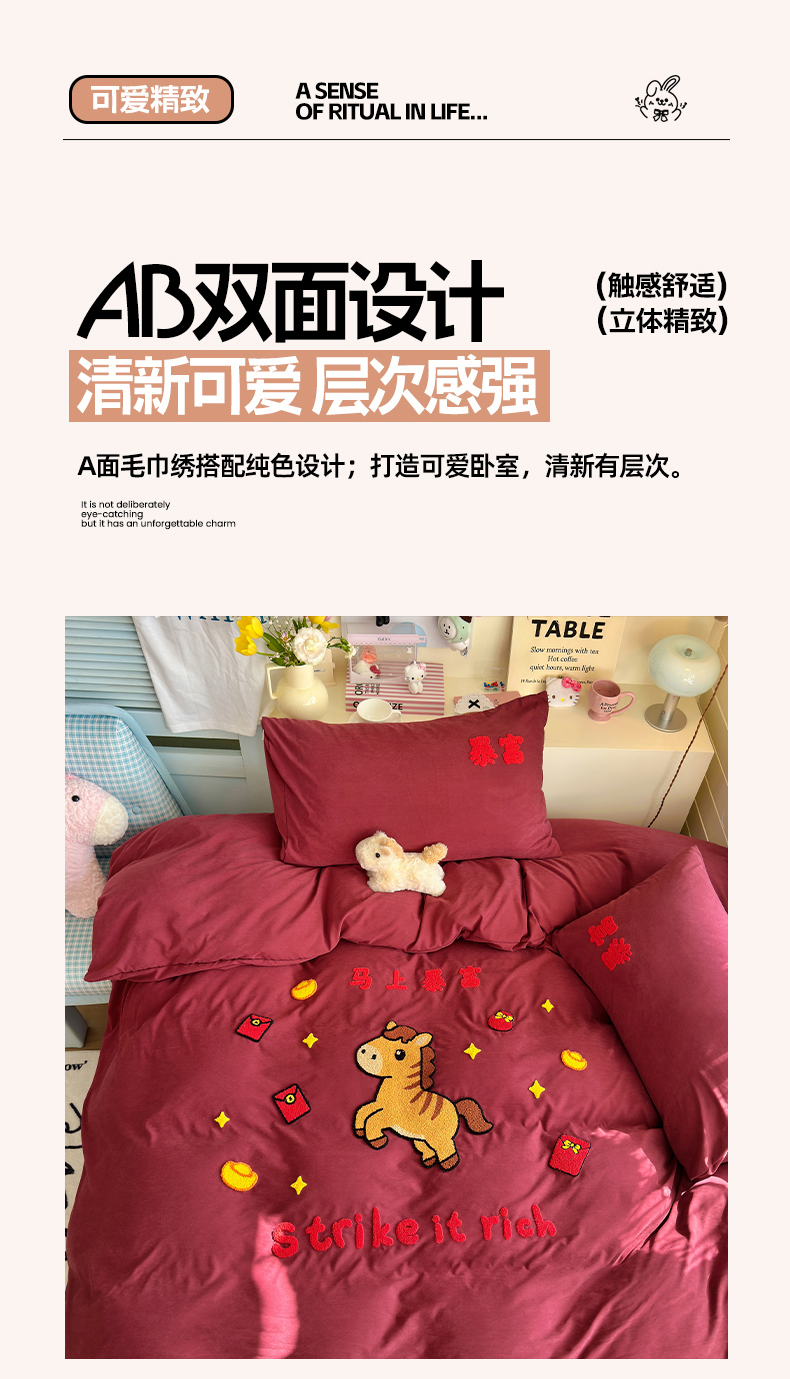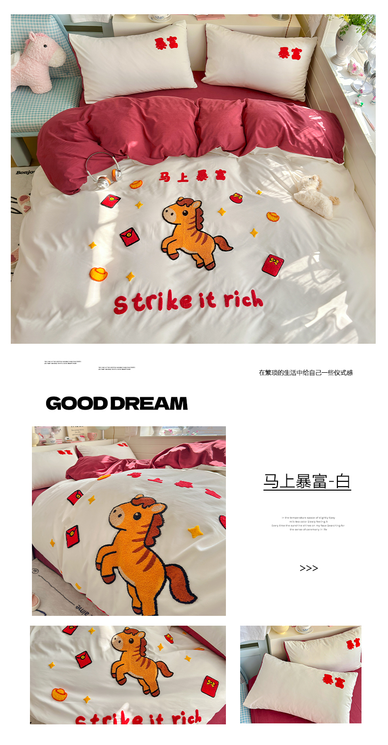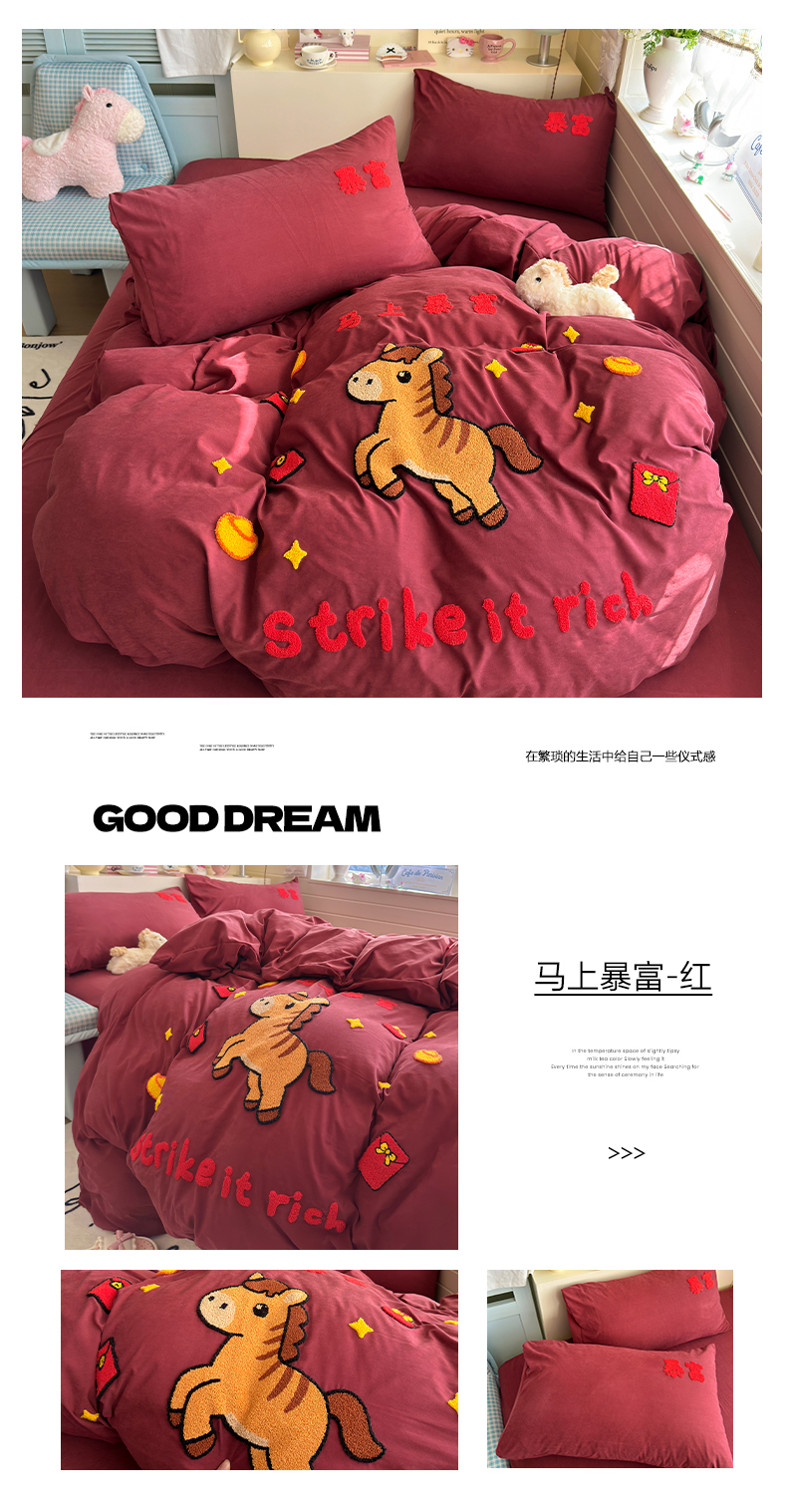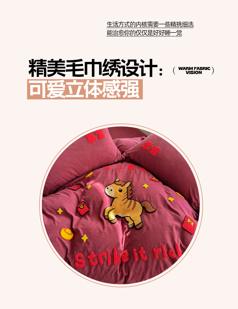 当前位置: 91家纺网 > 商品网购 > 床品套件 > 四件套 > 其它四件套 > 优卡迪家纺馆 2026新款A类云锦棉毛巾绣四件套下载文件包含买家秀 马上暴富-红