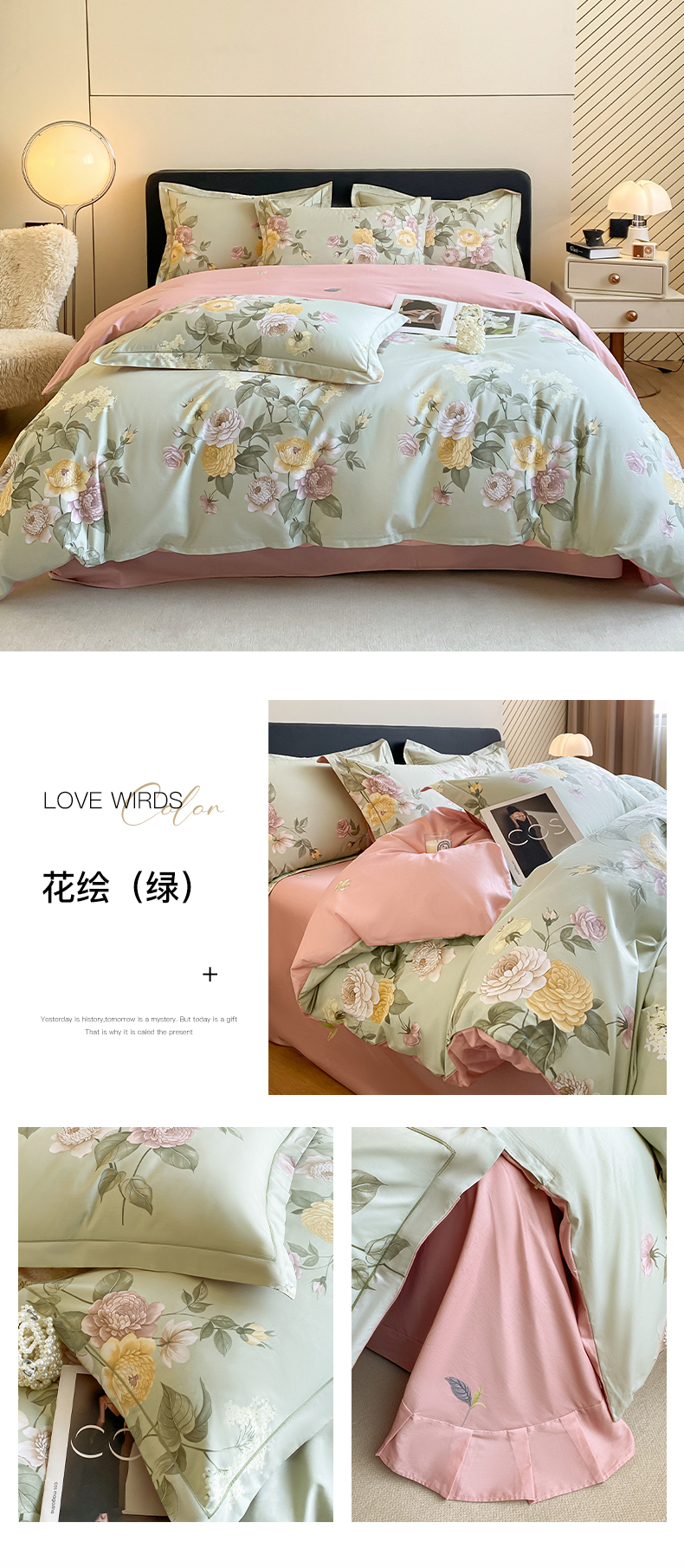 当前位置: 91家纺网 > 商品网购 > 床品套件 > 四件套 > 全棉普通四件套 > 格里芬家纺 2026新款全棉纯棉40S精梳棉13376印花四件套 雨蝶-绿