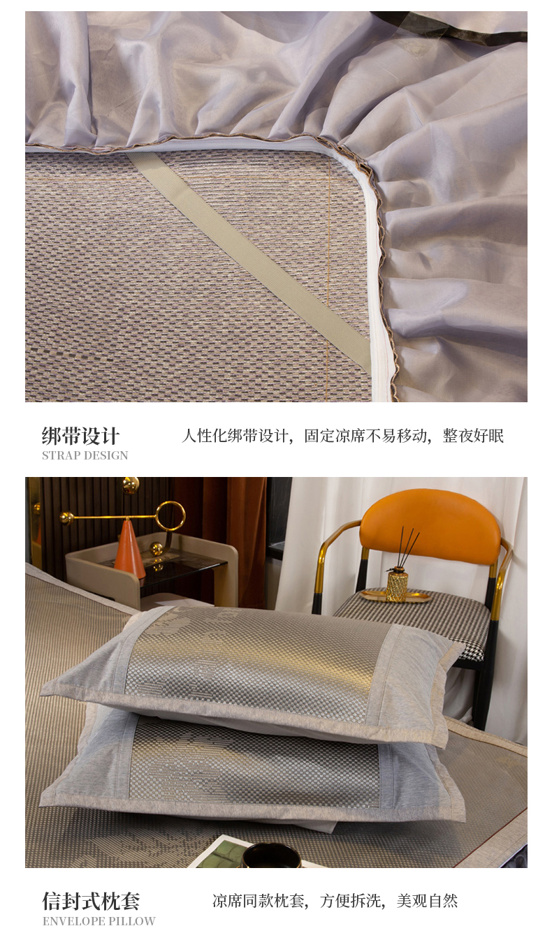 (总)能好家纺 2025新款三明治冰藤席凉席小米花系列,灰色,金色,绿色