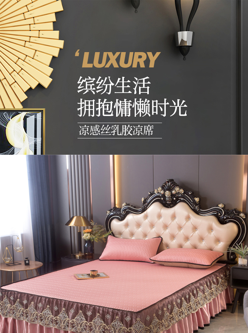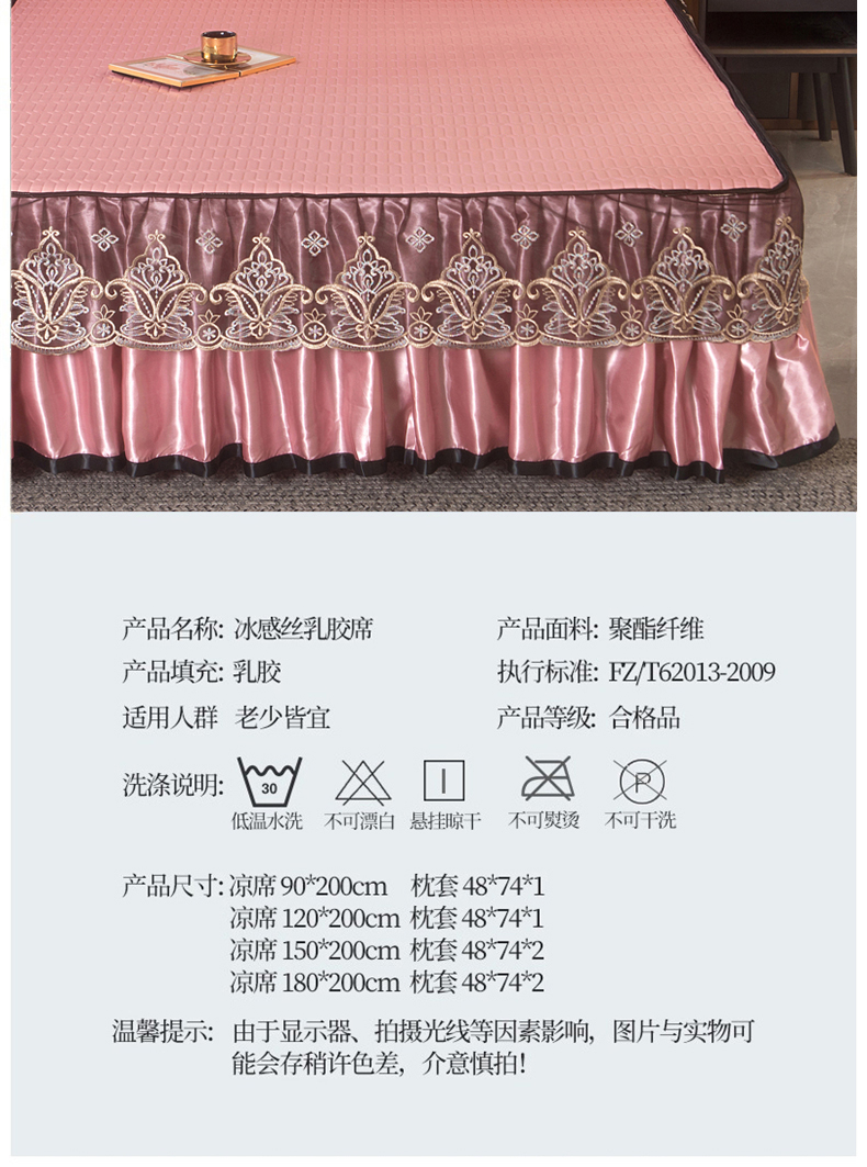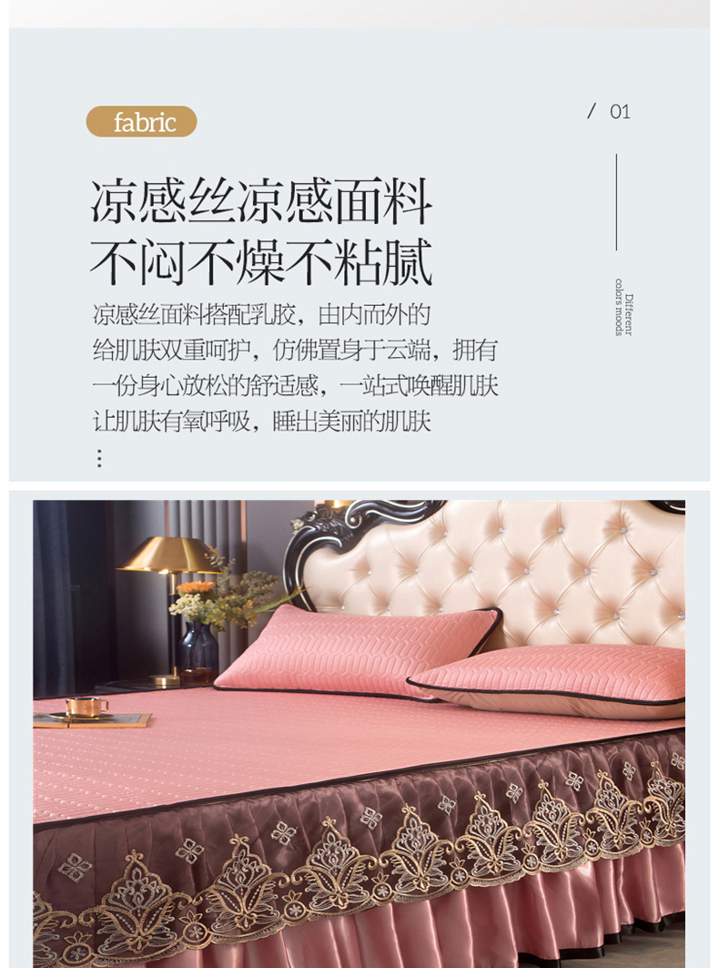 (总)能好家纺 2026春夏新款纯色+印花凉感丝乳胶凉席床裙款三件套,薄荷绿,豆沙,灰色,酒红,孔雀蓝,墨绿,雪青,棕色,古韵,小熊,雅韵,幽梦
