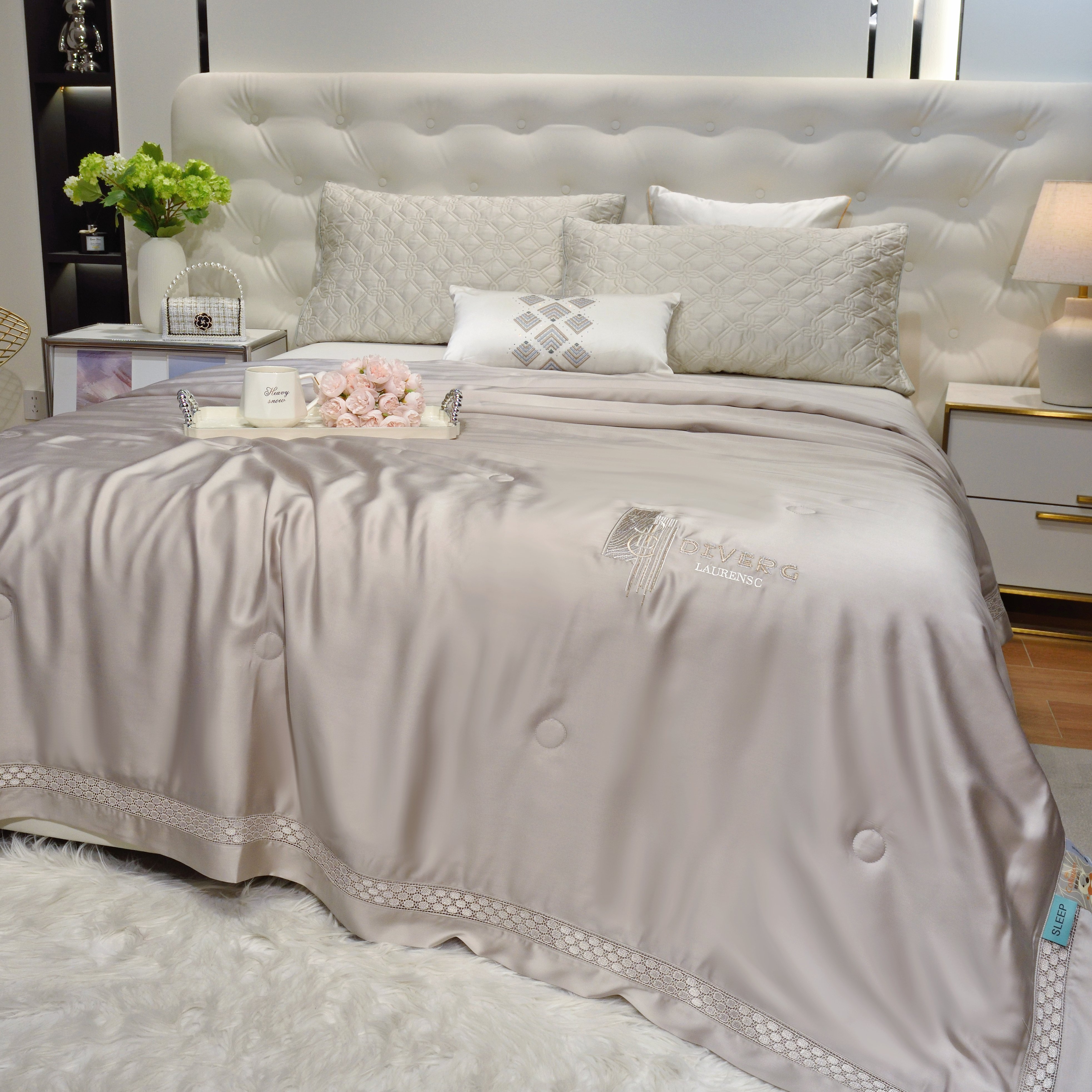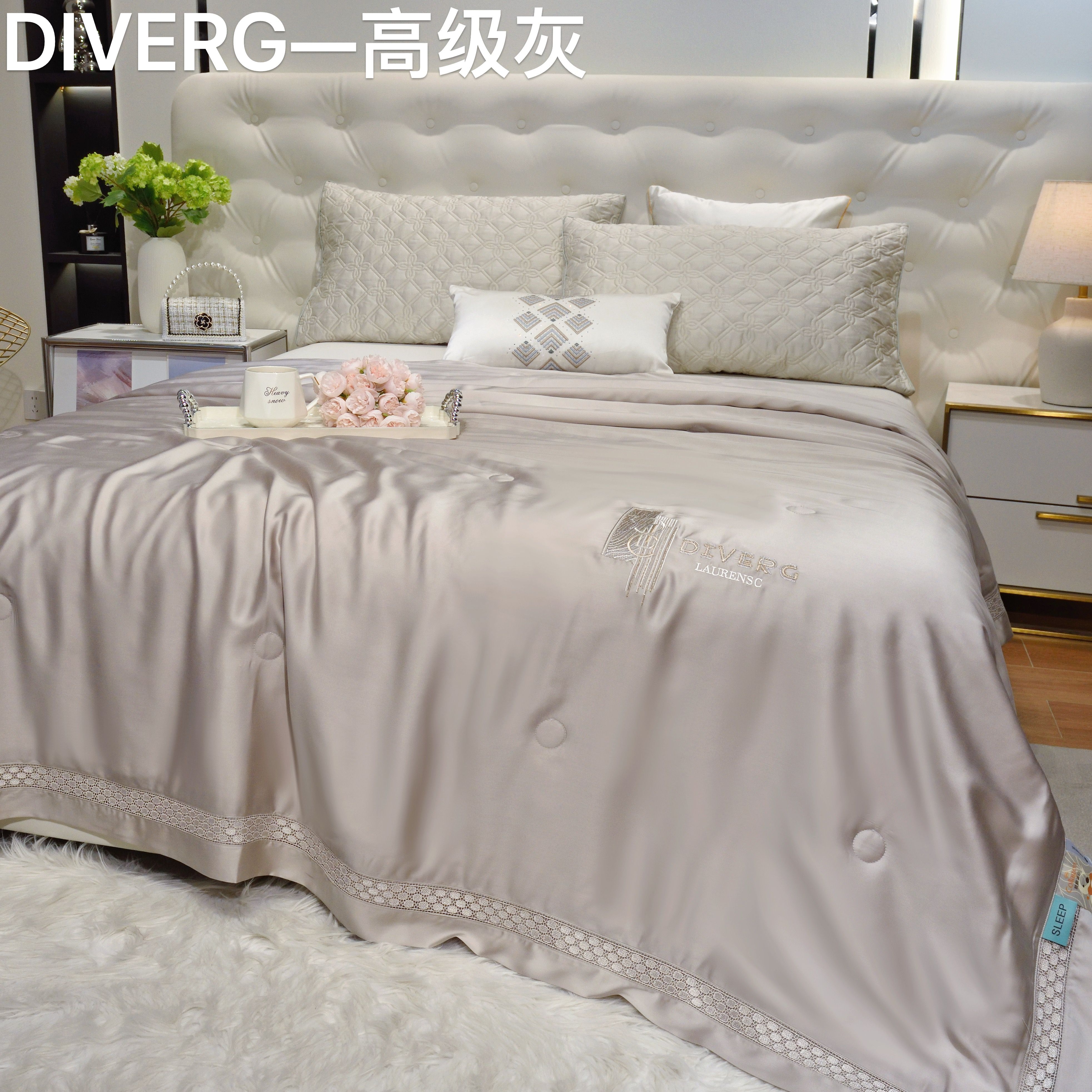 商品名称:博尔菲 2026新款半镂空蕾丝宽边绗缝夏被夏凉被空调被 高级灰