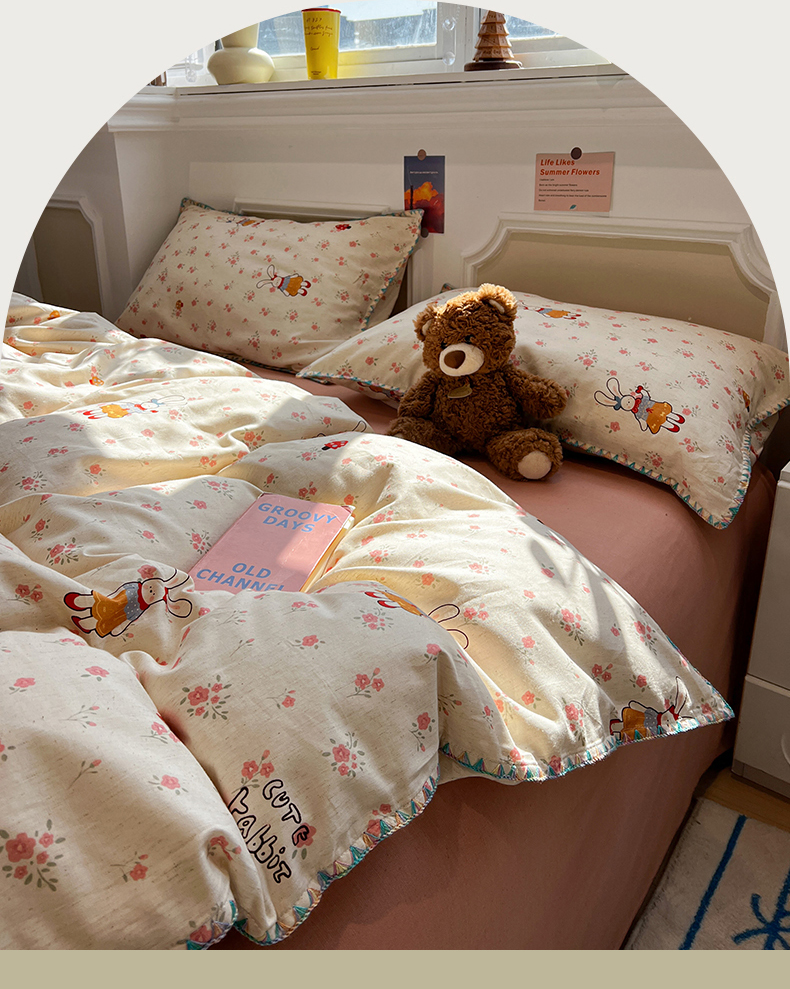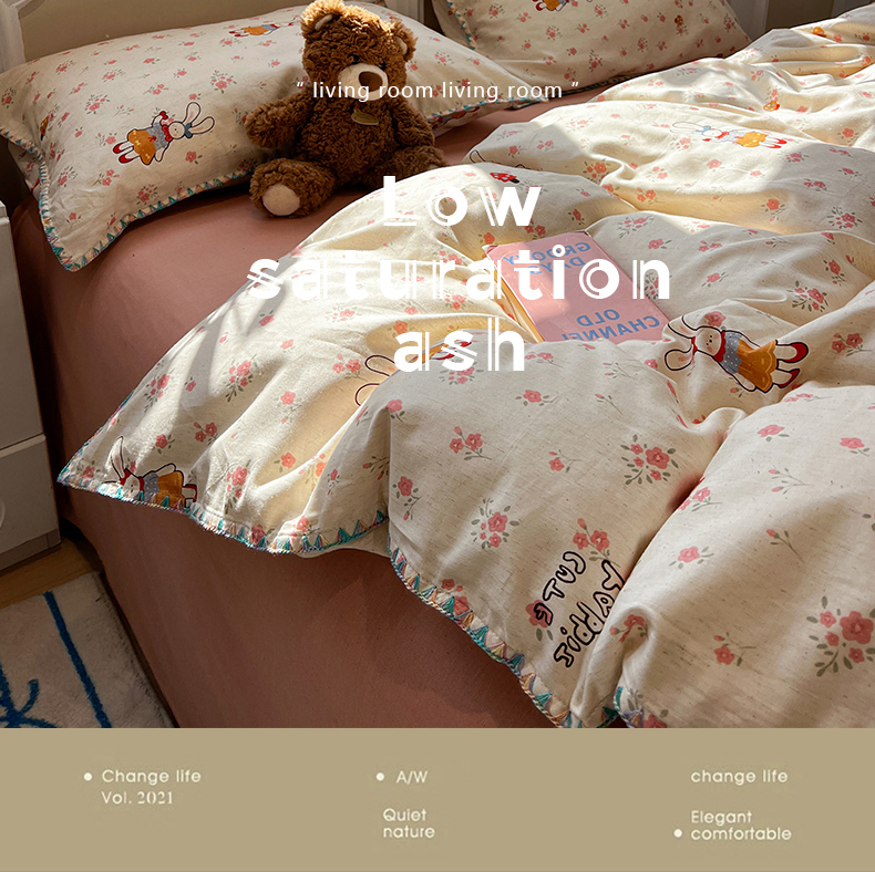(总)忆生活家纺 2026新款复古田园风棉麻四件套,组合图仅供展示,奶茶兔,初夏-绿,花颜-粉,林夕-绿,绿野,绿茵-绿,墨染,趣味小象,素影,夕颜,悠然-红,知夏-咖