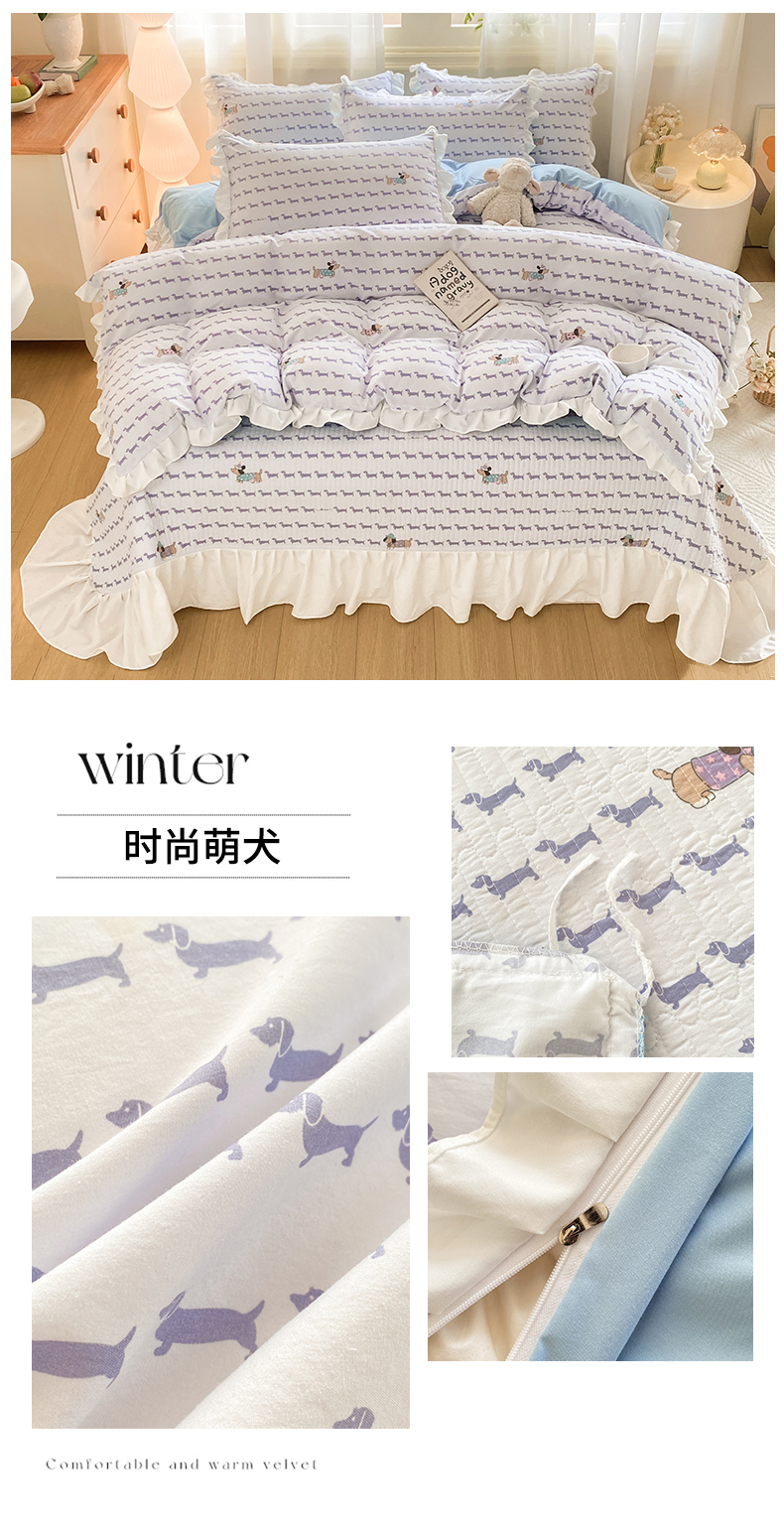 当前位置: 91家纺网 > 商品网购 > 床品套件 > 四件套 > 水洗棉四件套 > 优贝家纺 2026春夏新款韩系小清新水洗棉古法棉夹棉床盖四件套-风格二 时尚萌犬