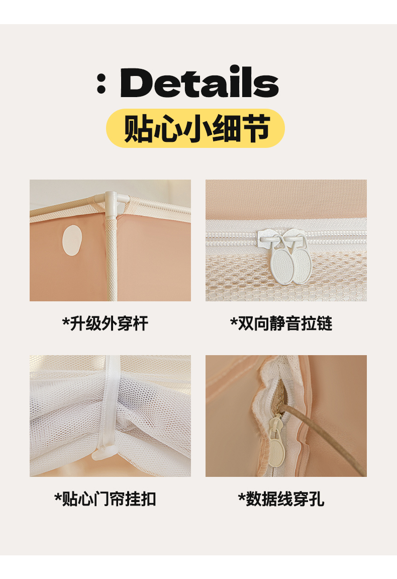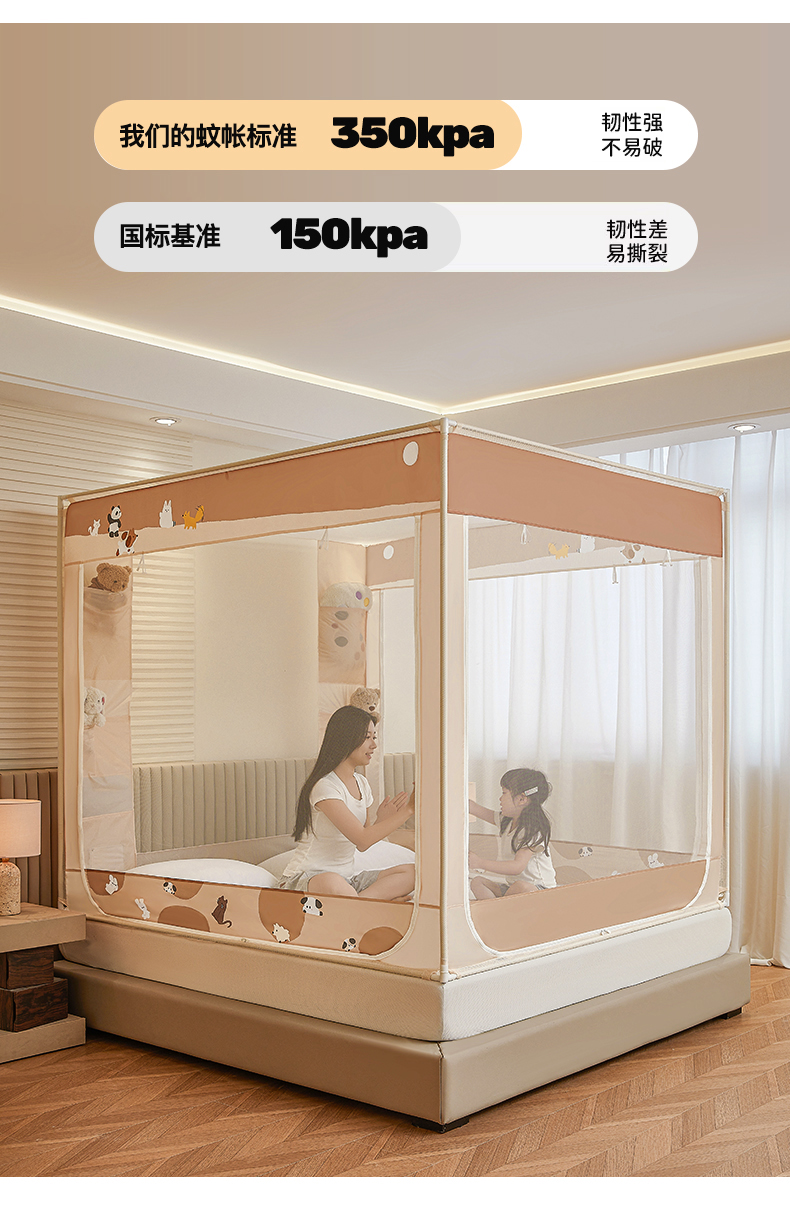 (总)坐床蚊帐口袋款防蚊卡通卧室三开门拉链通用免安装加粗支架