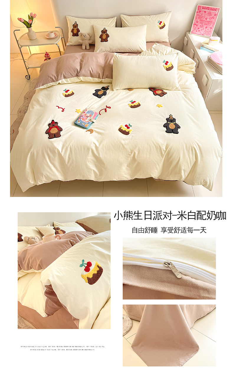 (总)琪格格 2025新款全棉纯棉大版卡通毛巾绣四件套,调皮芝士 米白配奶黄,调皮芝士奶黄,森林熊猫,心愿小树米白配奶绿, 熊猫爬树,小熊生日派对 米白配奶黄,小熊生日派对 米白配奶咖