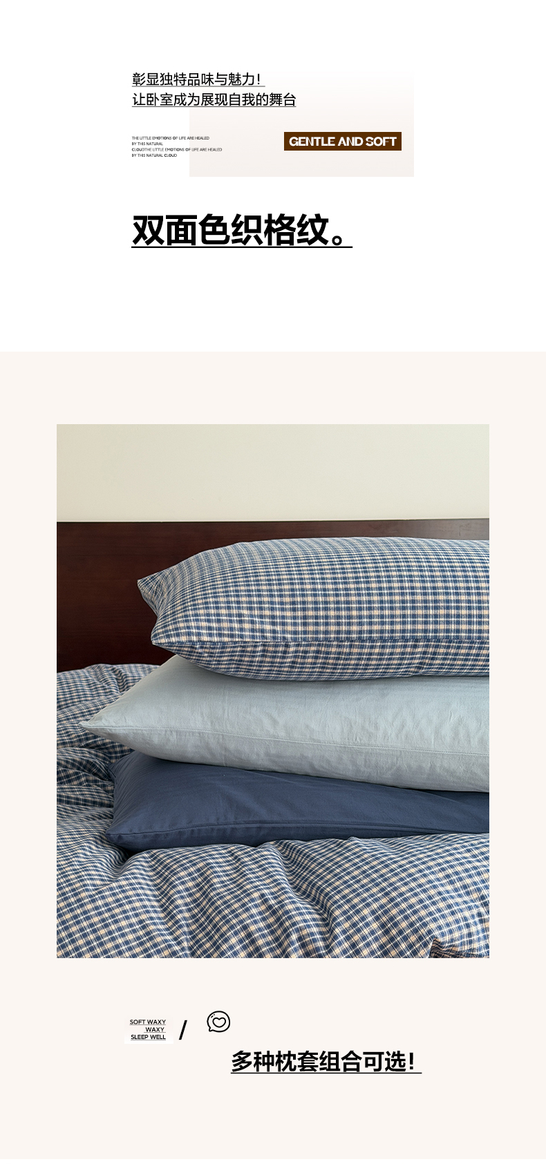 当前位置: 91家纺网 > 商品网购 > 床品套件 > 四件套 > 全棉普通四件套 > 玖弘家居 2026新款全棉色织水洗棉人字纹格子混搭四件套系列 怀旧蓝+海军蓝