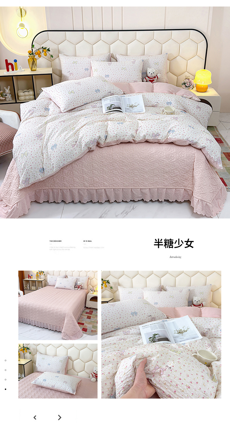 商品名称:凤杰家纺 2026新款云感双层纱床盖四件套 半糖少女