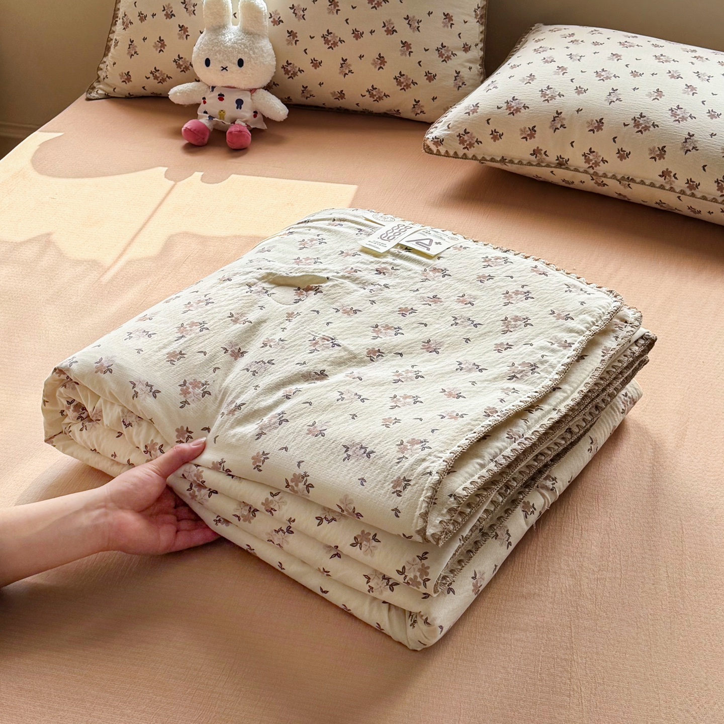 当前位置: 91家纺网 > 商品网购 > 床品套件 > 四件套 > 夏被四件套 > 2026新款春夏云感双层纱母婴级三角针夏被贝壳边夏凉被贝壳绣 浅桃织夏