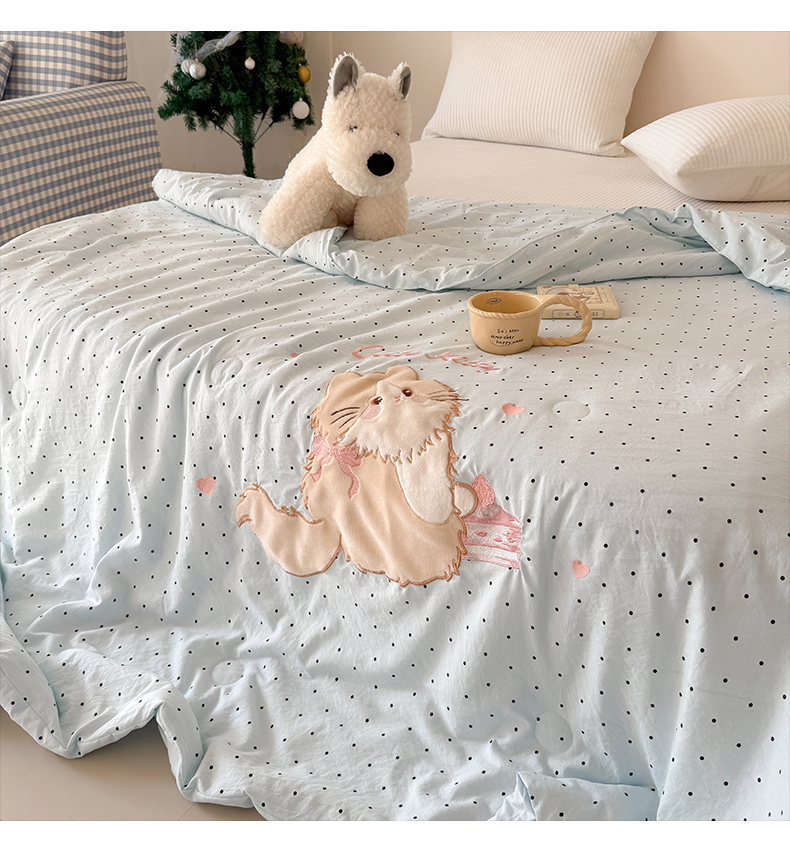 商品名称:吾欢心 2026春夏新款水洗棉可爱卡通贴布绣花单夏被空调被夏凉被 星星宝贝