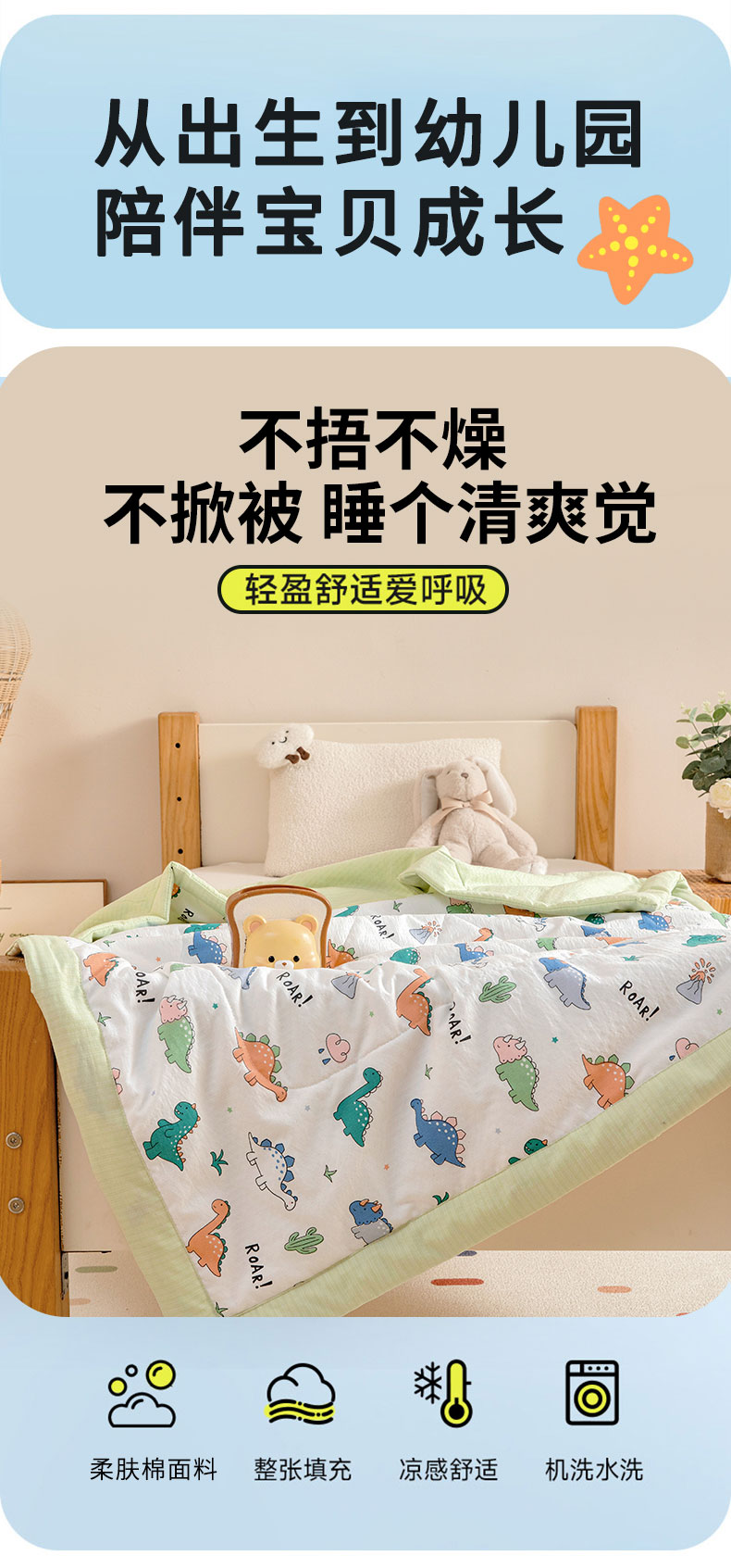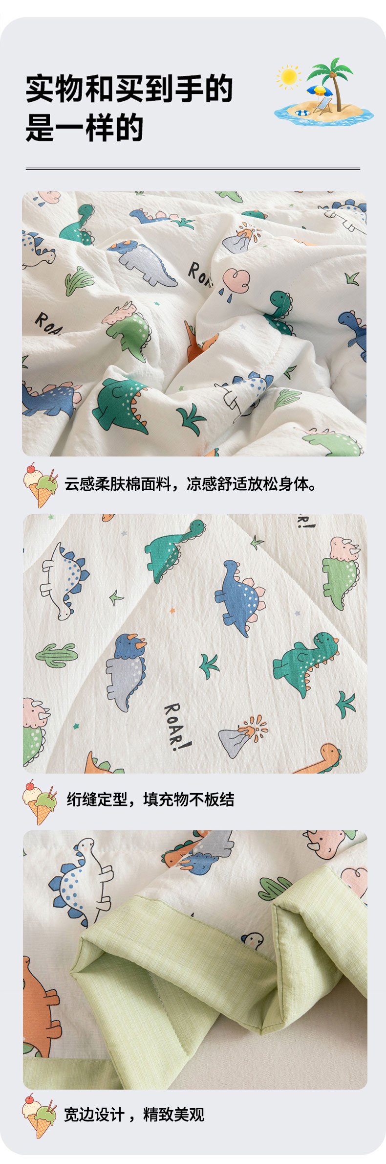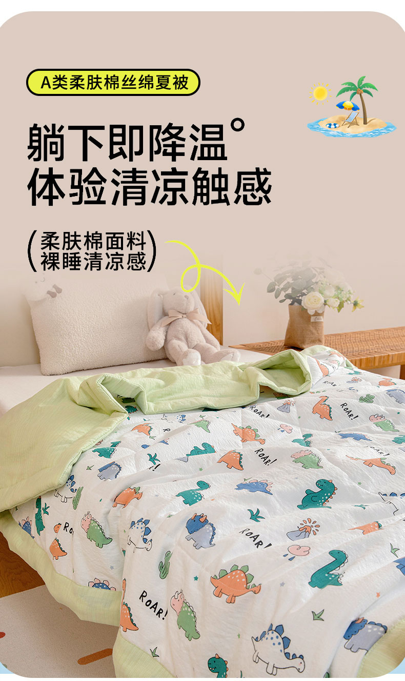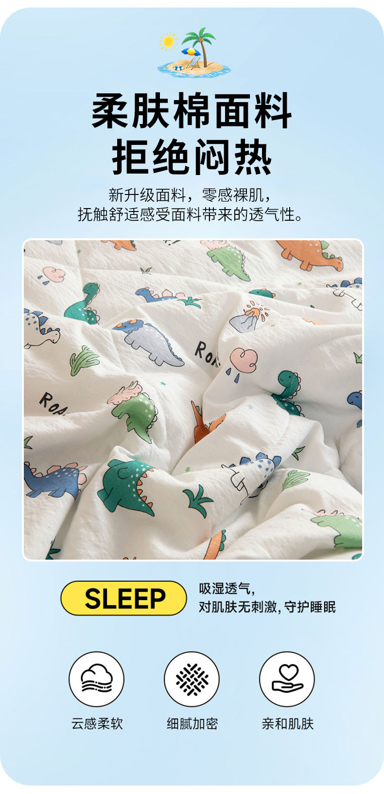 商品名称:御棉坊 2026新款A类柔肤棉儿童夏被宝宝空调被幼儿园午睡夏凉被丝绵薄被子 恐龙家园