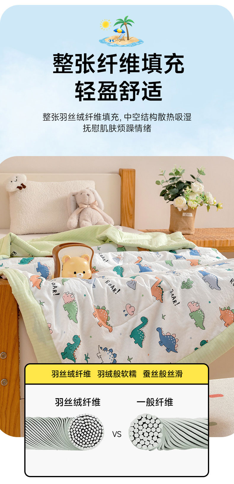 御棉坊 2026新款A类柔肤棉儿童夏被宝宝空调被幼儿园午睡夏凉被丝绵薄被子 恐龙家园