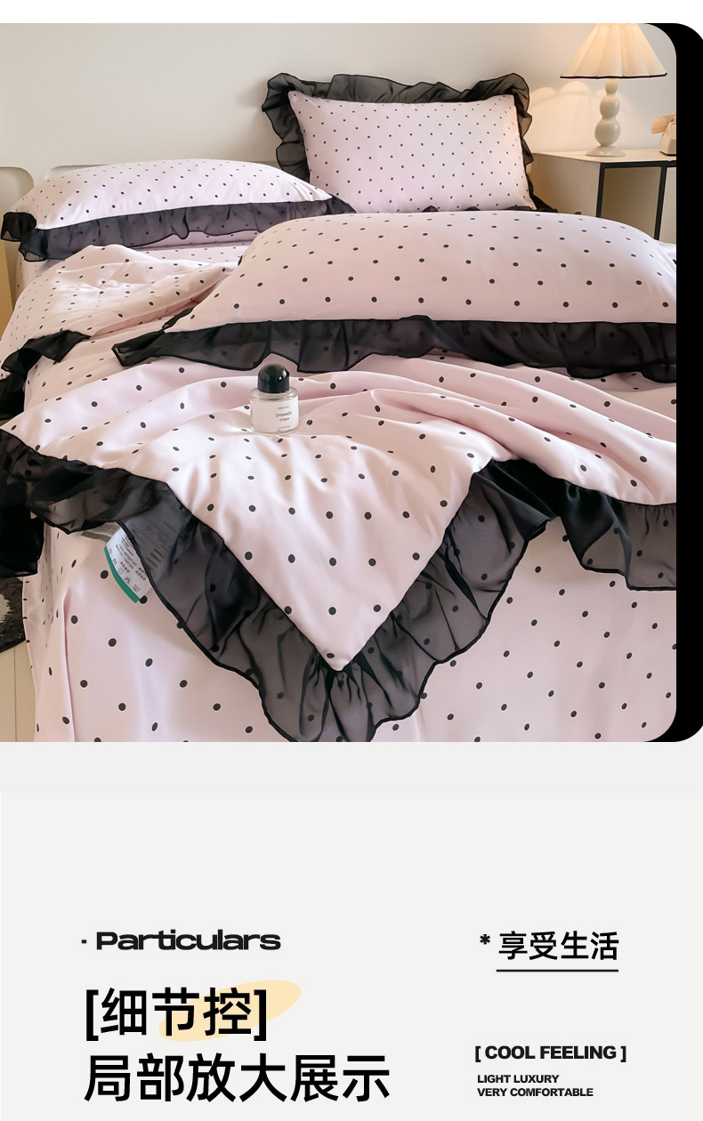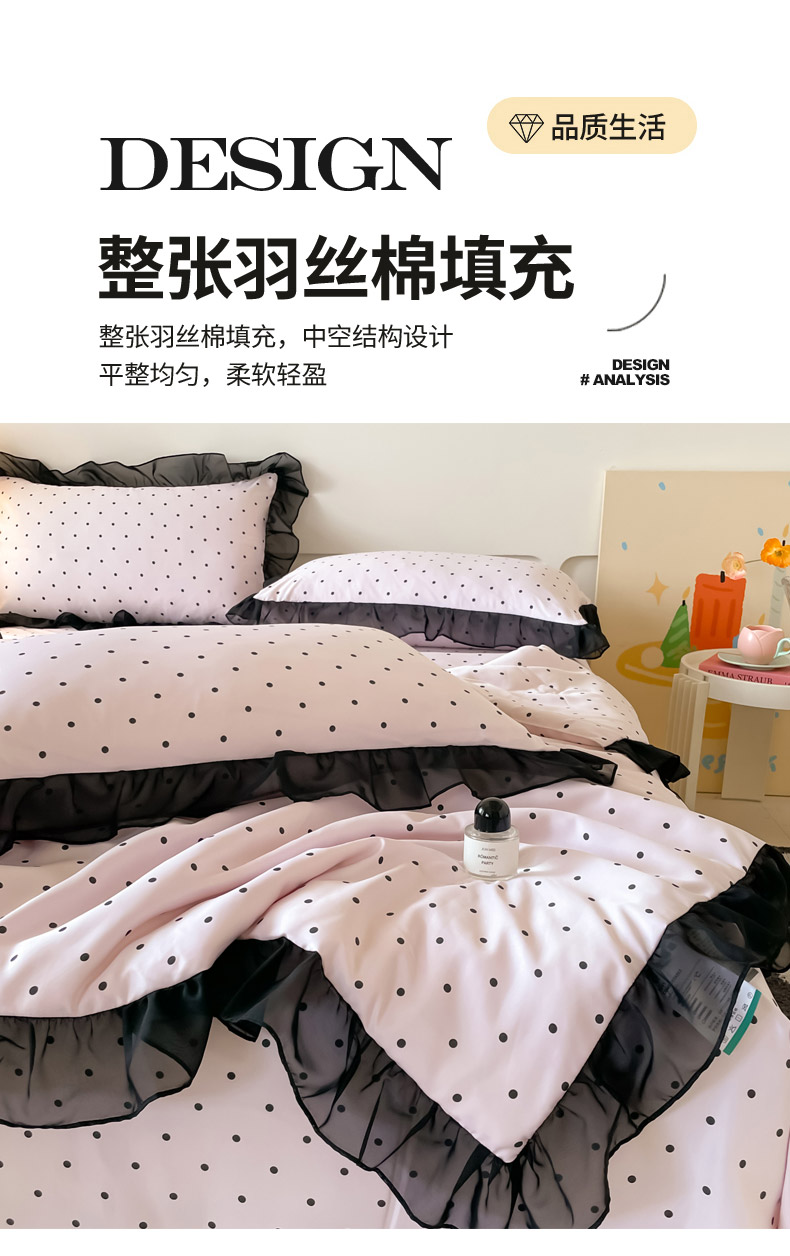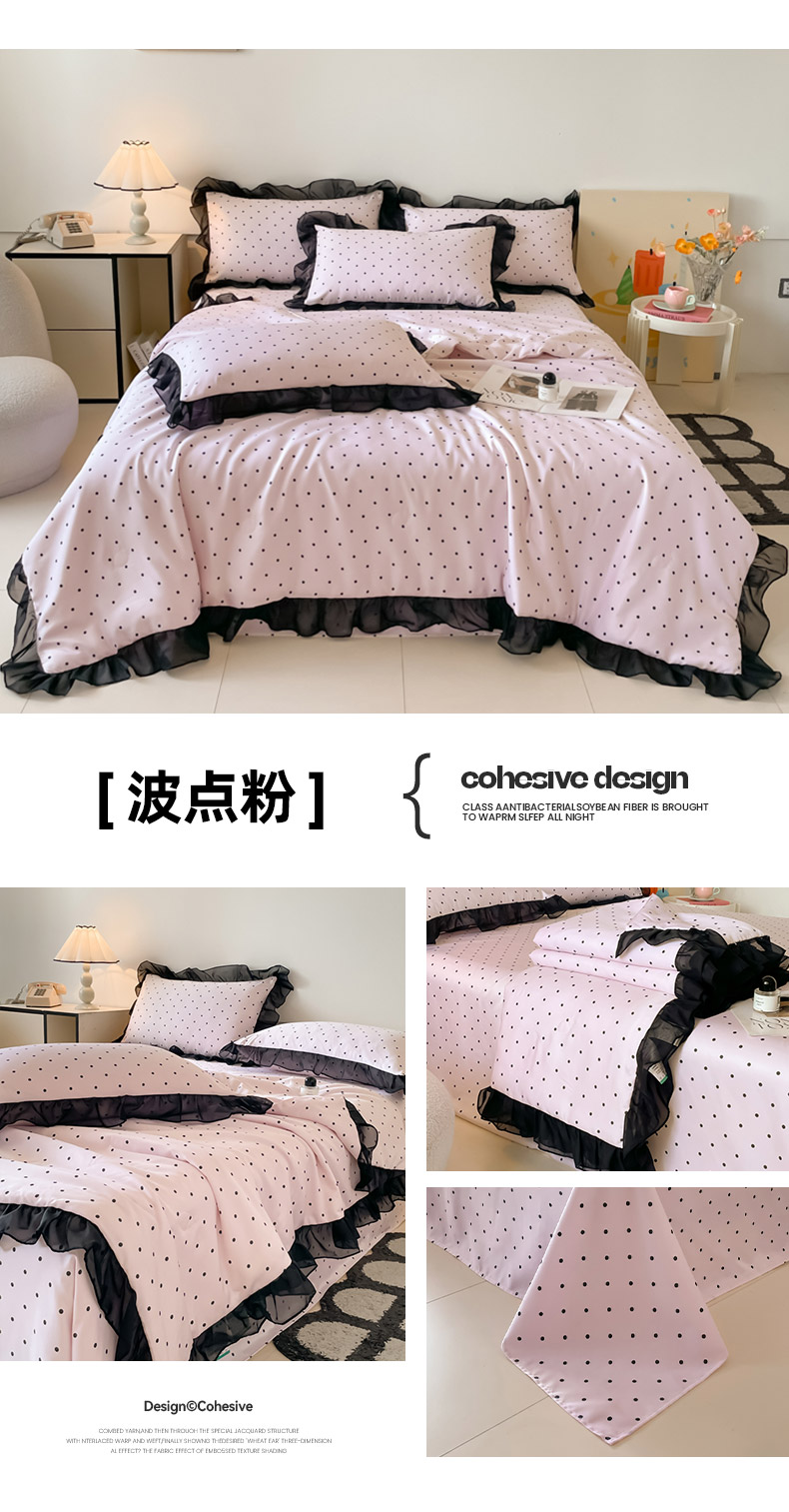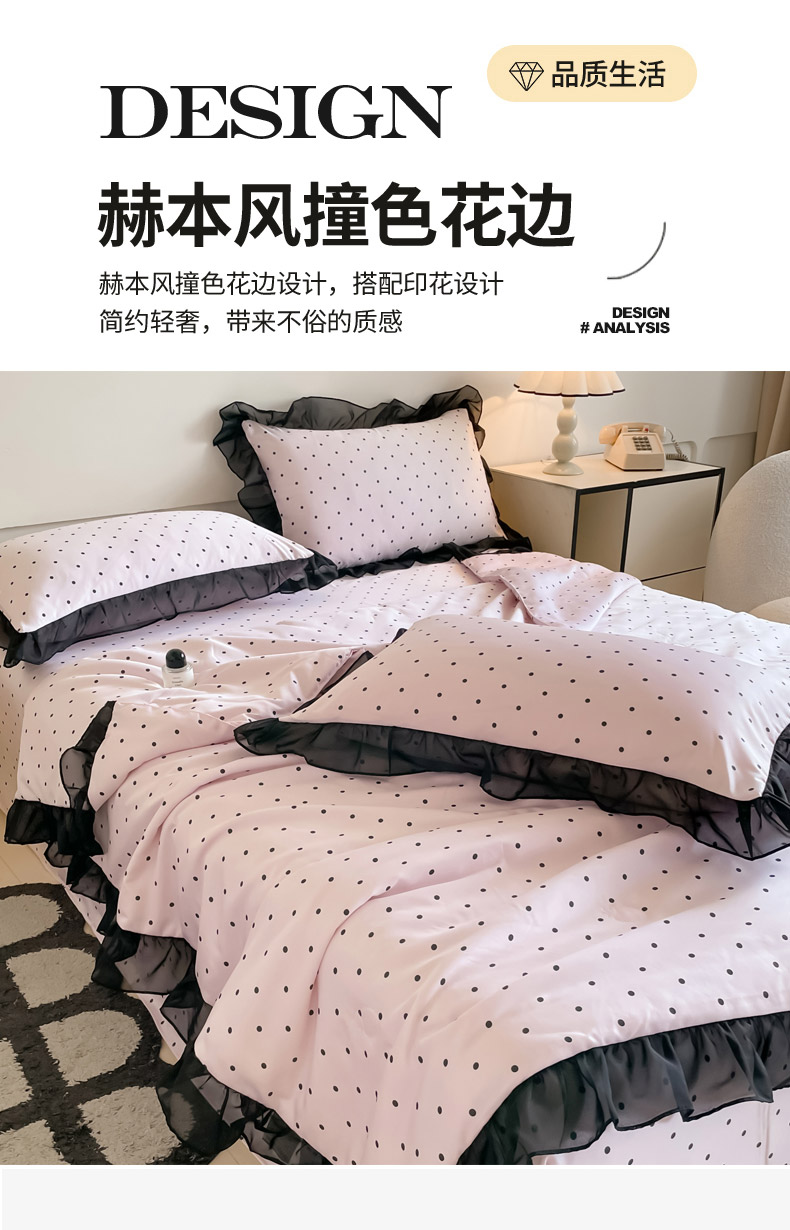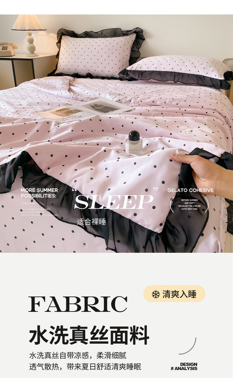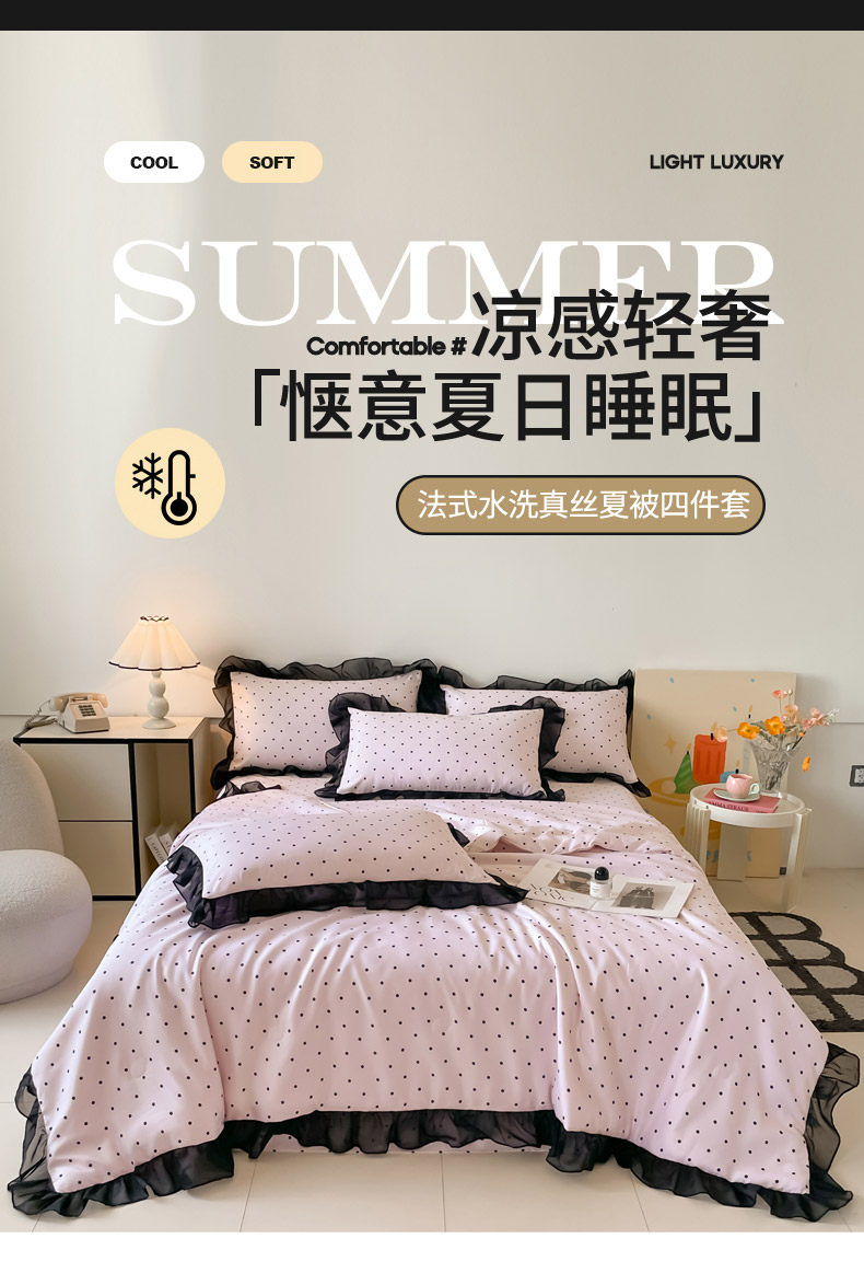 • 91家纺网 家纺一手货源 找家纺 丝印良品 2026新款水洗真丝冰丝美拉德风花边夏被四件套空调被夏凉被 夏被-波点-粉