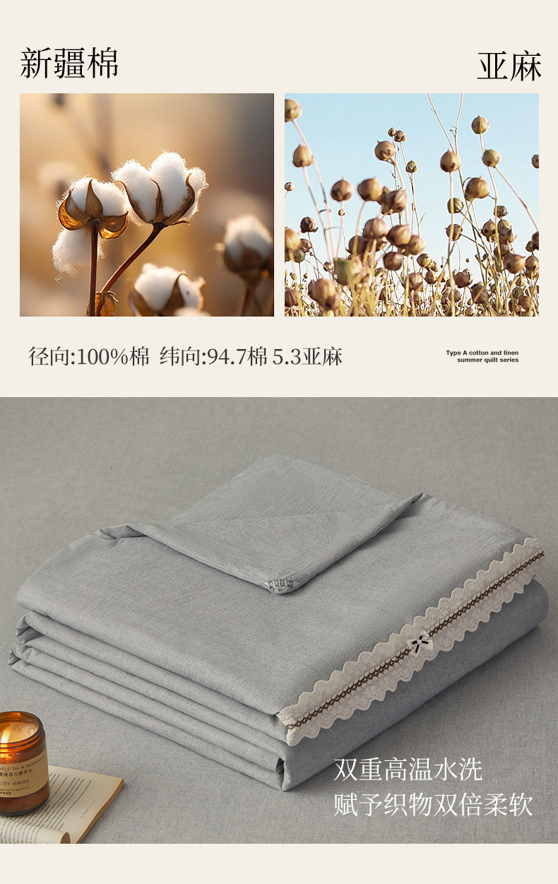 商品名称:尊妙被业 2026新款A类棉麻亚麻夏被大豆夏被四件套 棉麻 蓝