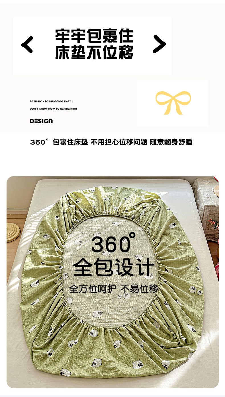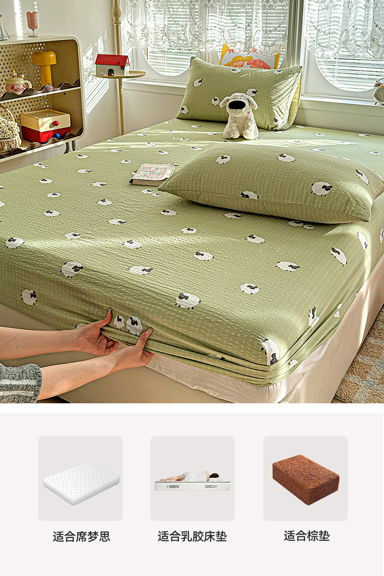 悦织湾家纺 2026新款老粗布印花床单床笠床笠三两件套春秋学生宿舍单双人床笠 羊羊牧场