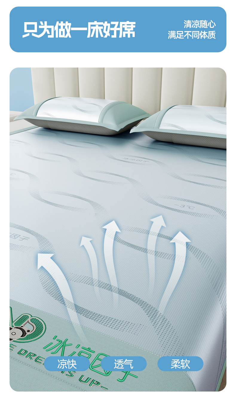 当前位置: 91家纺网 > 商品网购 > 床上用品 > 凉席 > 冰丝席 > 宜派家纺 2026新款冰凉因子冰丝席 冰凉因子-绿
