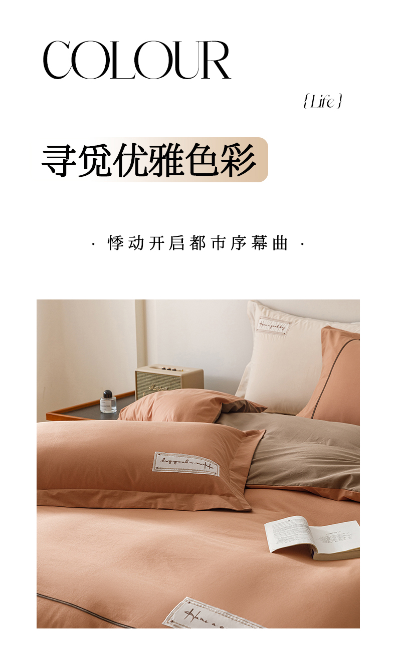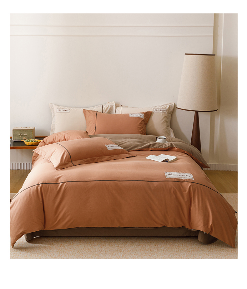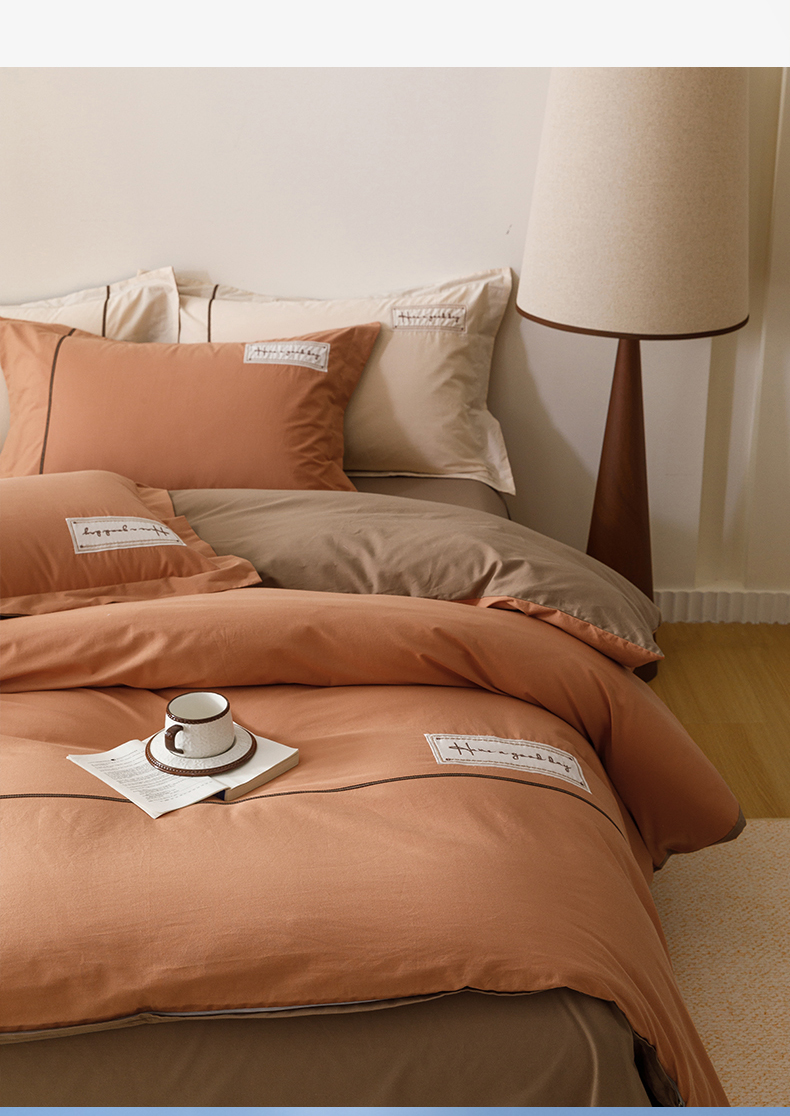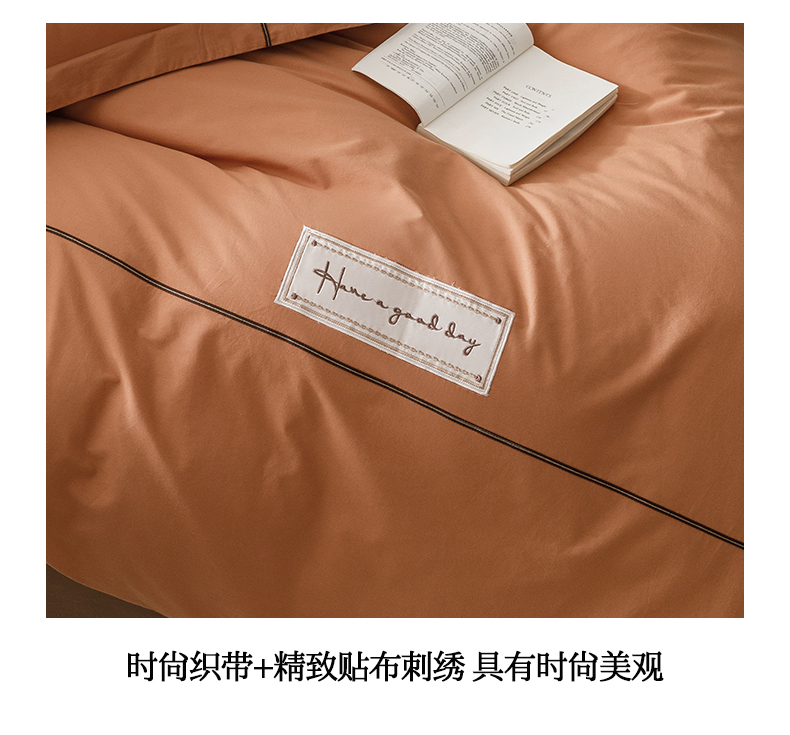 艾莱家纺 2026新款A类水洗棉加厚绣花刺绣四件套-卡尔文 卡尔文-焦糖