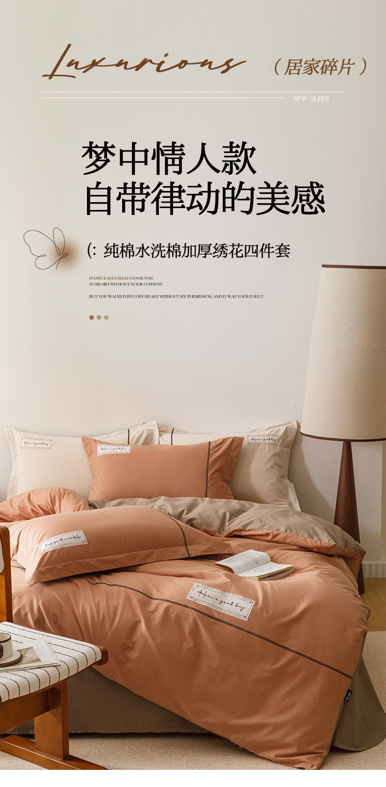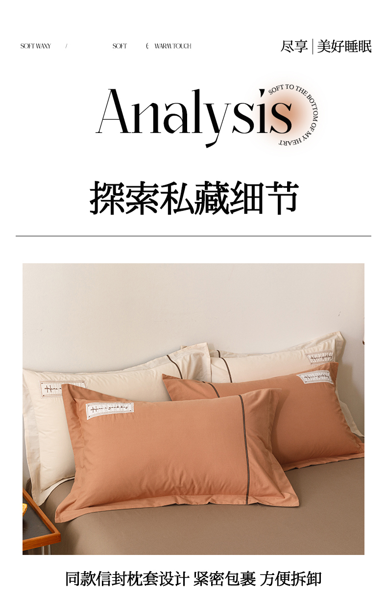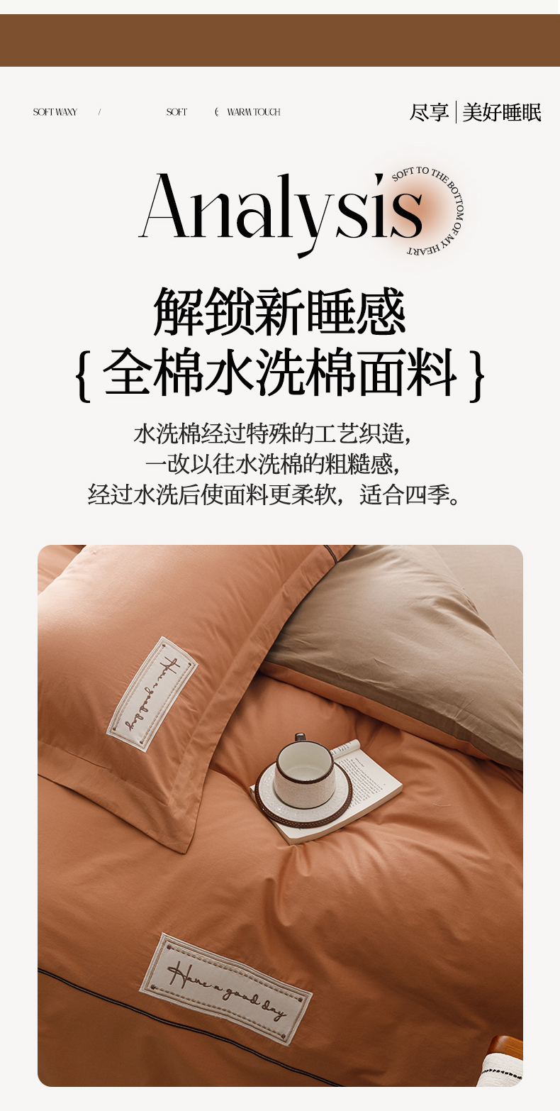 艾莱家纺 2026新款A类水洗棉加厚绣花刺绣四件套-卡尔文 卡尔文-焦糖
