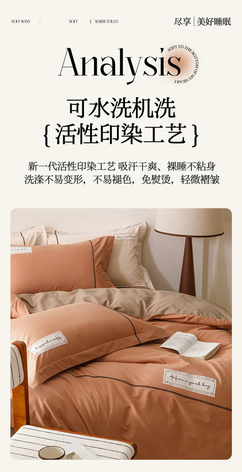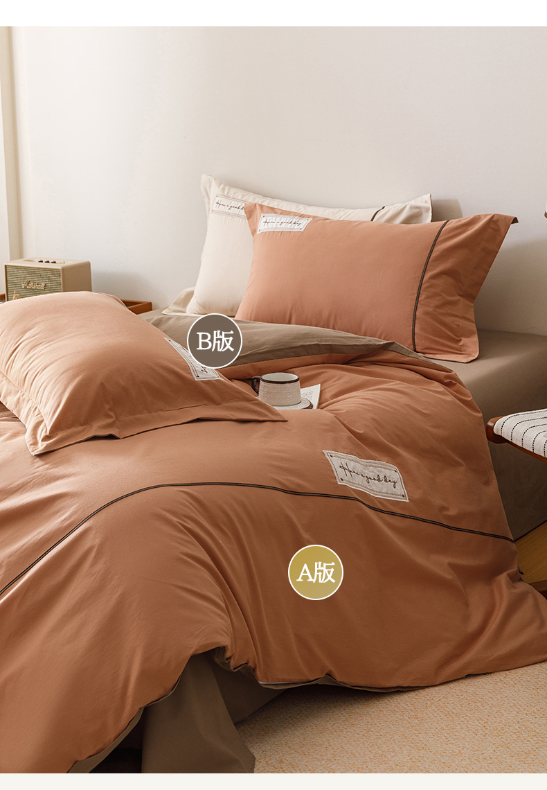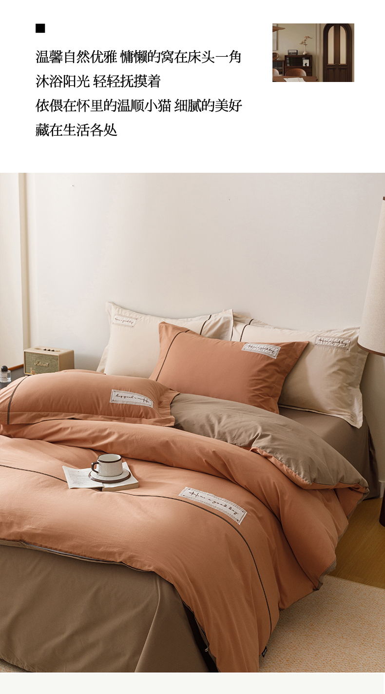 商品名称:艾莱家纺 2026新款A类水洗棉加厚绣花刺绣四件套-卡尔文 卡尔文-焦糖