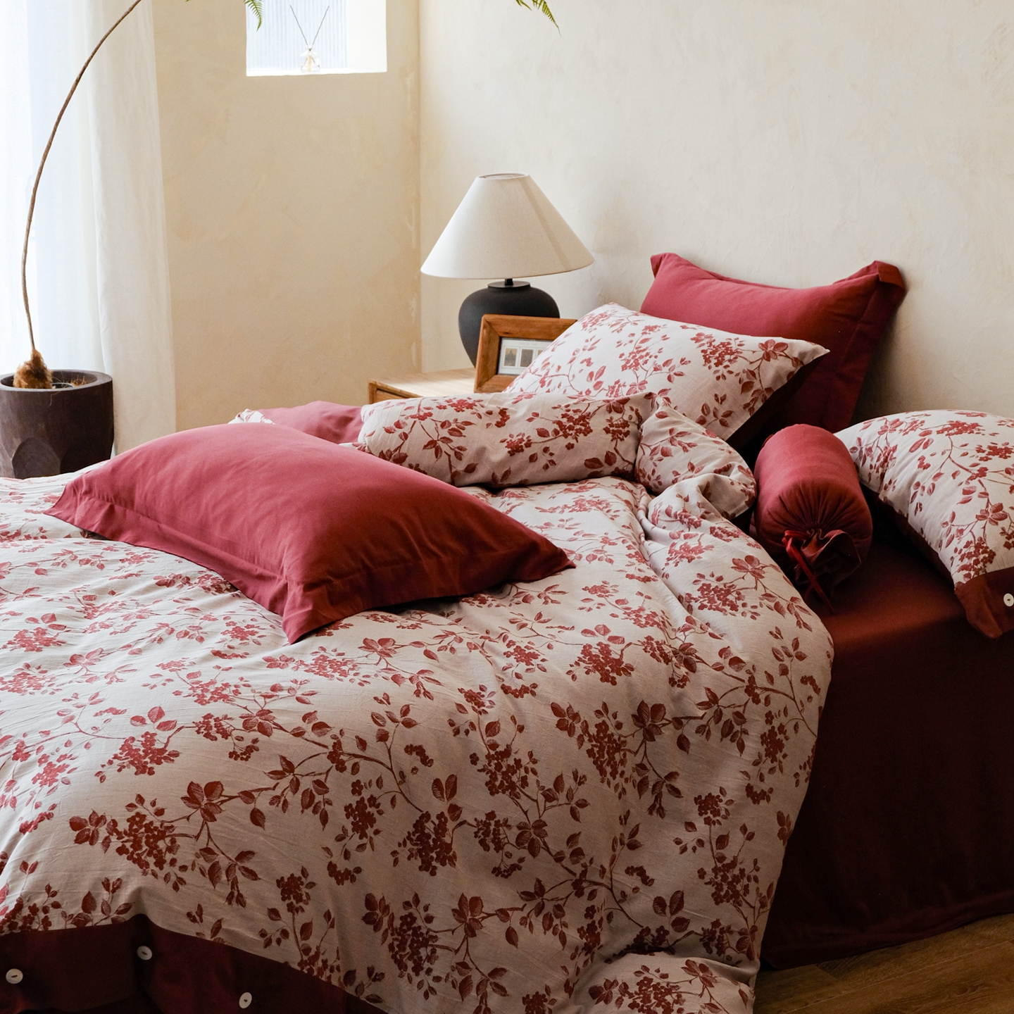 (总)涞澳家纺 2026新款全棉纯棉色织提花(婚庆)四件套,赤韵花影,绯花简语,吉庆红韵,轻红漫花,朱砂暖眠