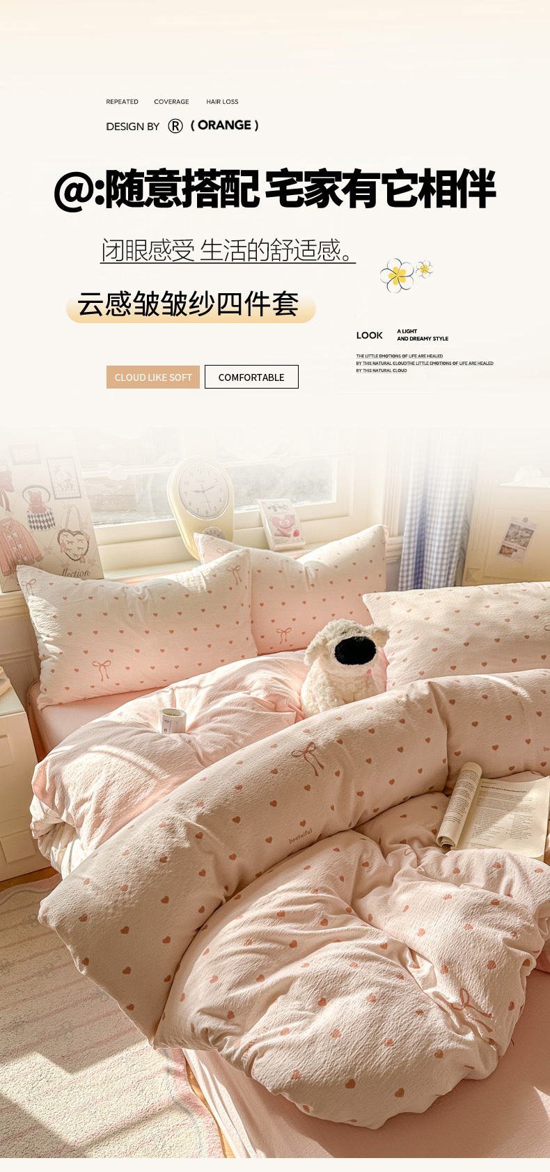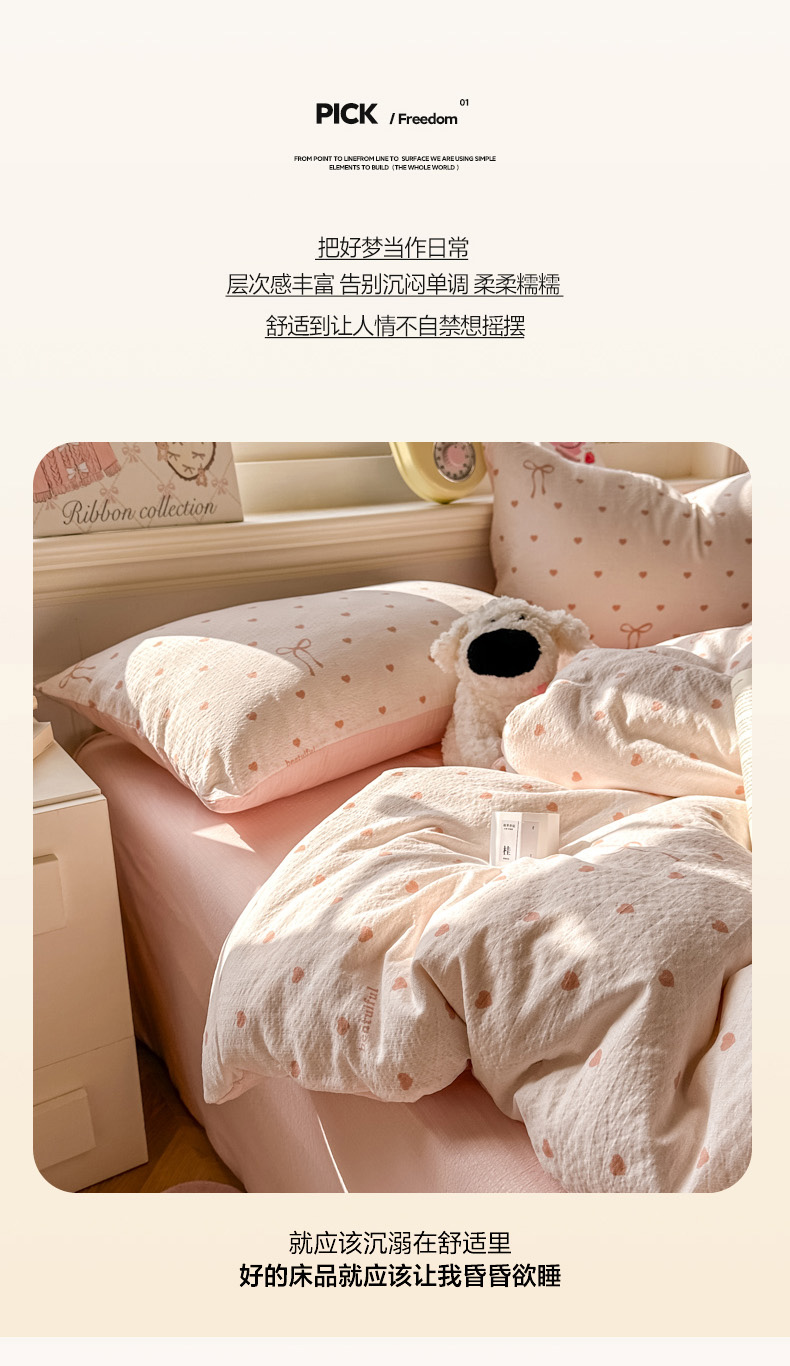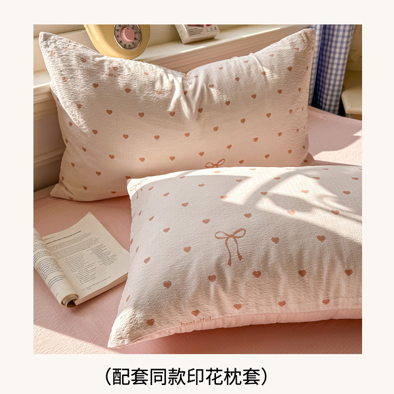 当前位置: 91家纺网 > 商品网购 > 床品套件 > 四件套 > 其它四件套 > 柒月家居 2026新款云感皱皱纱小清新木棉四件套 少女爱心