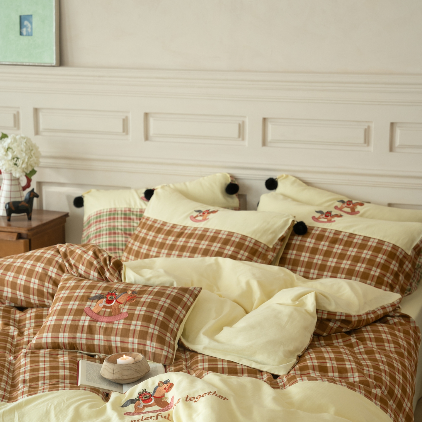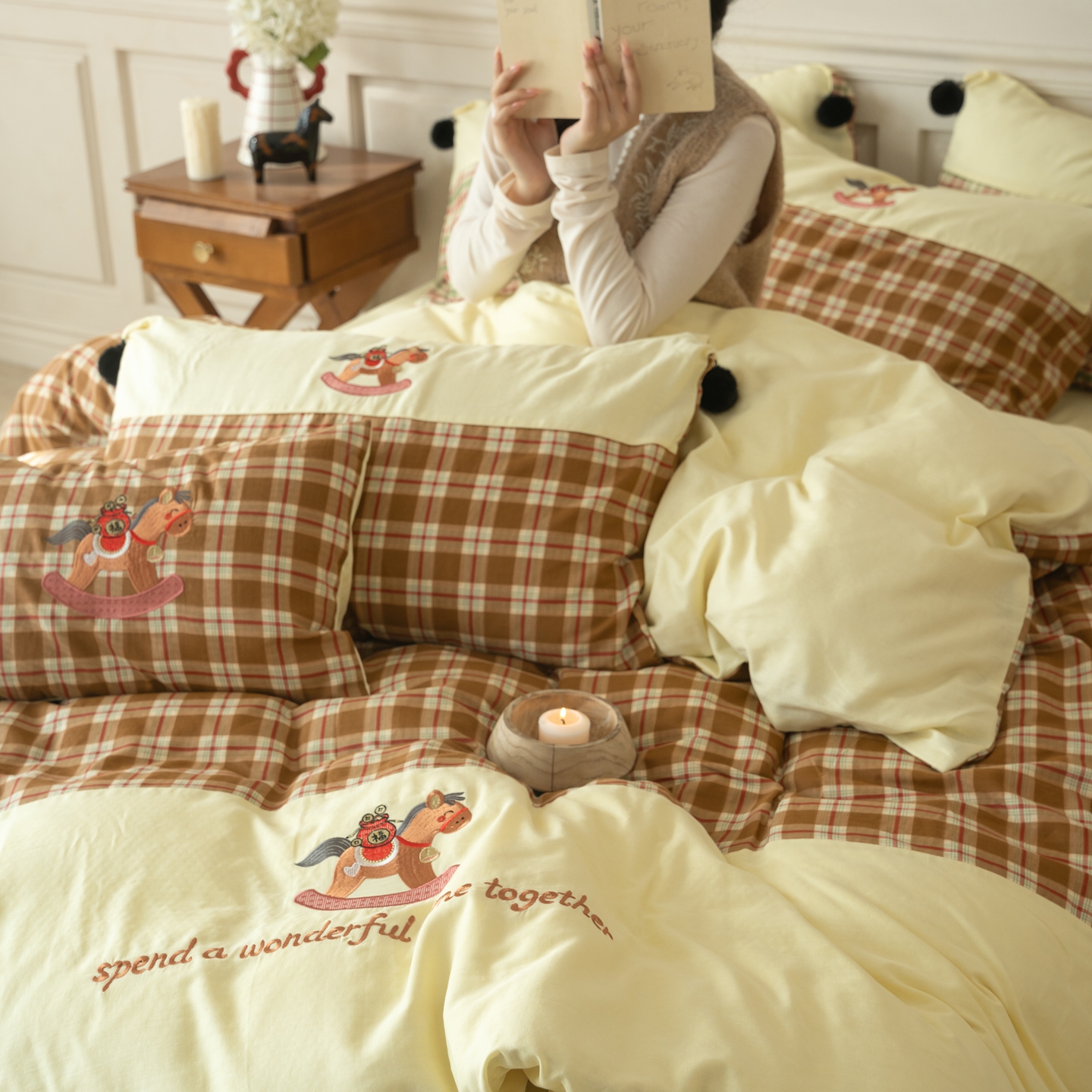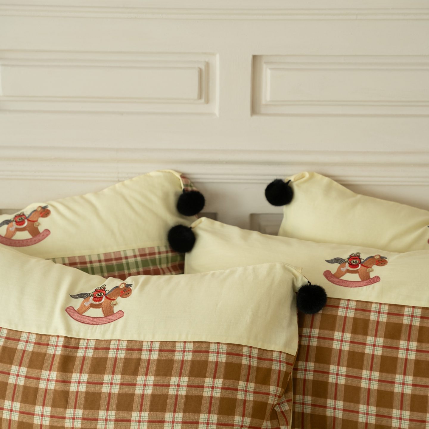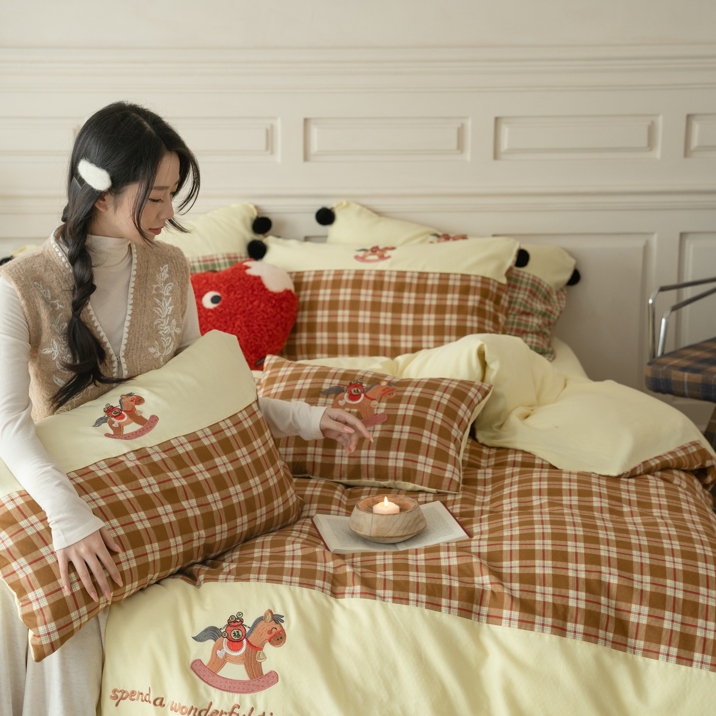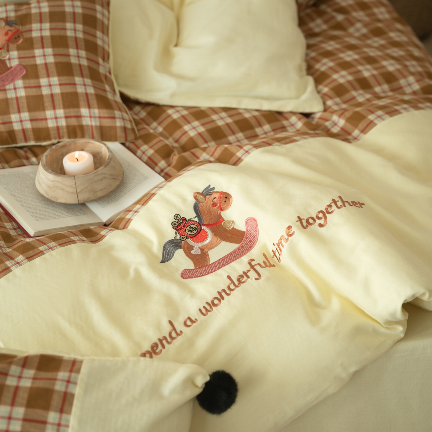 (总)优然居家纺 2026新款全棉双层纱刺绣四件套-马上有钱(控价260/328/348),马上有钱-黑格,马上有钱-黄格,马上有钱-绿格