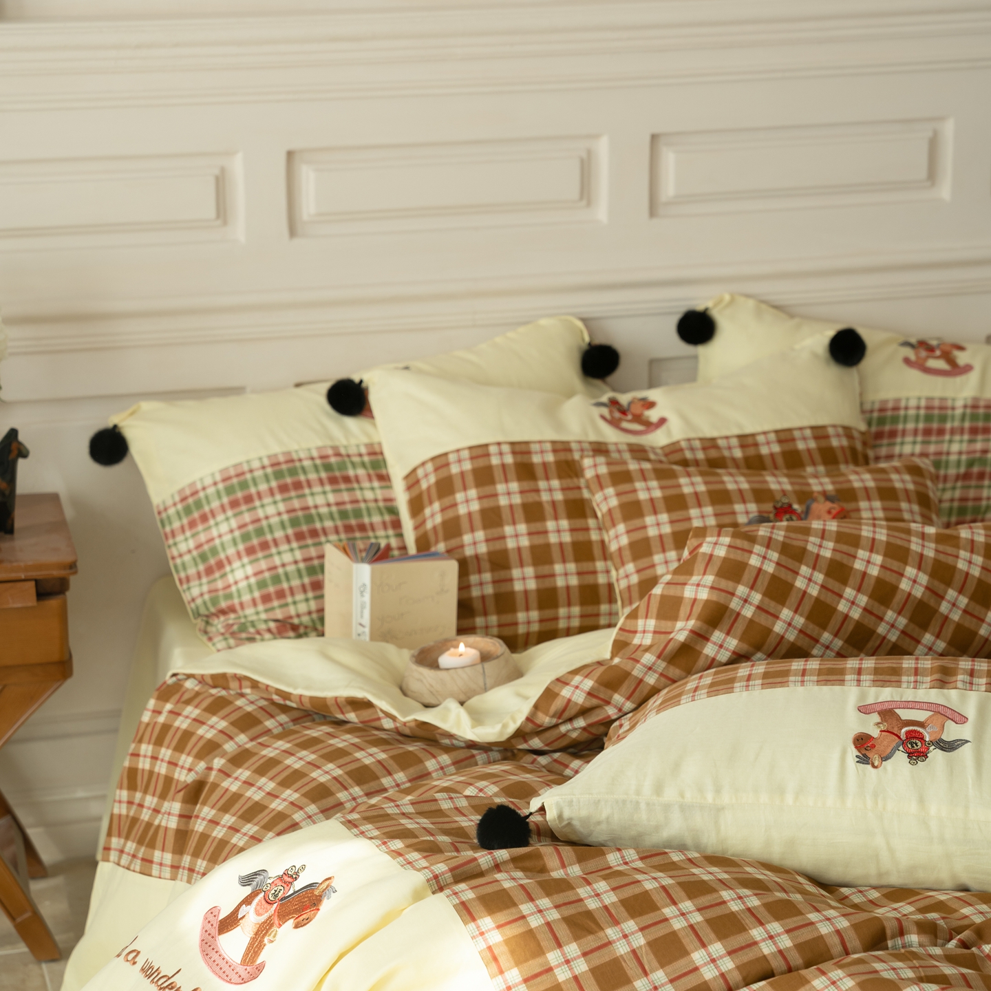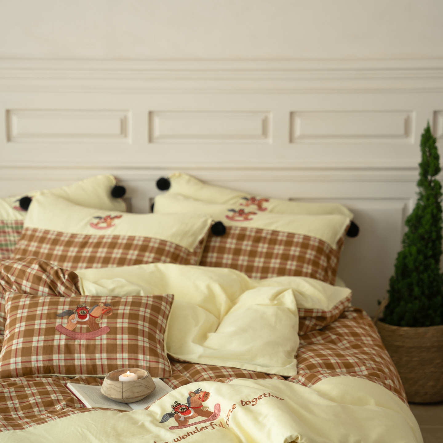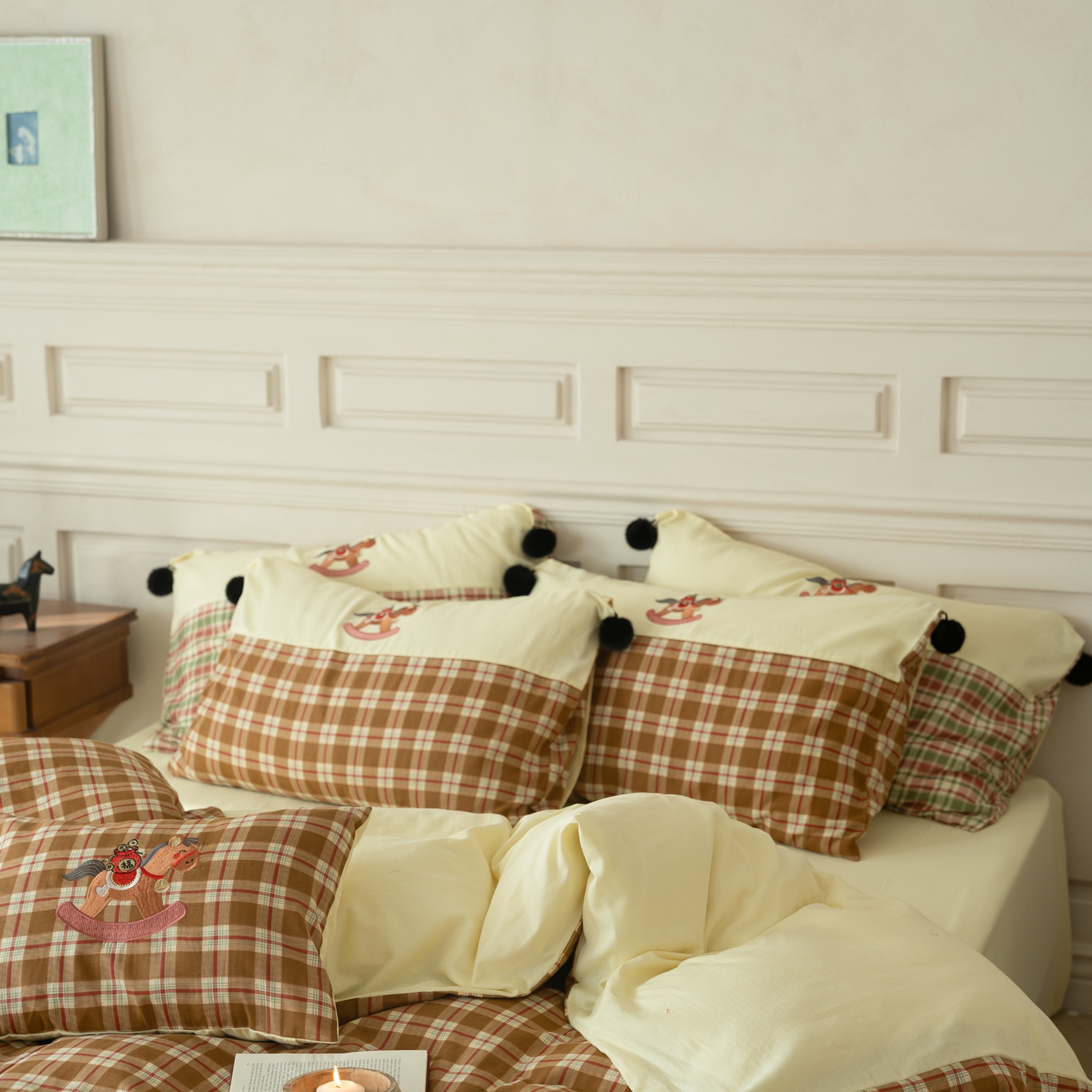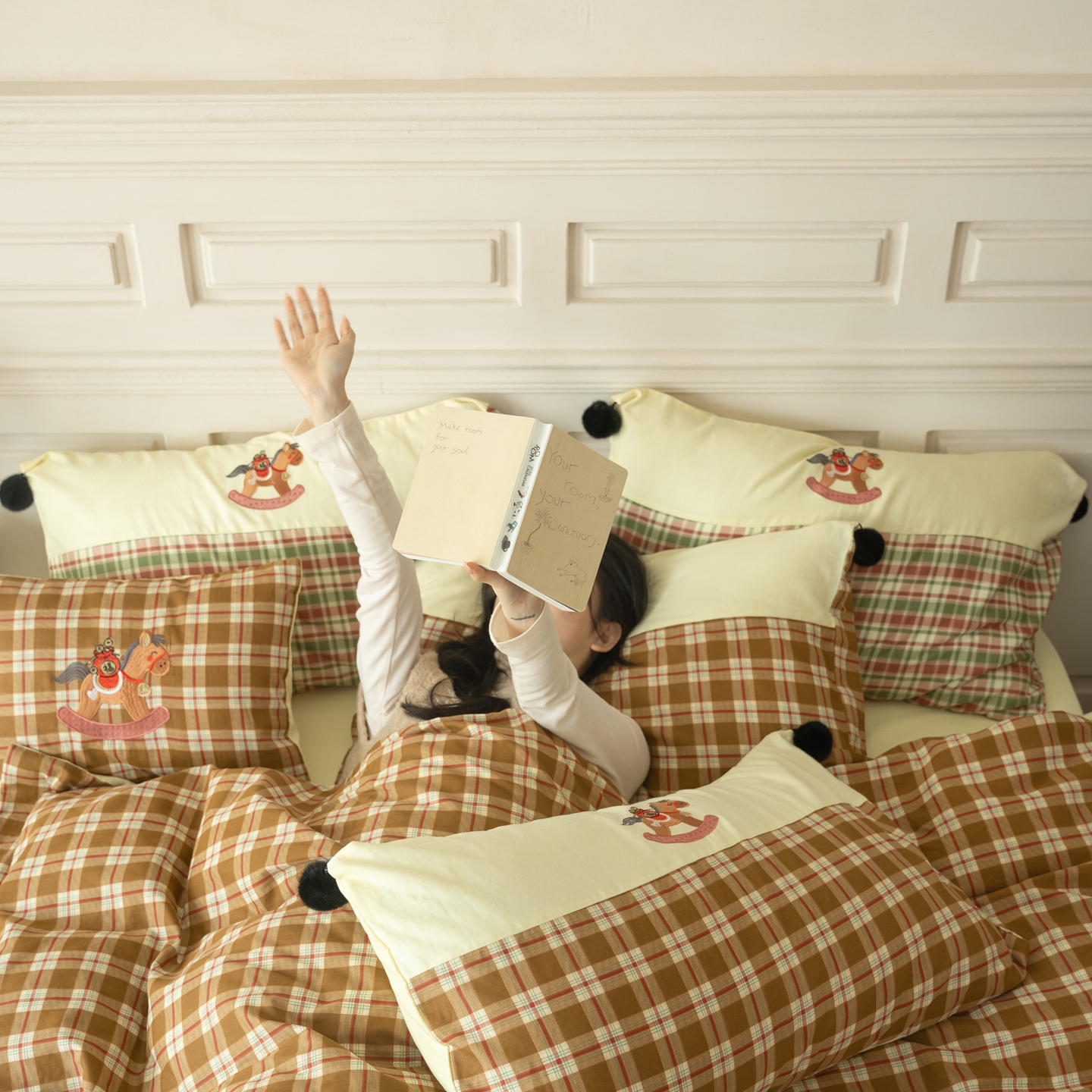 (总)优然居家纺 2026新款全棉双层纱刺绣四件套-马上有钱(控价260/328/348),马上有钱-黑格,马上有钱-黄格,马上有钱-绿格