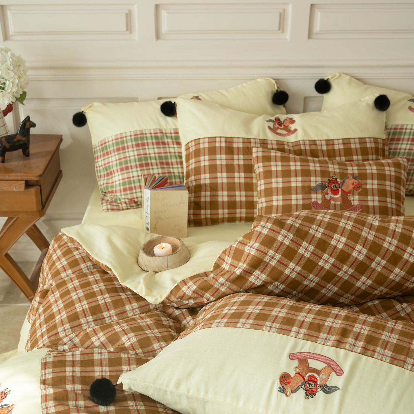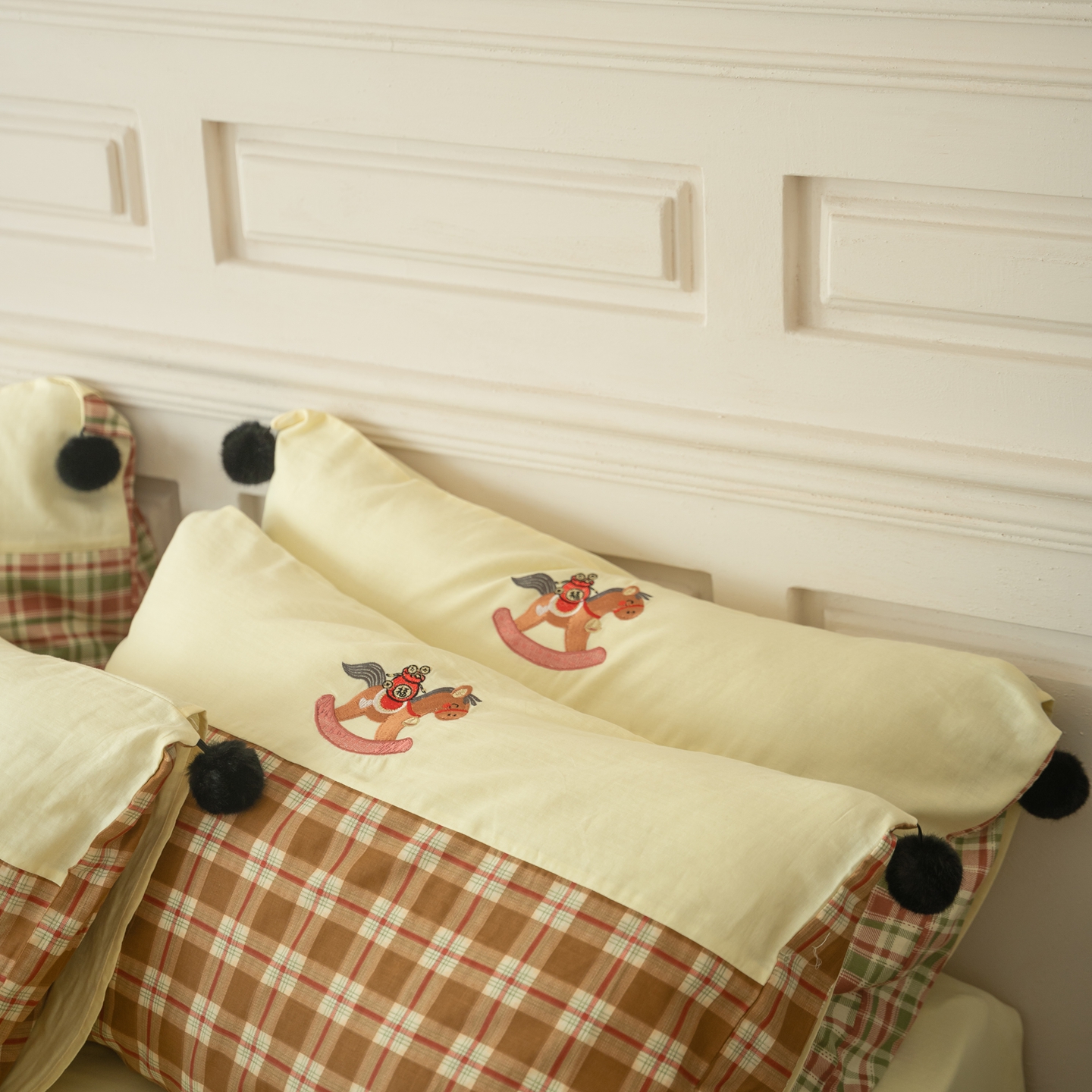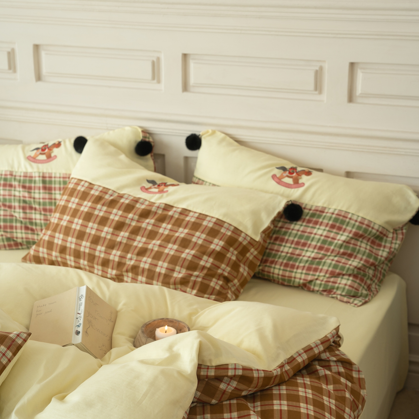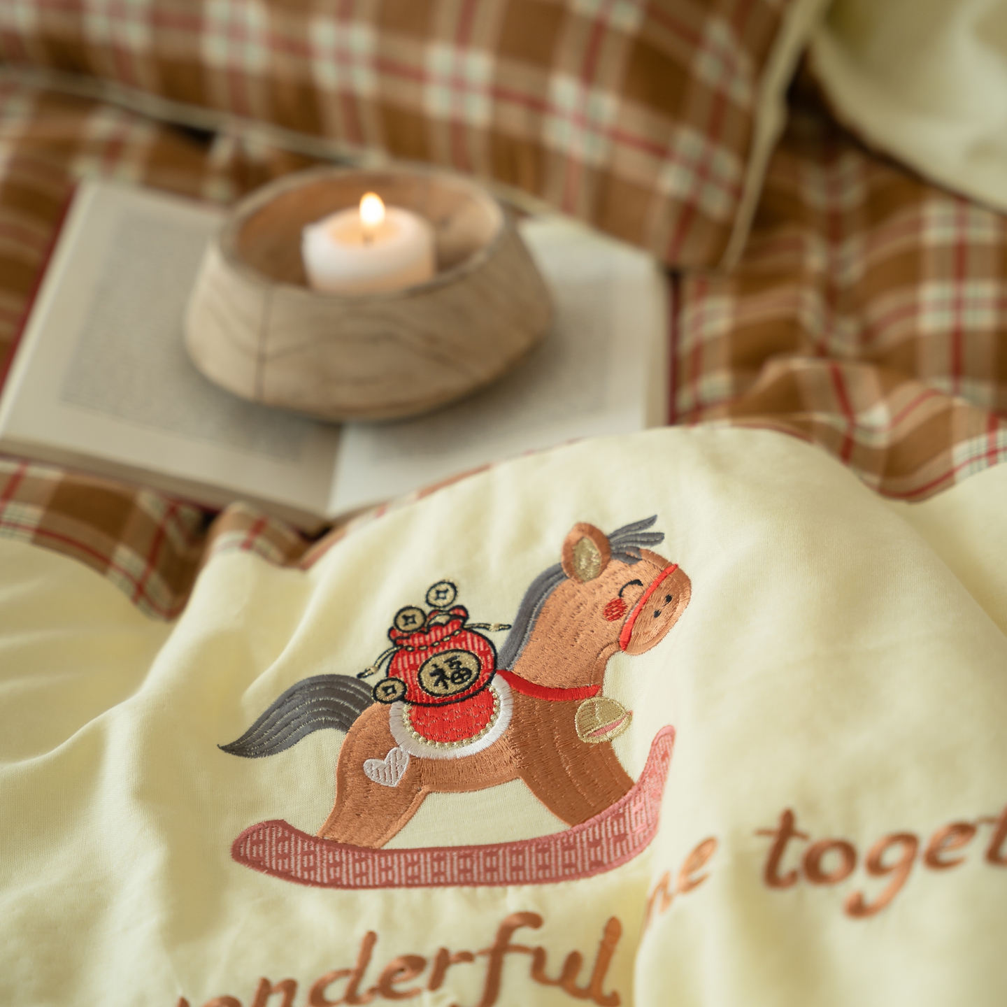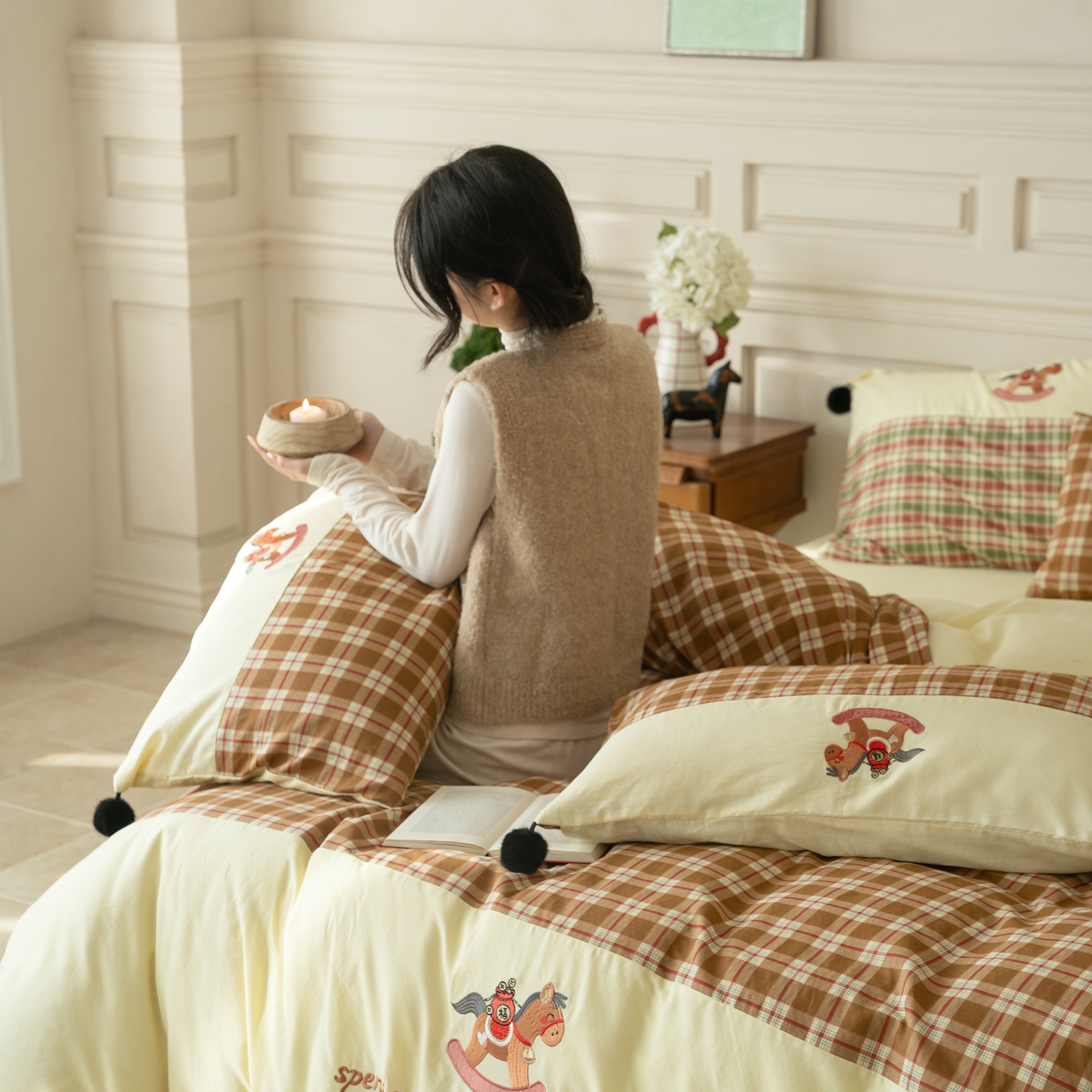 (总)优然居家纺 2026新款全棉双层纱刺绣四件套-马上有钱(控价260/328/348),马上有钱-黑格,马上有钱-黄格,马上有钱-绿格