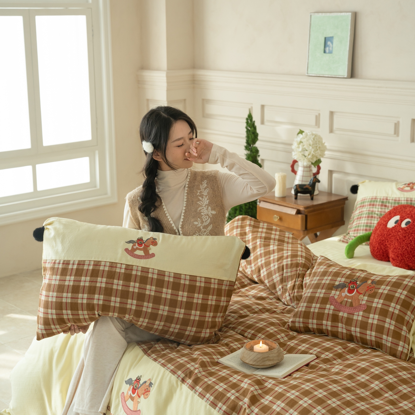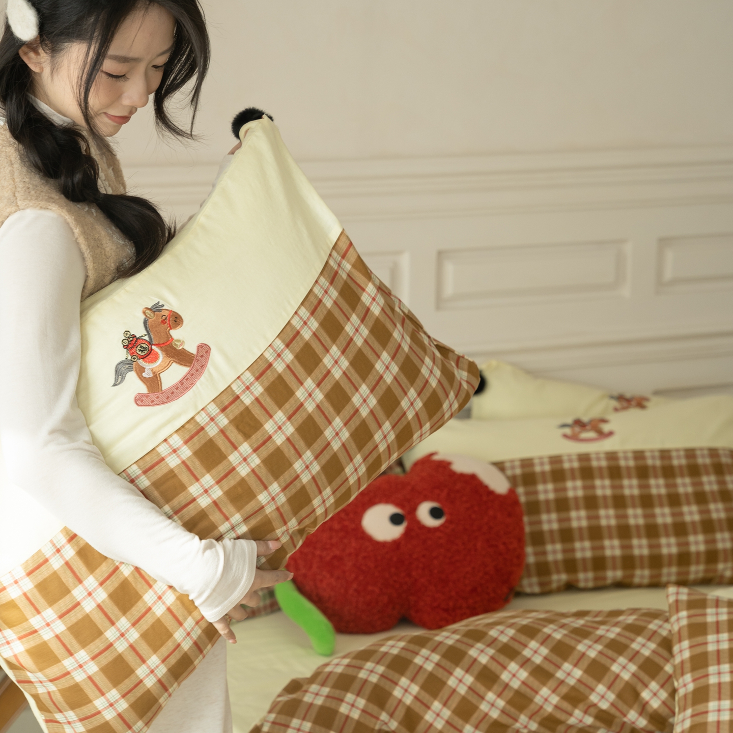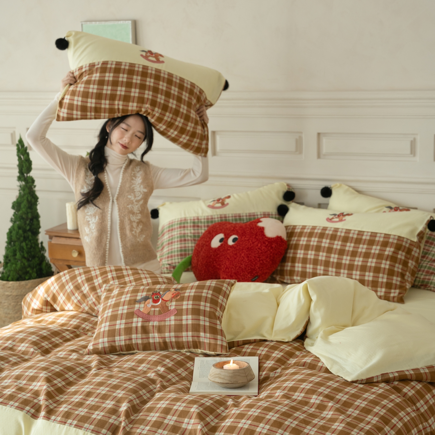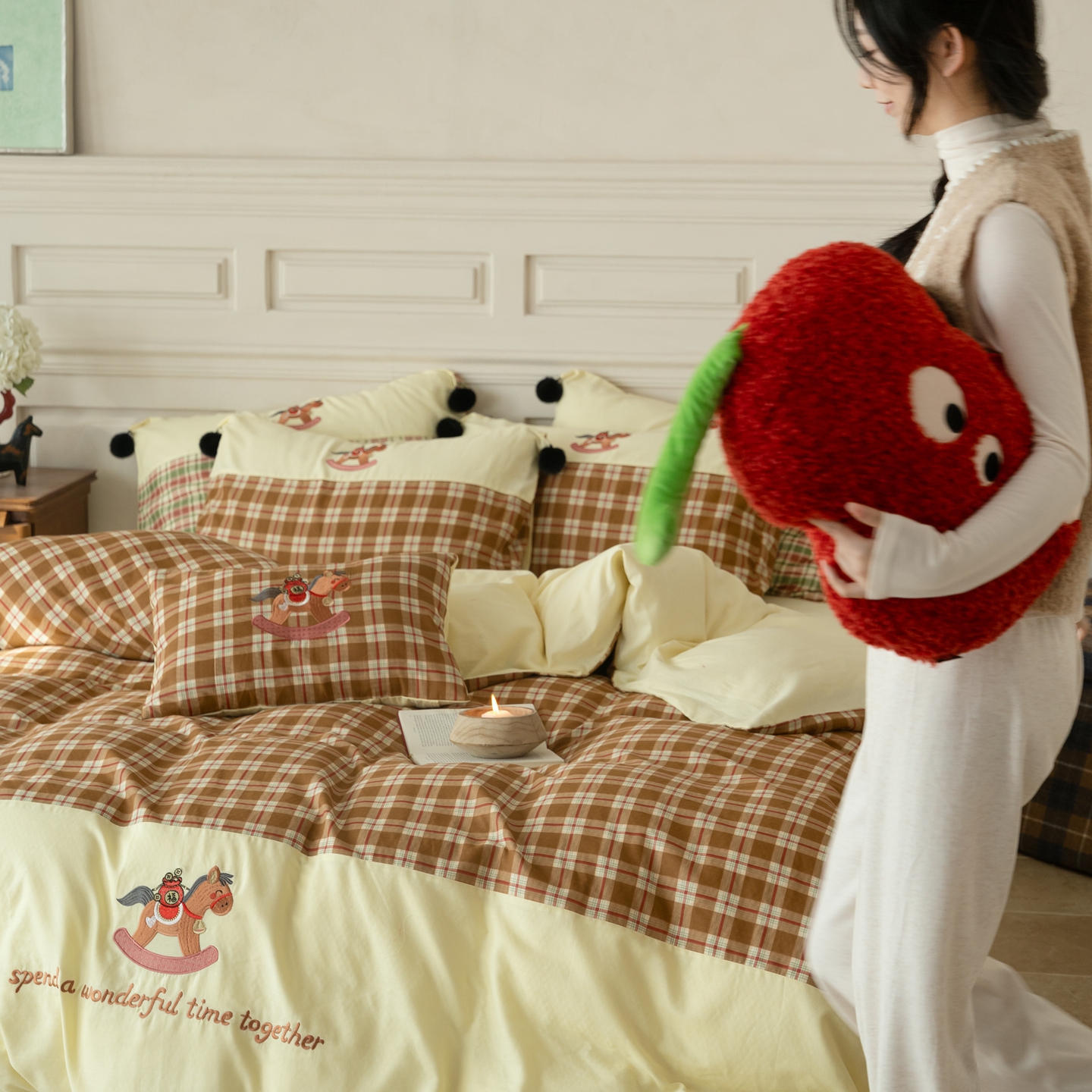 (总)优然居家纺 2026新款全棉双层纱刺绣四件套-马上有钱(控价260/328/348),马上有钱-黑格,马上有钱-黄格,马上有钱-绿格