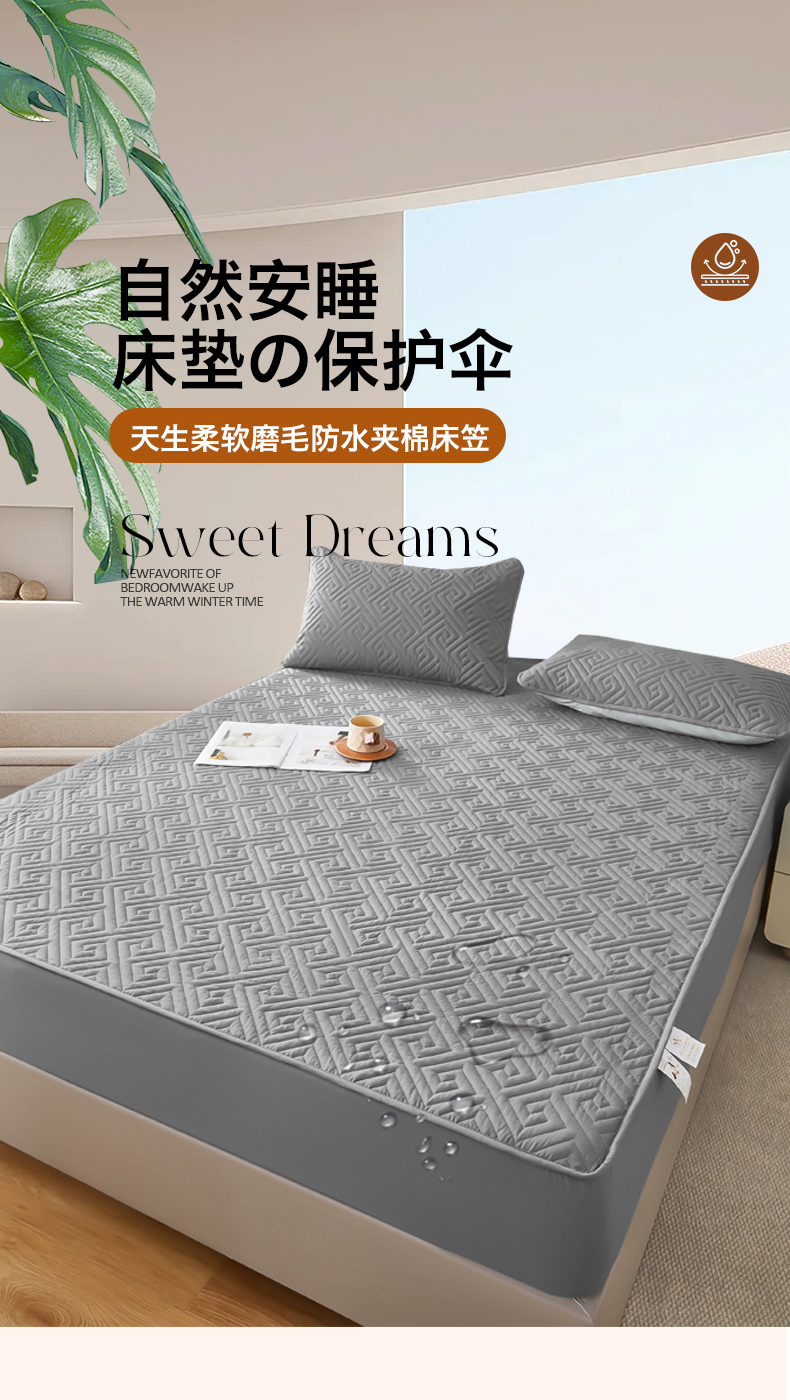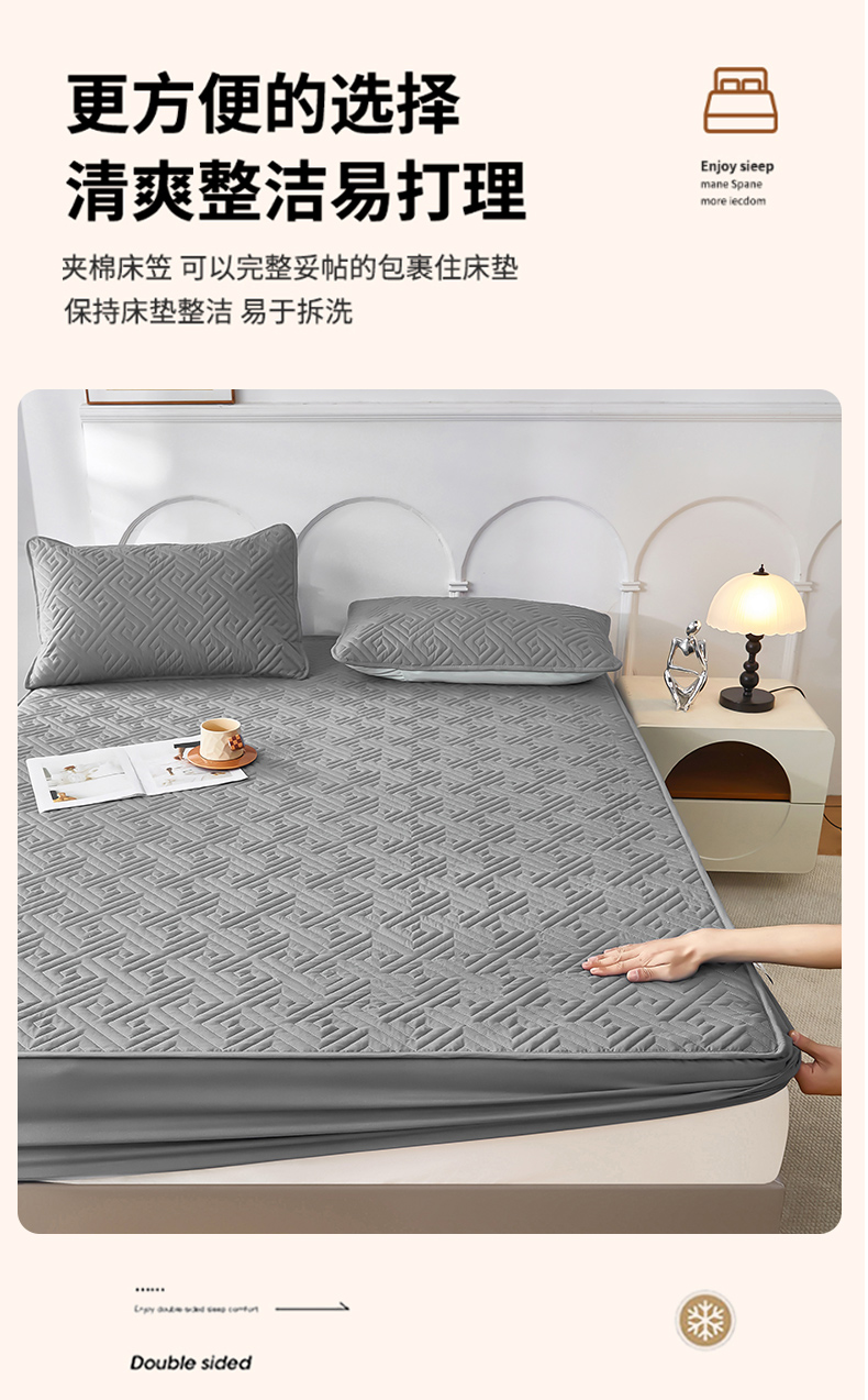 • 91家纺网 家纺一手货源 找家纺 三盛源 2026新款A类防水夹棉床笠加厚席梦思床垫保护套床笠罩防滑-简奢系列(支持小批量定制尺寸) 简奢系列-星空灰