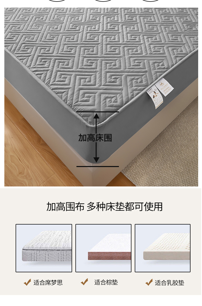 (总)三盛源 2026新款A类防水隔尿床笠单件夹棉加厚席梦思床垫保护罩防尘床单床罩床套-洛卡系列(支持小批量定制尺寸),洛卡系列-优雅灰,洛卡系列-粉豆沙,洛卡系列-卡其,洛卡系列-孔雀蓝,洛卡系列-抹茶绿,洛卡系列-奶昔白