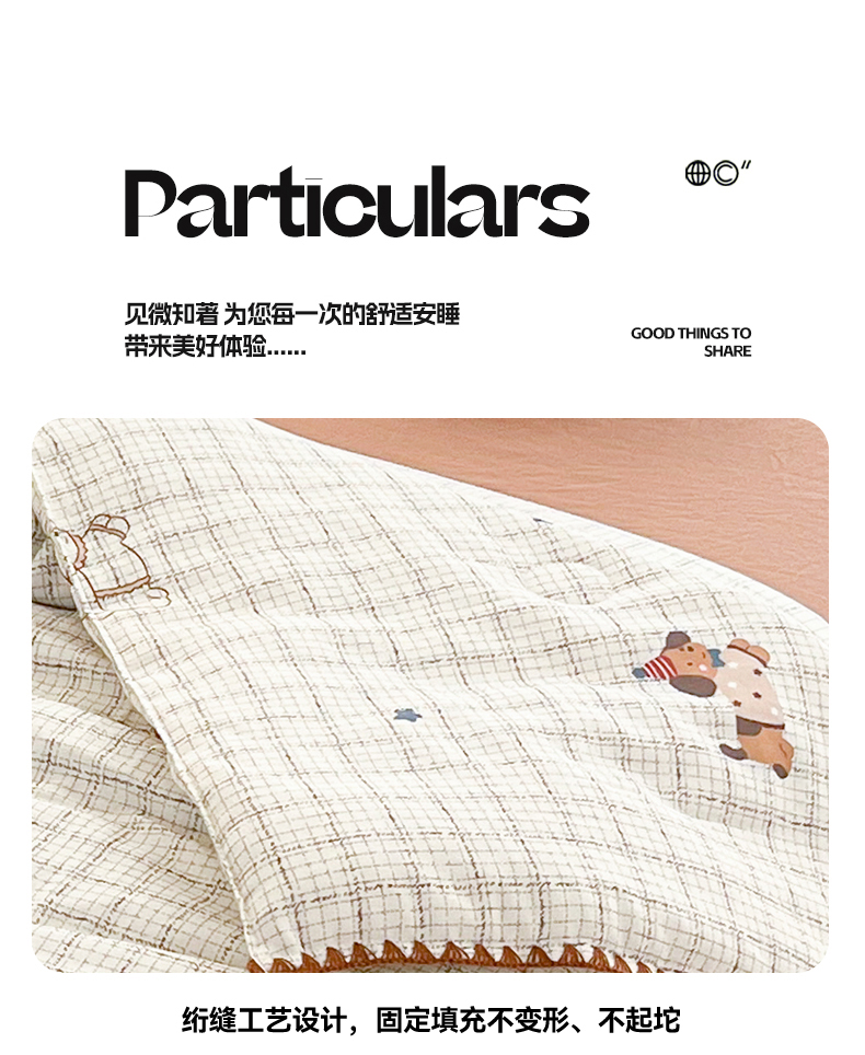 (总)盛秋家纺 2026新款皱皱纱印花夏被-萝拉,生日派对+清新绿,格子花园+奶油粉,格子铺粉+天空蓝,花丛小熊+奶油粉,可可颂蓝+天空蓝,恐龙游记+天空蓝,快乐时光+深咖,麻薯团+米驼,派对狗+深咖,森林小象+奶油粉,小狗来信+奶油粉,小伙伴+米驼,小熊小花+麦绿,修勾咖+米驼