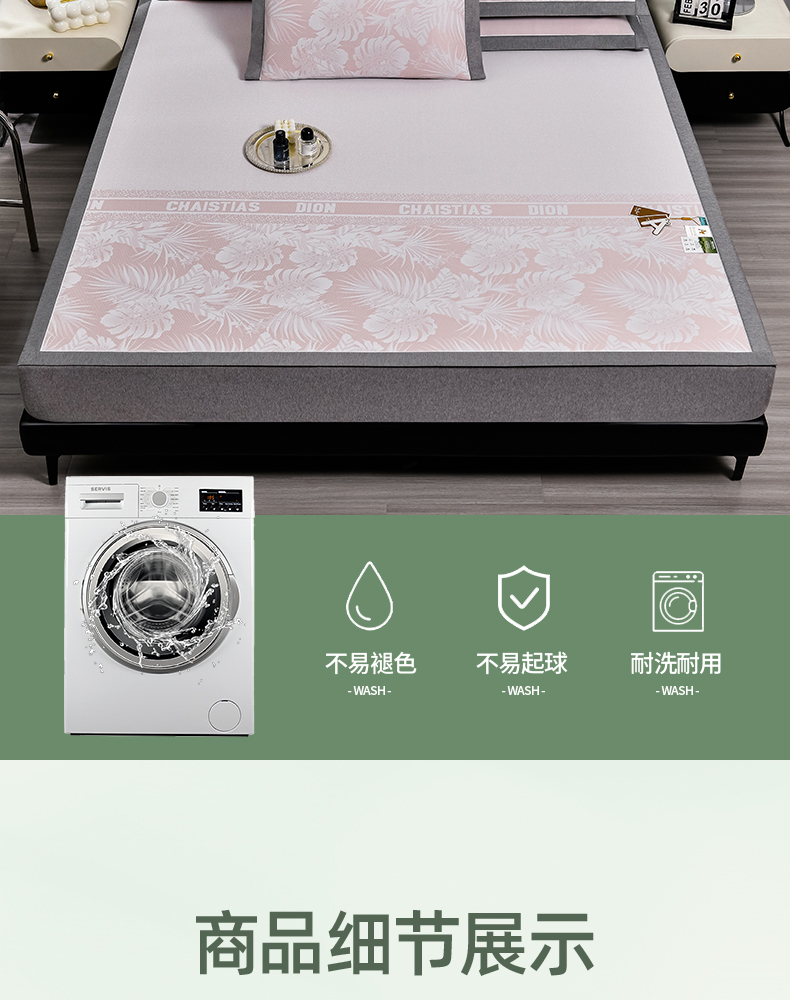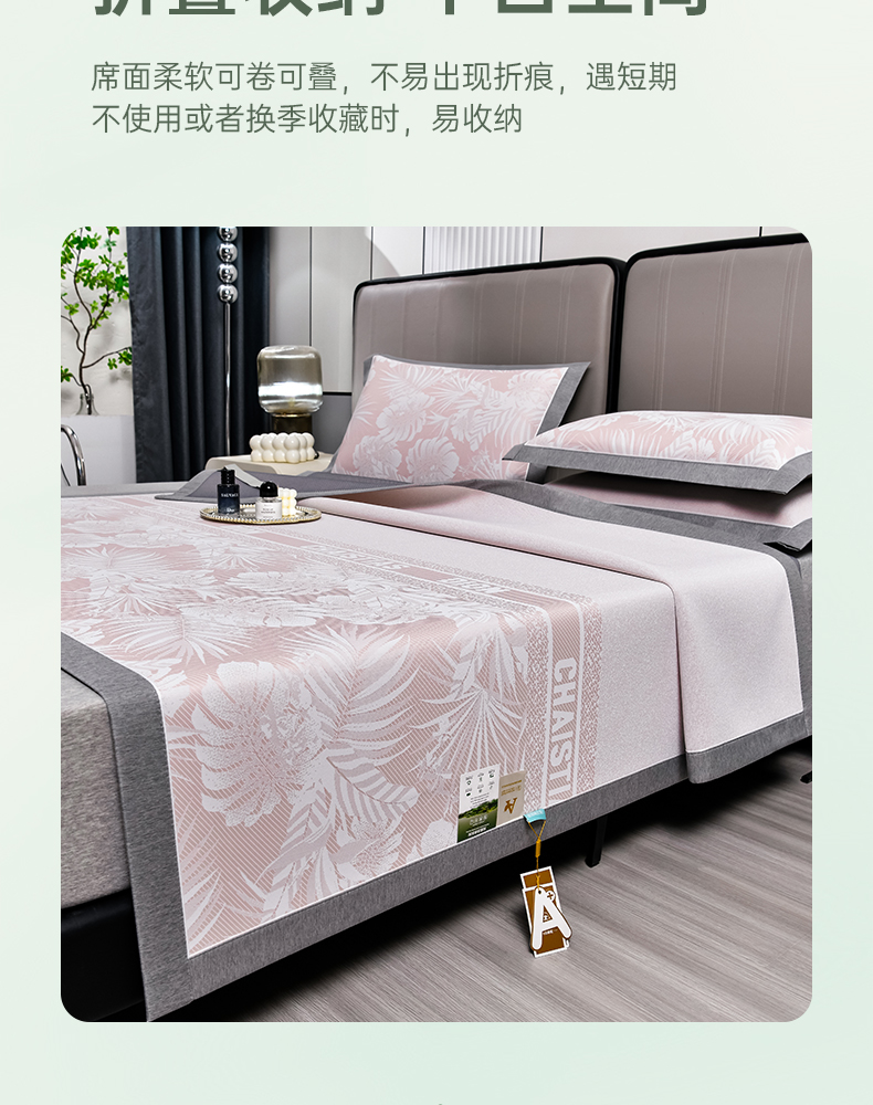 (总)2023新款超精密冰丝席-小斜纹系列-床笠款藤席凉席竹席,粉色,蓝色,绿色,银灰
