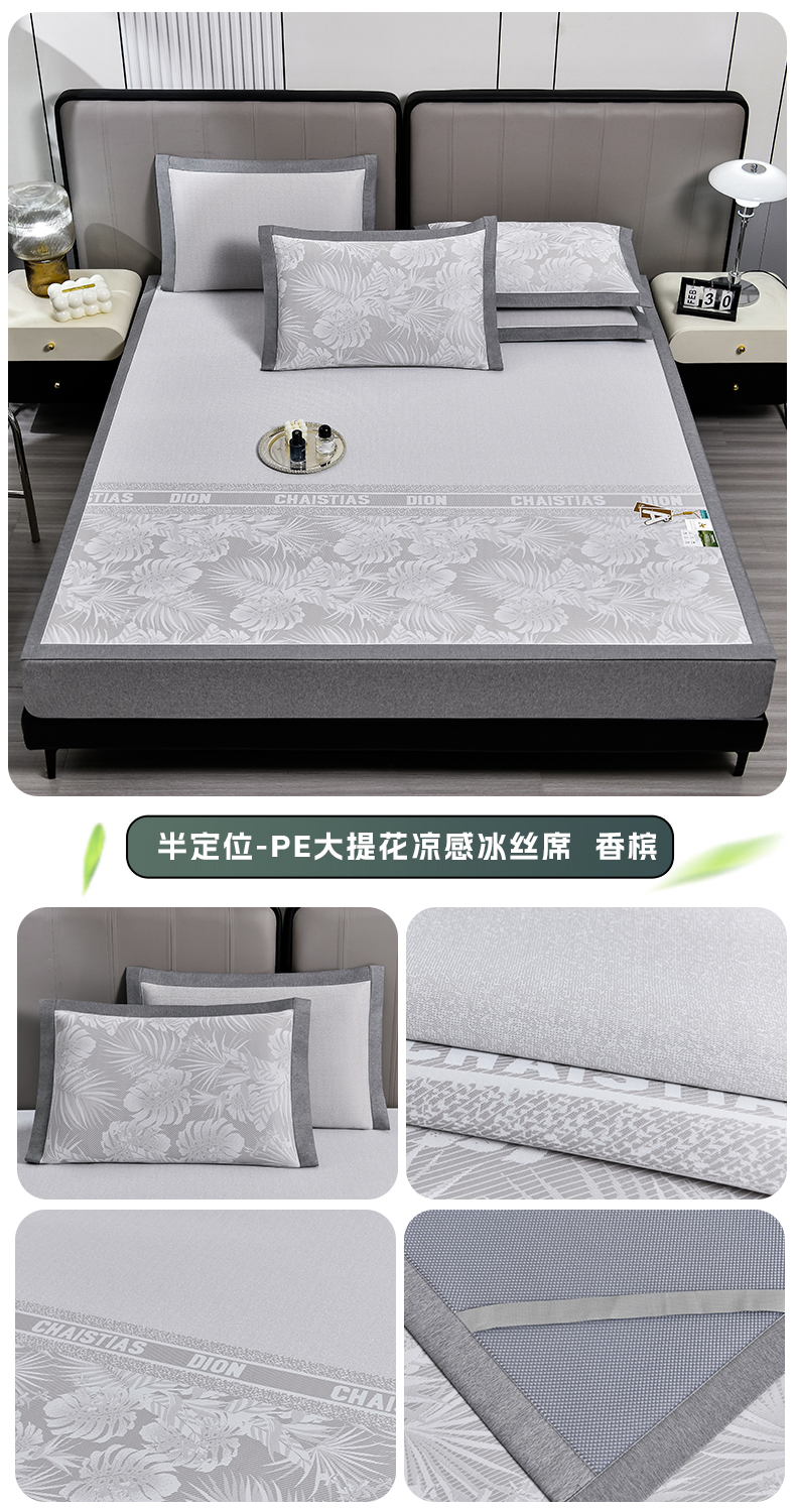 (总)小牛席业 2026春夏新款轻奢半定位凉感冰丝席凉席席子系列床笠款,轻奢半定位-粉色 床笠款,轻奢半定位-灰色 床笠款,轻奢半定位-蓝色 床笠款,轻奢半定位-抹茶 床笠款,轻奢半定位-香槟 床笠款