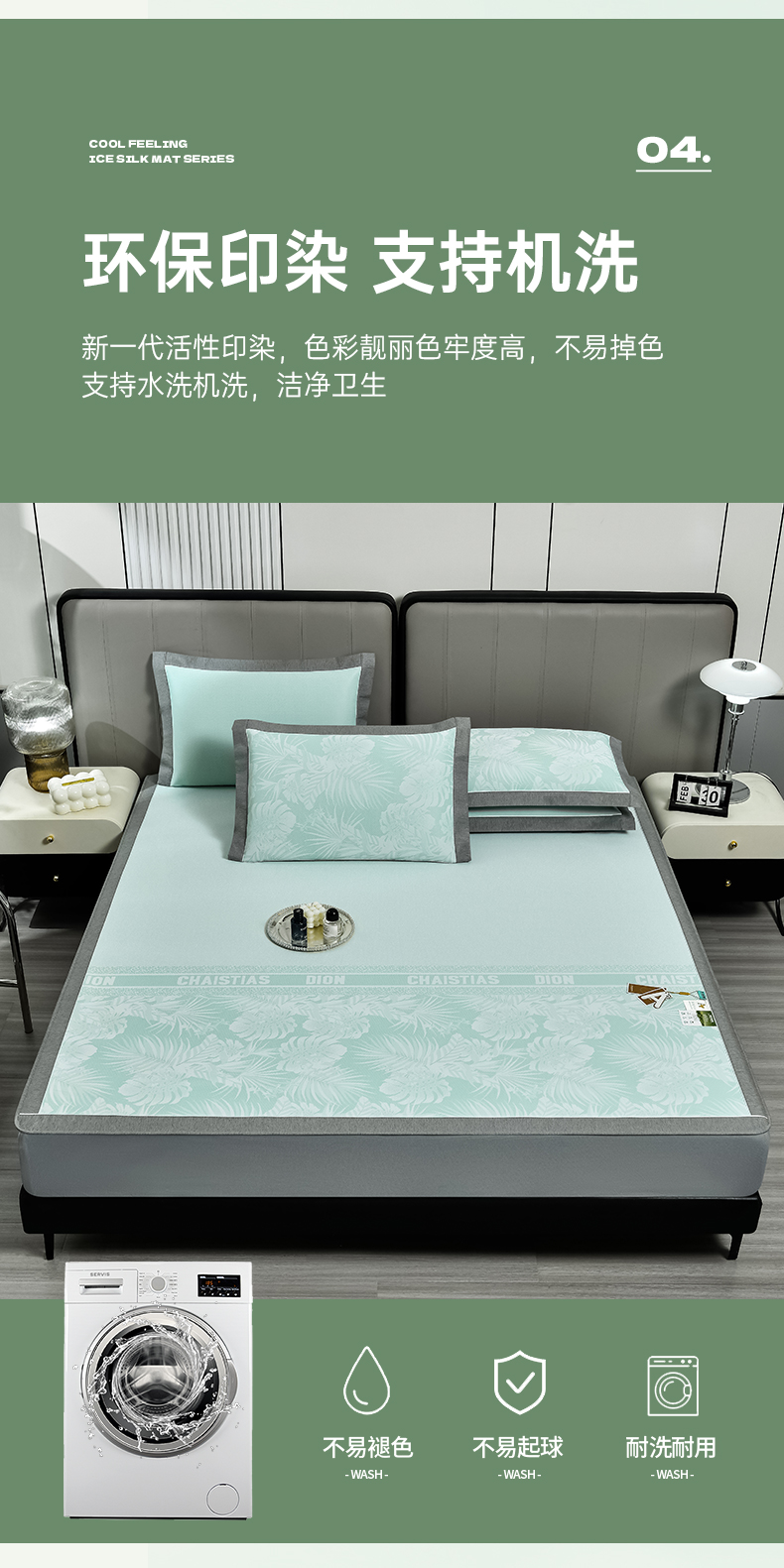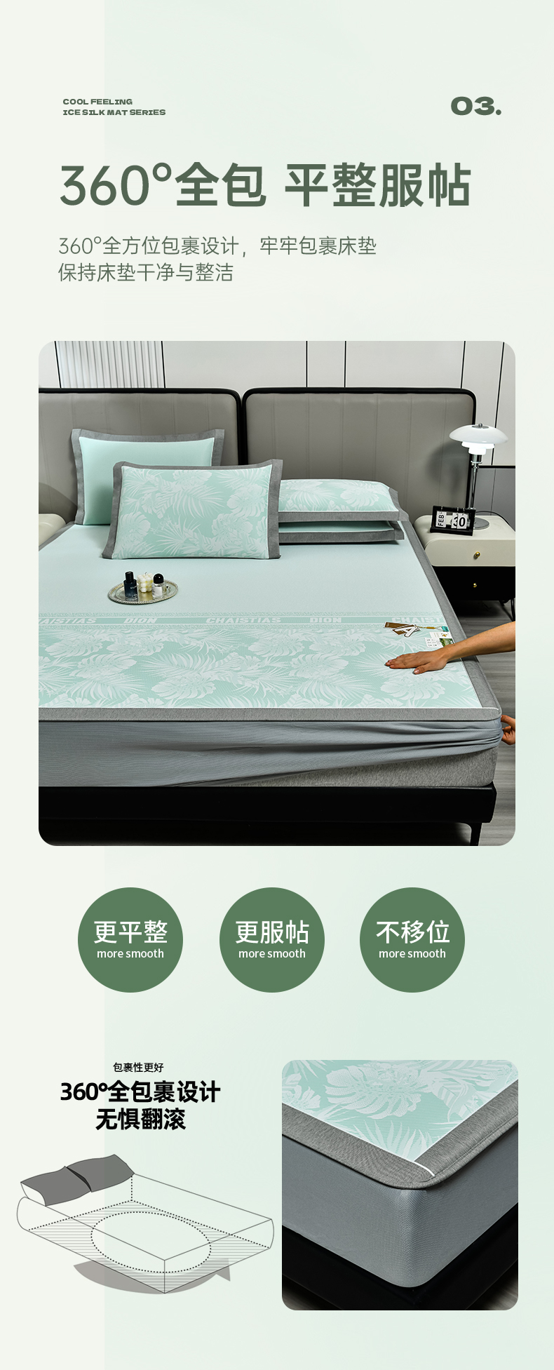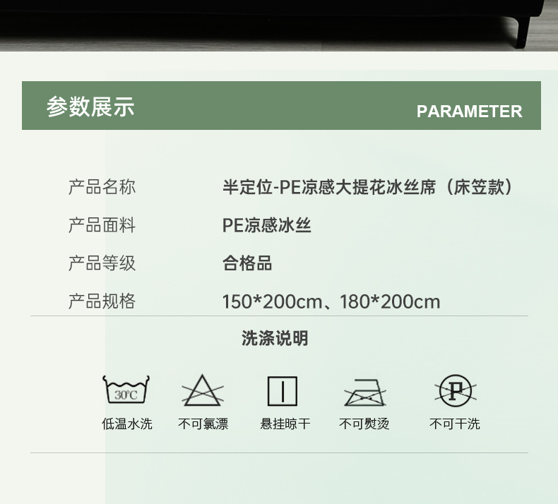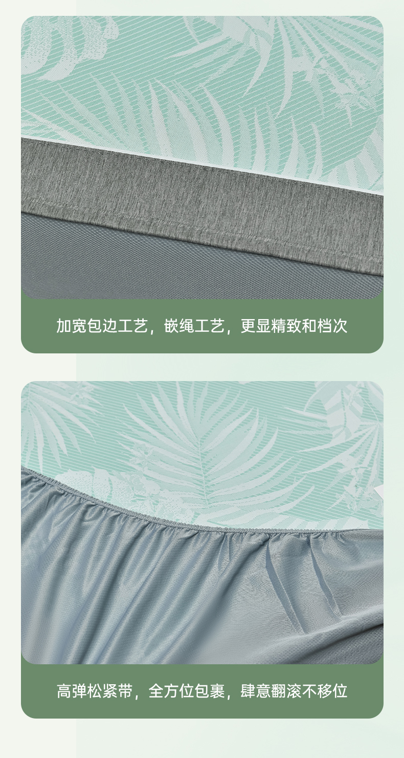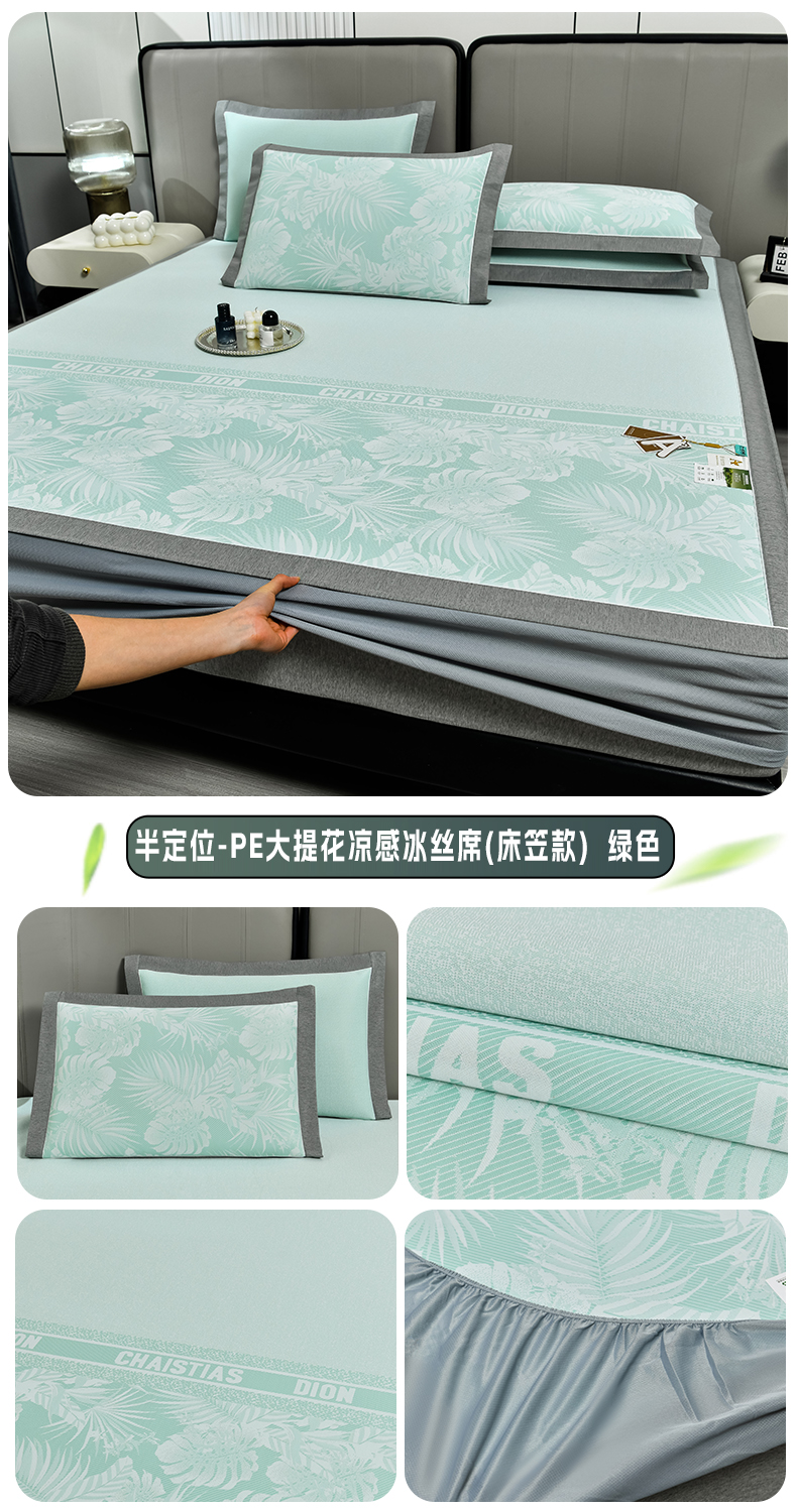 商品名称:小牛席业 2026新款PE半定位大提花凉感冰丝系列(床笠款) 浅绿