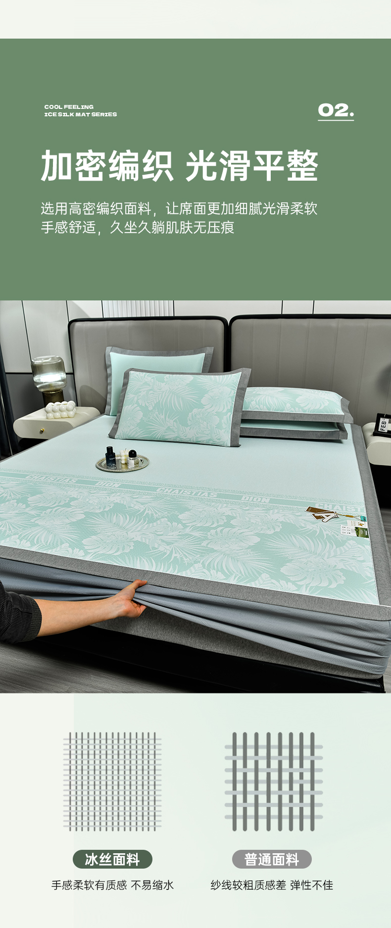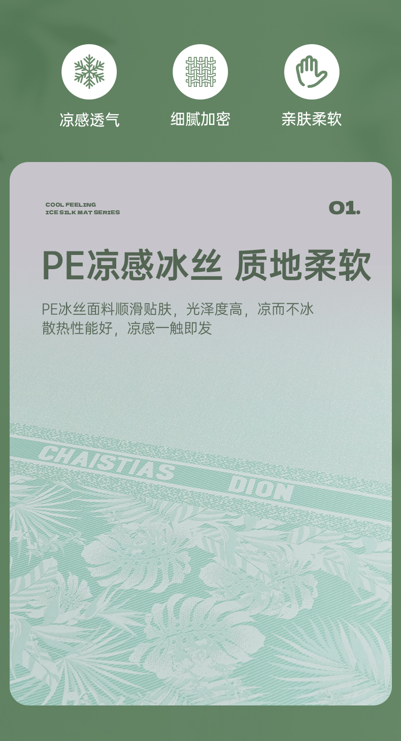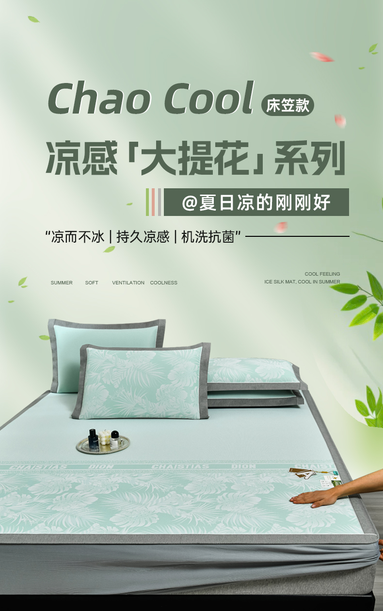 小牛席业 2026新款PE半定位大提花凉感冰丝系列(床笠款) 浅绿