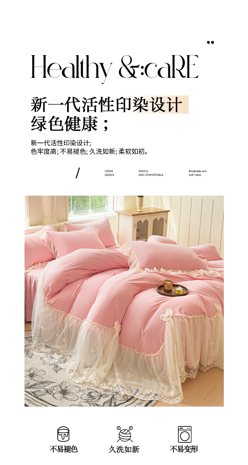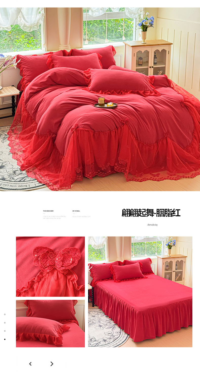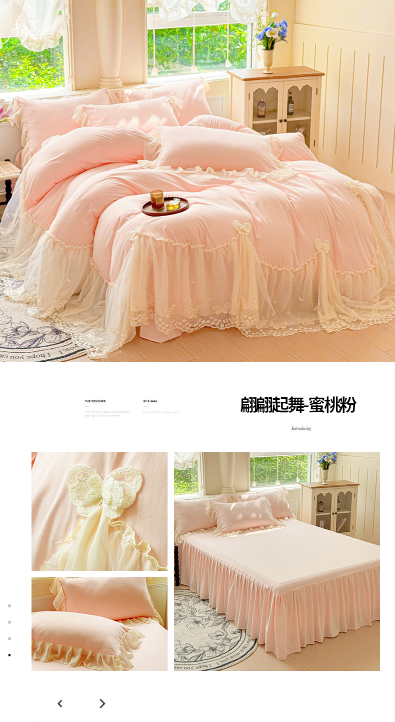 商品名称:(总)睡美人 2026新款锦棉糯糯棉韩版蕾丝公主款双层纱被套床裙四件套-翩翩起舞