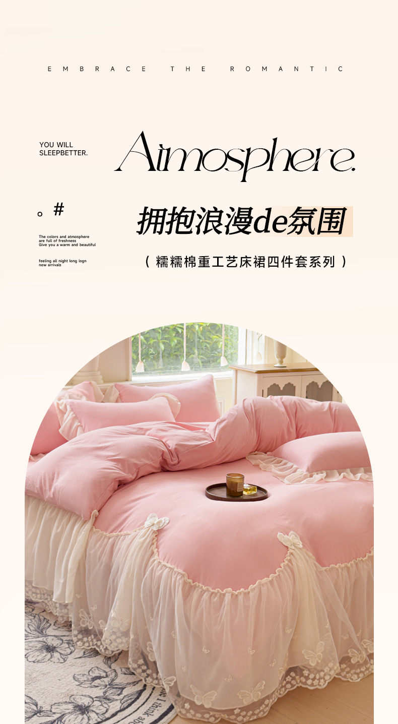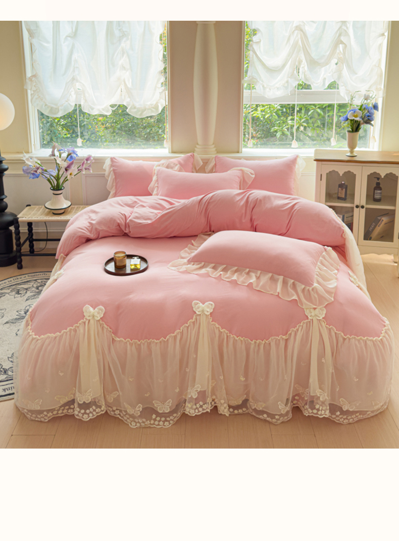 (总)睡美人 2026新款锦棉糯糯棉韩版蕾丝公主款双层纱被套床裙四件套-翩翩起舞