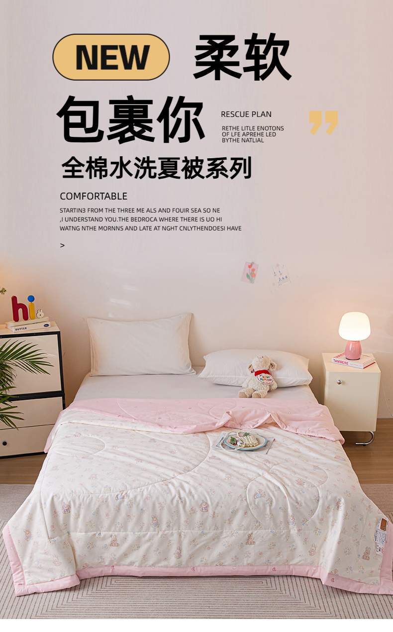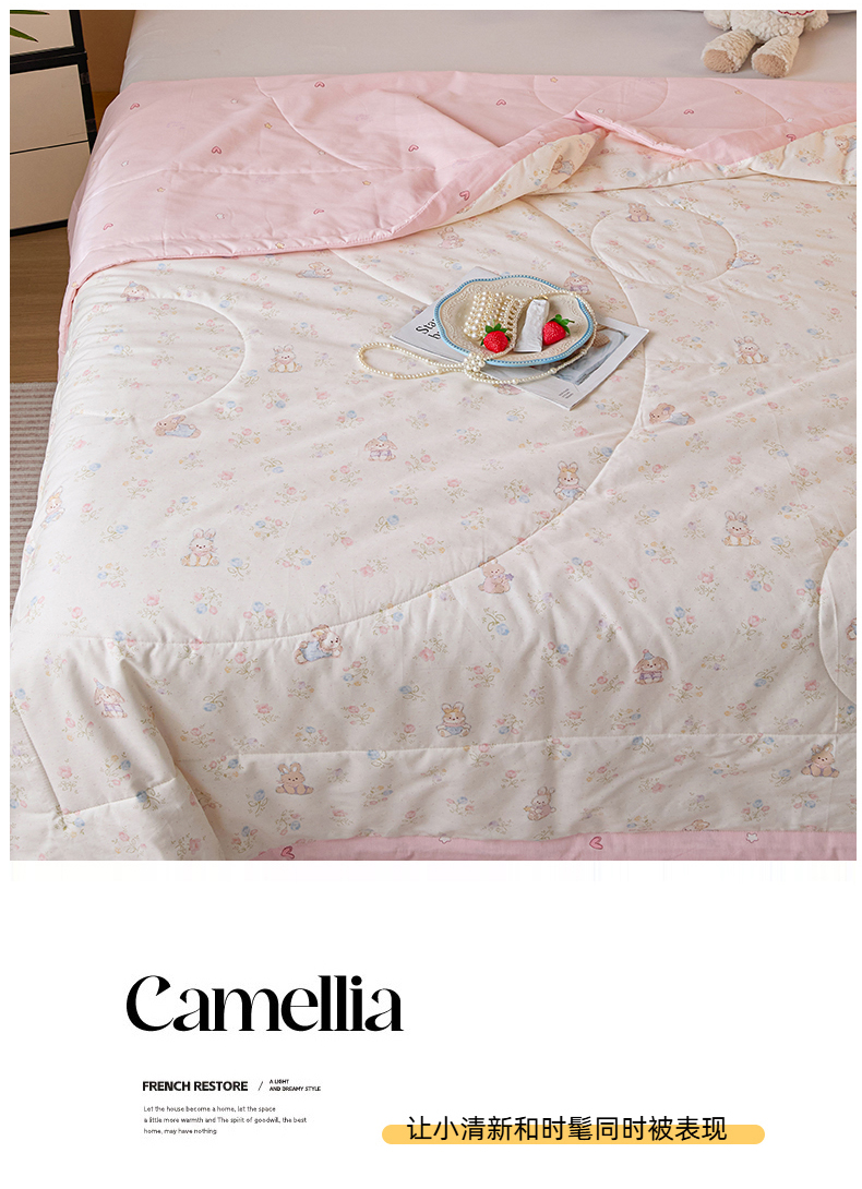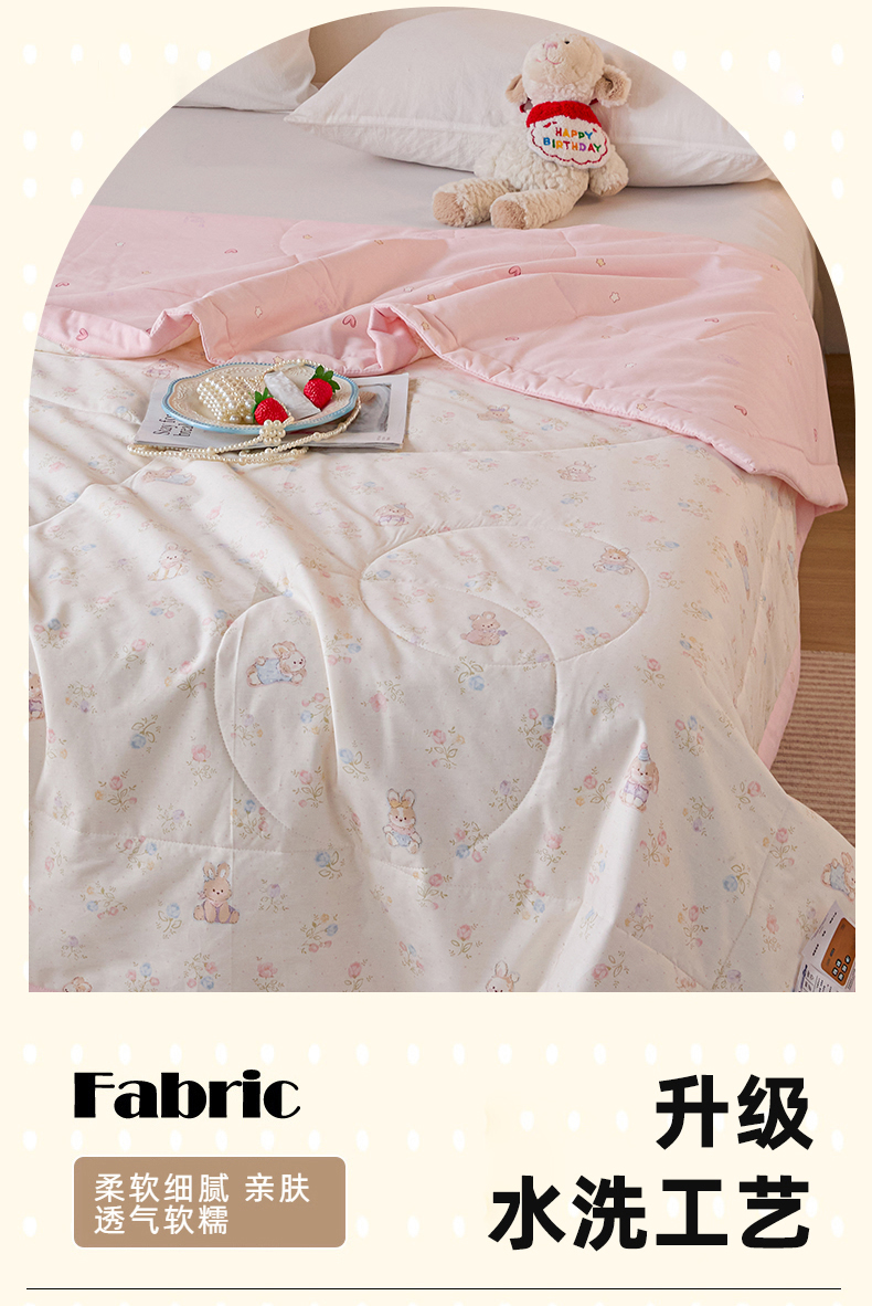 亿莱鑫 2026春夏新款全棉水洗印花夏被夏凉被空调被 花园兔