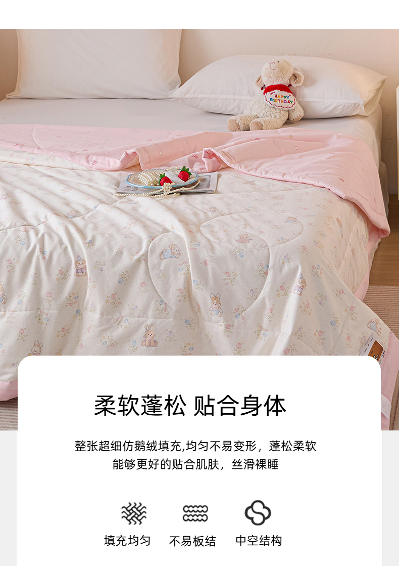 商品名称:亿莱鑫 2026春夏新款全棉水洗印花夏被夏凉被空调被 花园兔