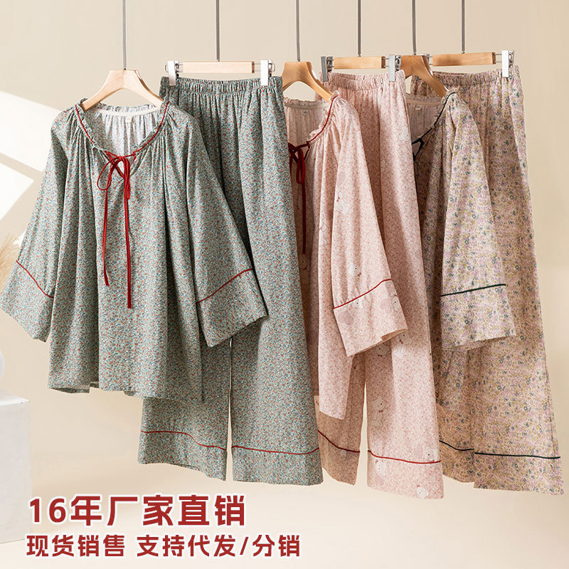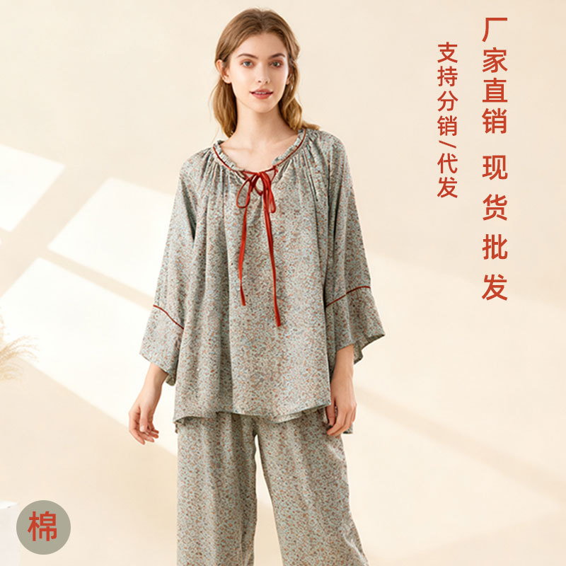 商品名称:(总)洛兰沙家居馆 26年春季新款纯棉睡衣女碎花长袖长裤大码可外穿宽松家居服套装