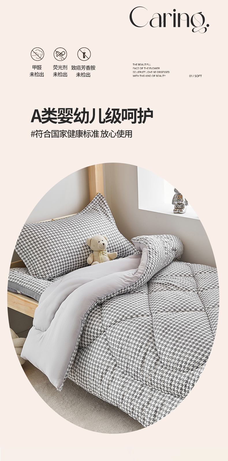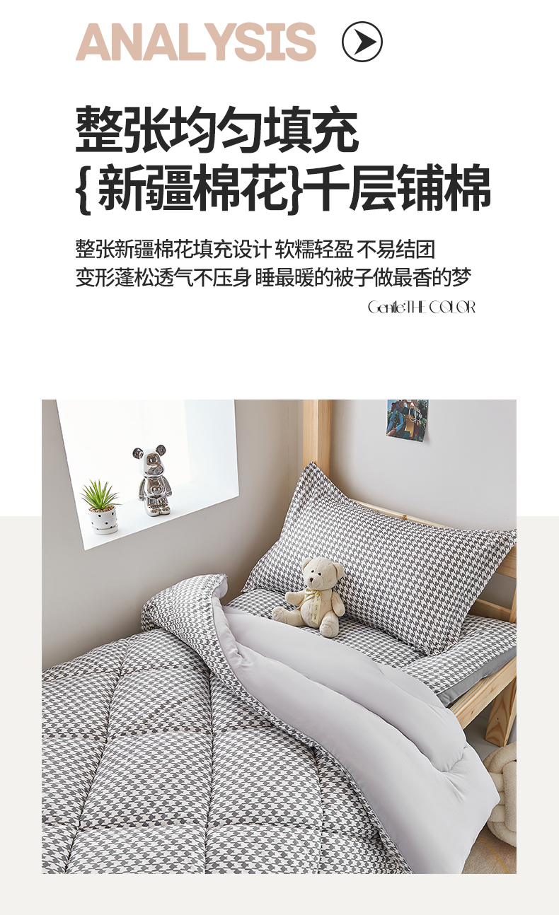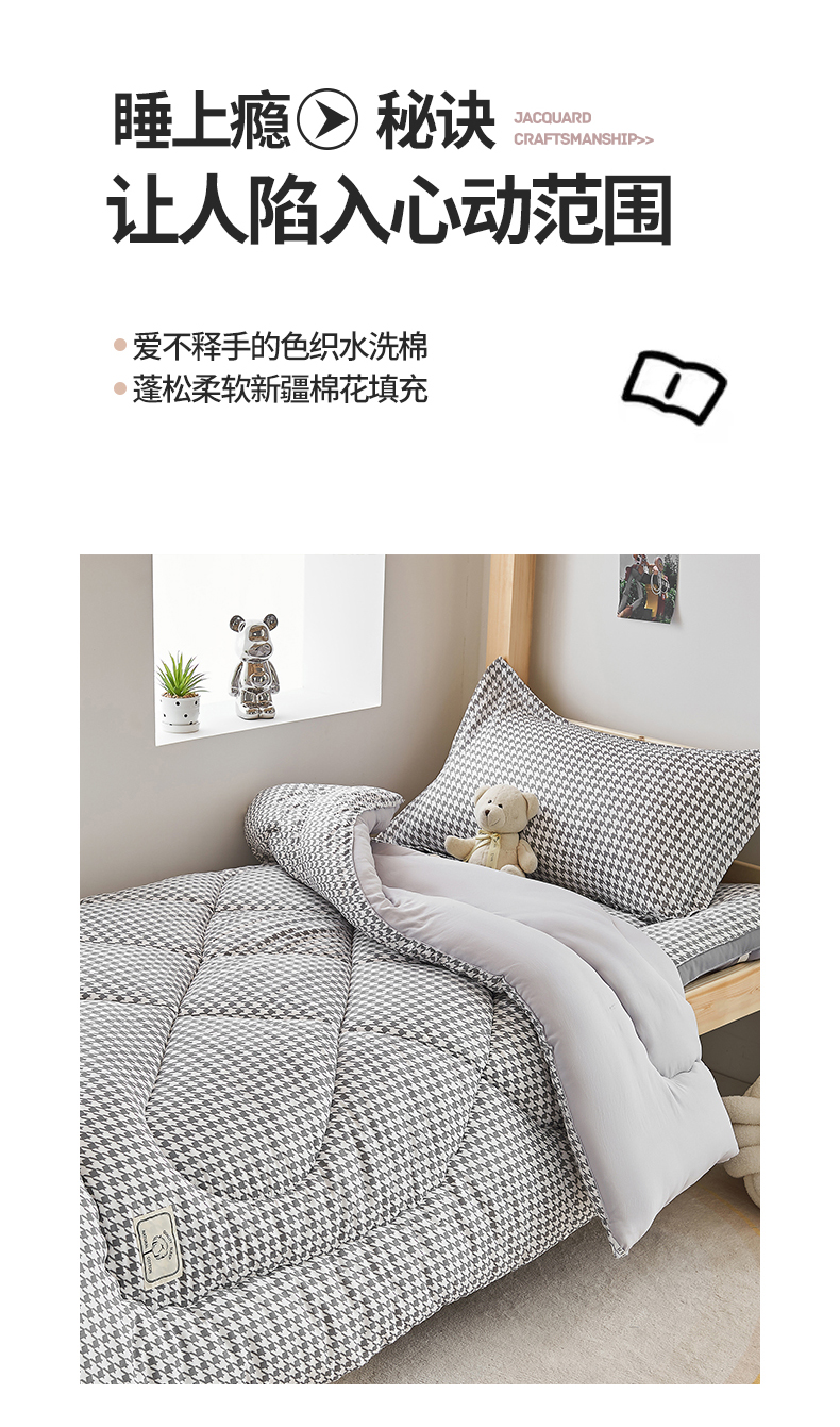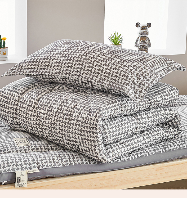 • 91家纺网 家纺一手货源 找家纺 默忆 2026新款A类水洗棉新疆棉花被子被芯 千鸟格 灰 被子