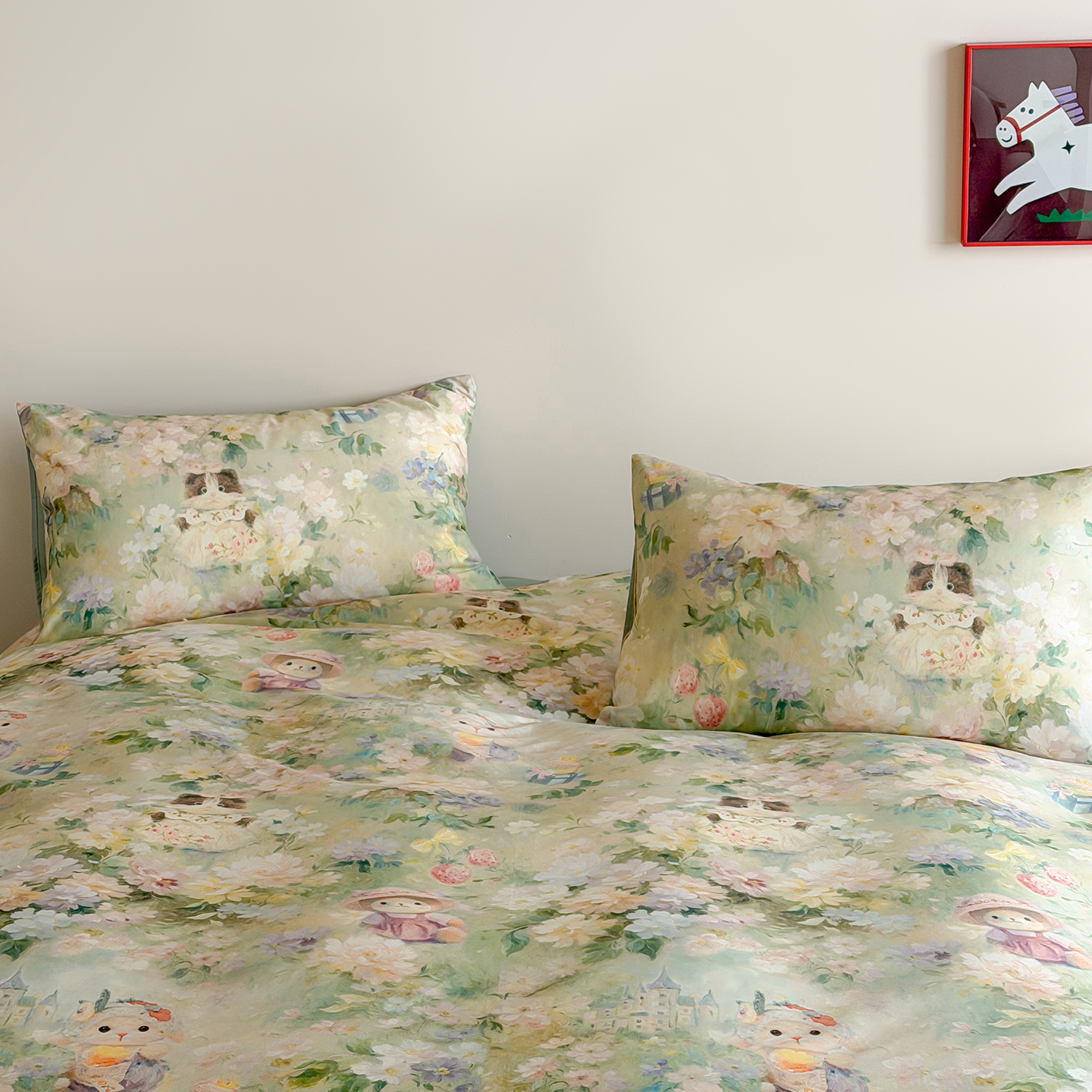 (总)桃喜 2026新款全棉双层纱碎花枕套混搭系列四件套,繁花拾光,风铃草,秘境花园粉,浅雾蔷薇,兔小姐的梦,樱桃仙紫
