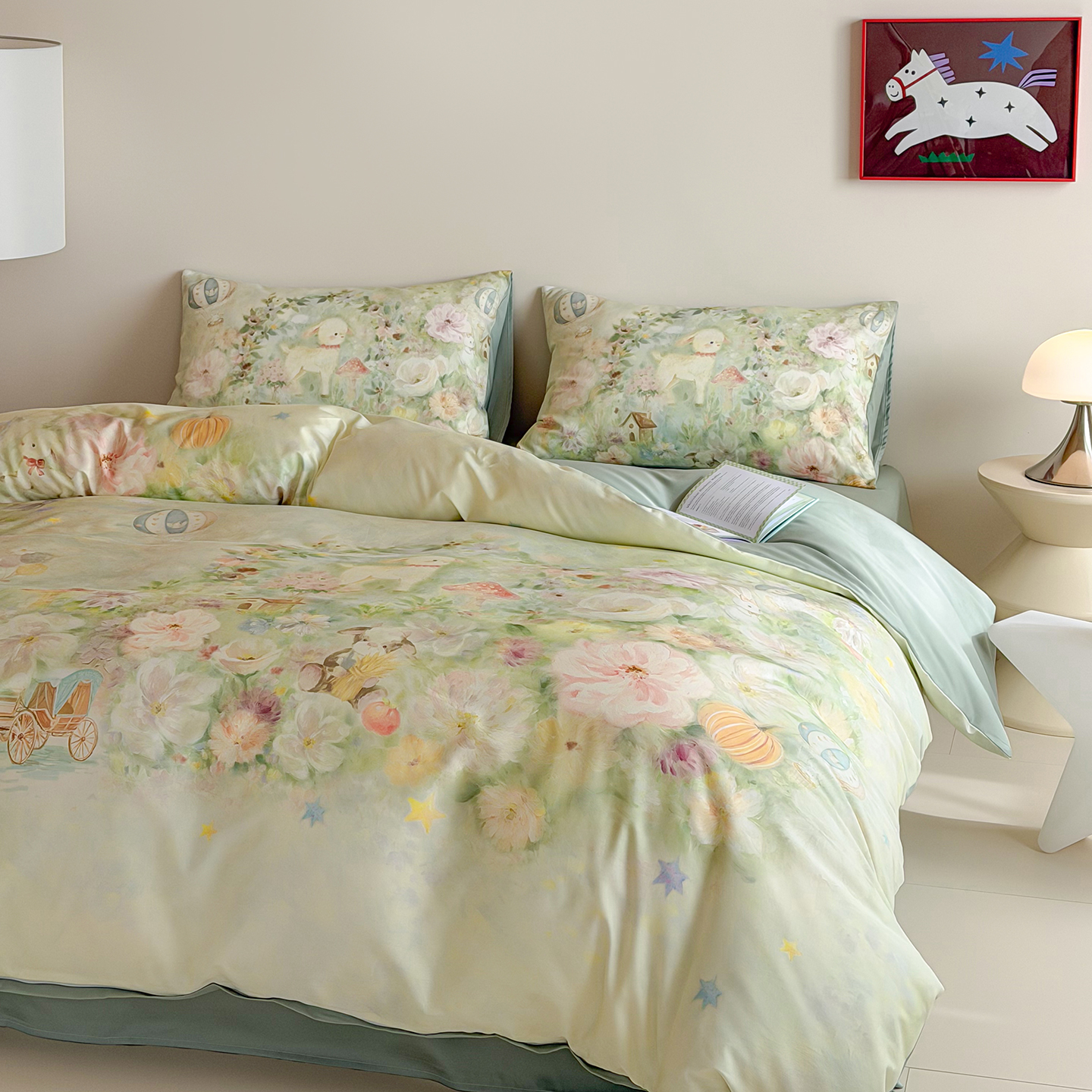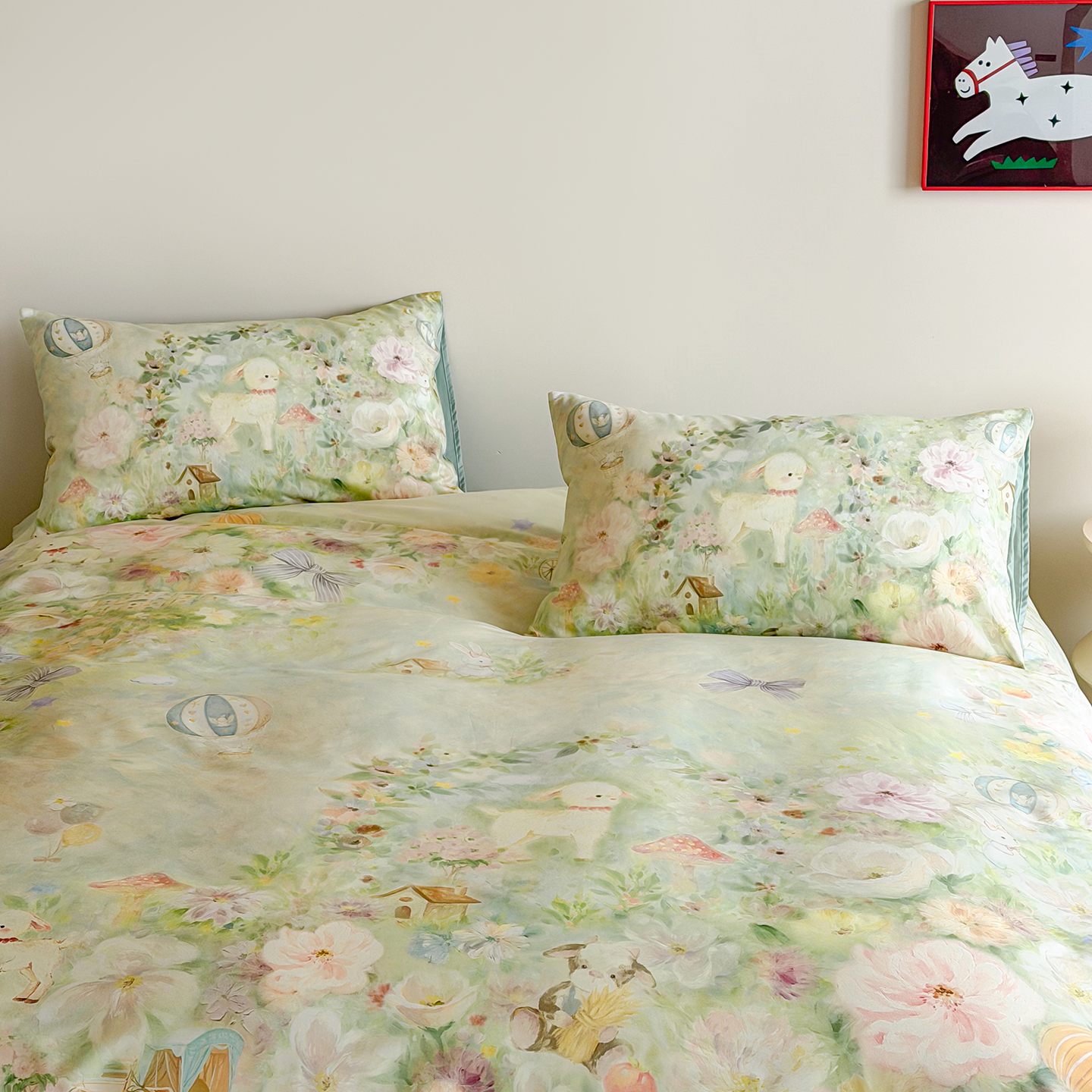(总)桃喜 2026新款60支长绒棉数码印花油画系列四件套(券后不低于169/189),爱丽丝,梦幻城堡,羊羊花园,园游会