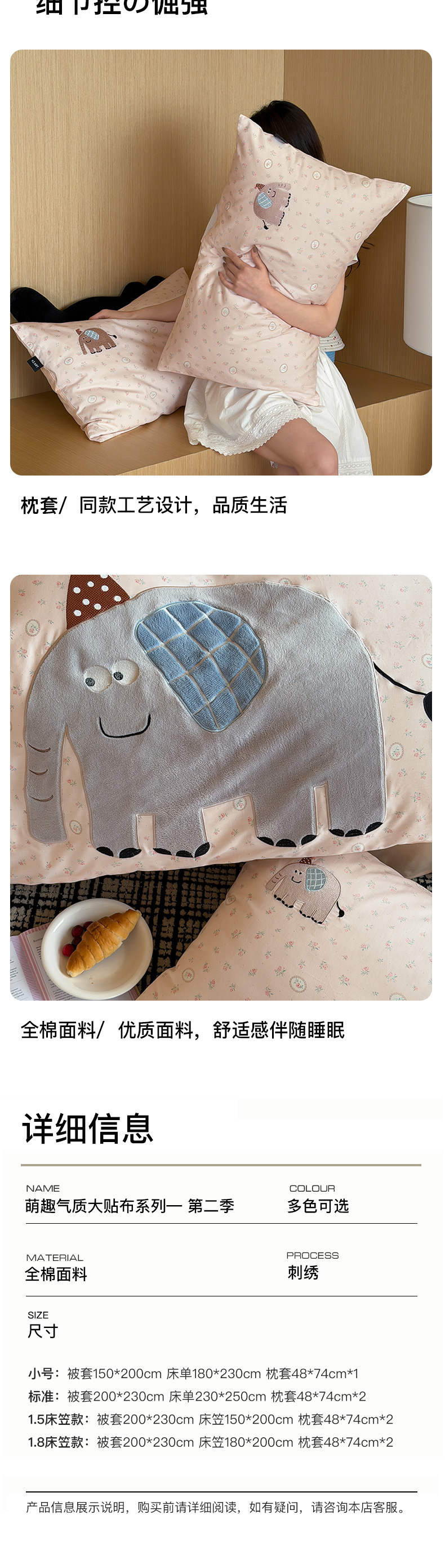 商品名称:(总)卡姿家纺 2026春夏全棉萌趣气质大贴布系列四件套— 第二季
