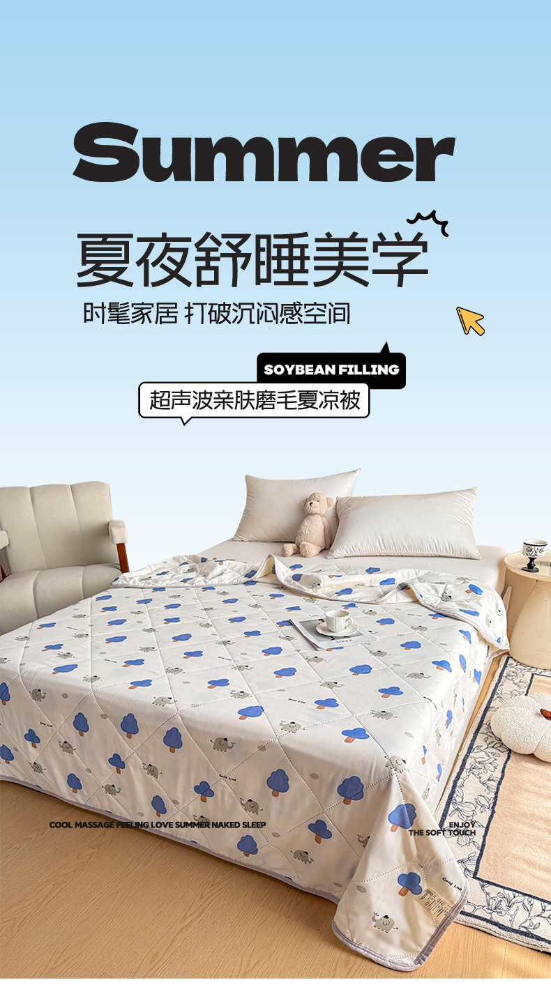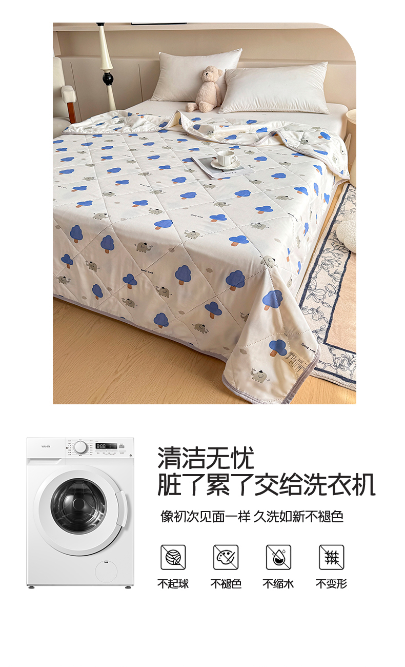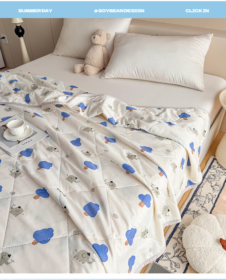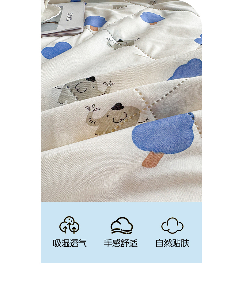 商品名称:薇玛仕 2026电商爆款印花小清新超声波大豆夏凉被礼品空调被 森林小象