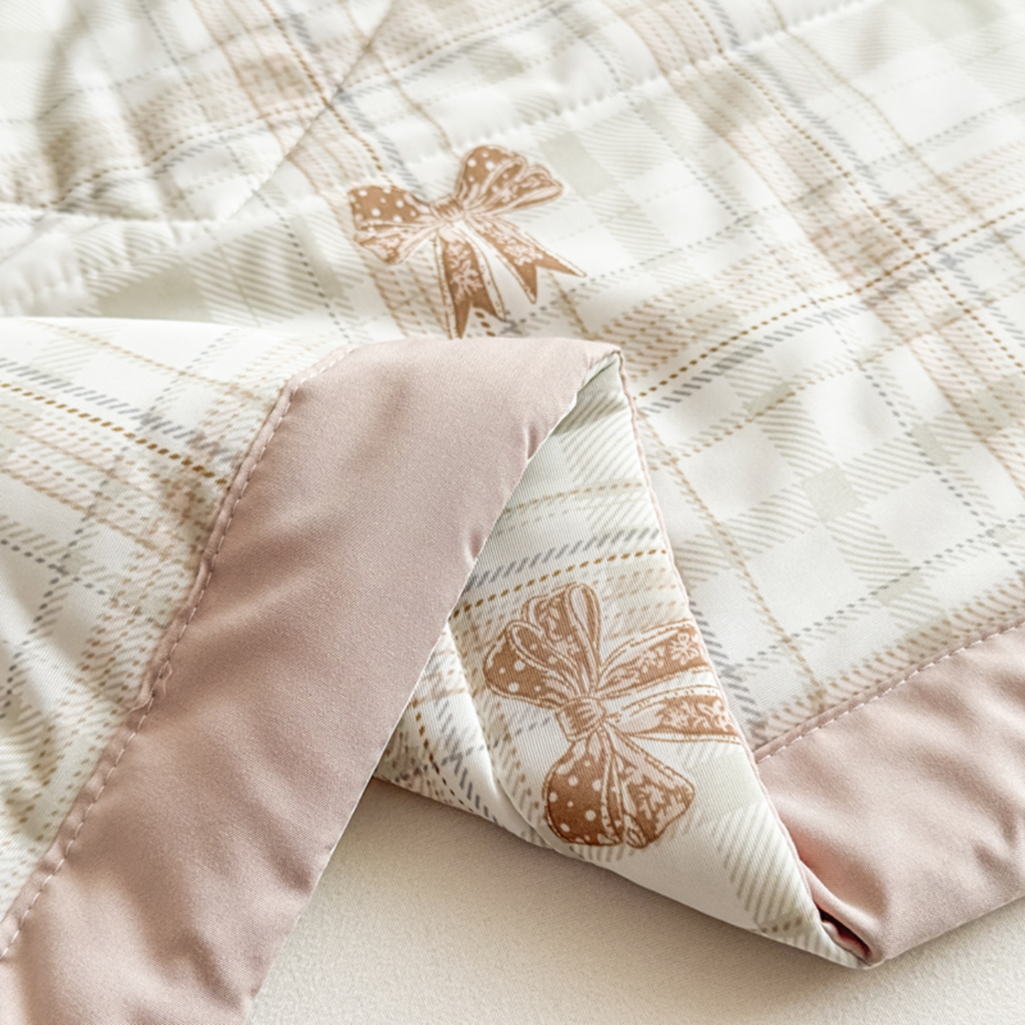 商品名称:帕拉美拉 2026新款A类印花冰凉丝凉感丝手包大宽边夏被 格纹蝴蝶结