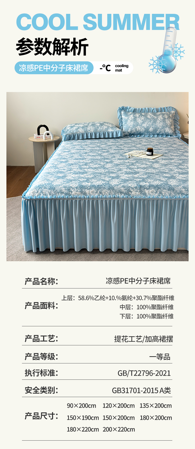 商品名称:柔品 2026春夏新款PE中分子床裙款凉席席子-梦里繁花 床裙 梦里繁花 蓝