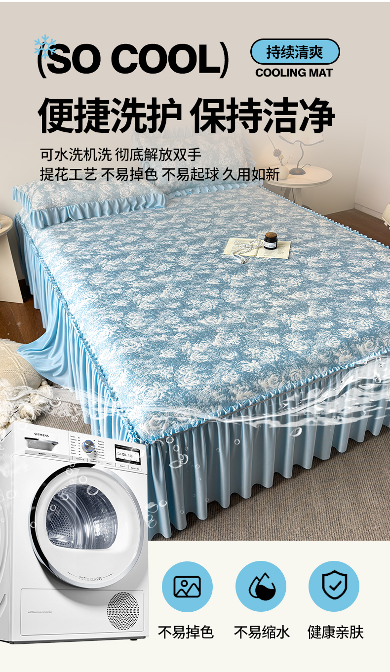 柔品 2026春夏新款PE中分子床裙款凉席席子-梦里繁花 床裙 梦里繁花 蓝